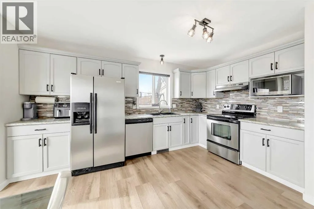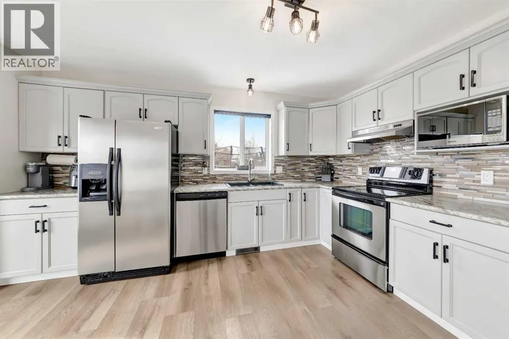 Welcome to this immaculate bi-level home located on the Saskatchewan side, nestled on a quiet street with no back neighbours. Offering 4 bedrooms and 2 bathrooms, this property has been beautifully maintained and thoughtfully updated throughout.Major exterior updates were completed in 2021, including shingles, siding, and a stunning two-tiered composite deck. The kitchen was refreshed in 2020 with updated countertops and backsplash. Inside, youâll appreciate the brand-new flooring, fresh paint, and modern light fixtures, all completed just last week.The home also features a heated double attached garage with convenient access to the backyard, plus central air conditioning for those warm summer months. Two sheds are included, one being an extra-large unit for all your storage needs.Ideally located close to a school and park, this home truly shows pride of ownership in every detail. Donât miss your opportunityâbook your showing today! (id:27476)