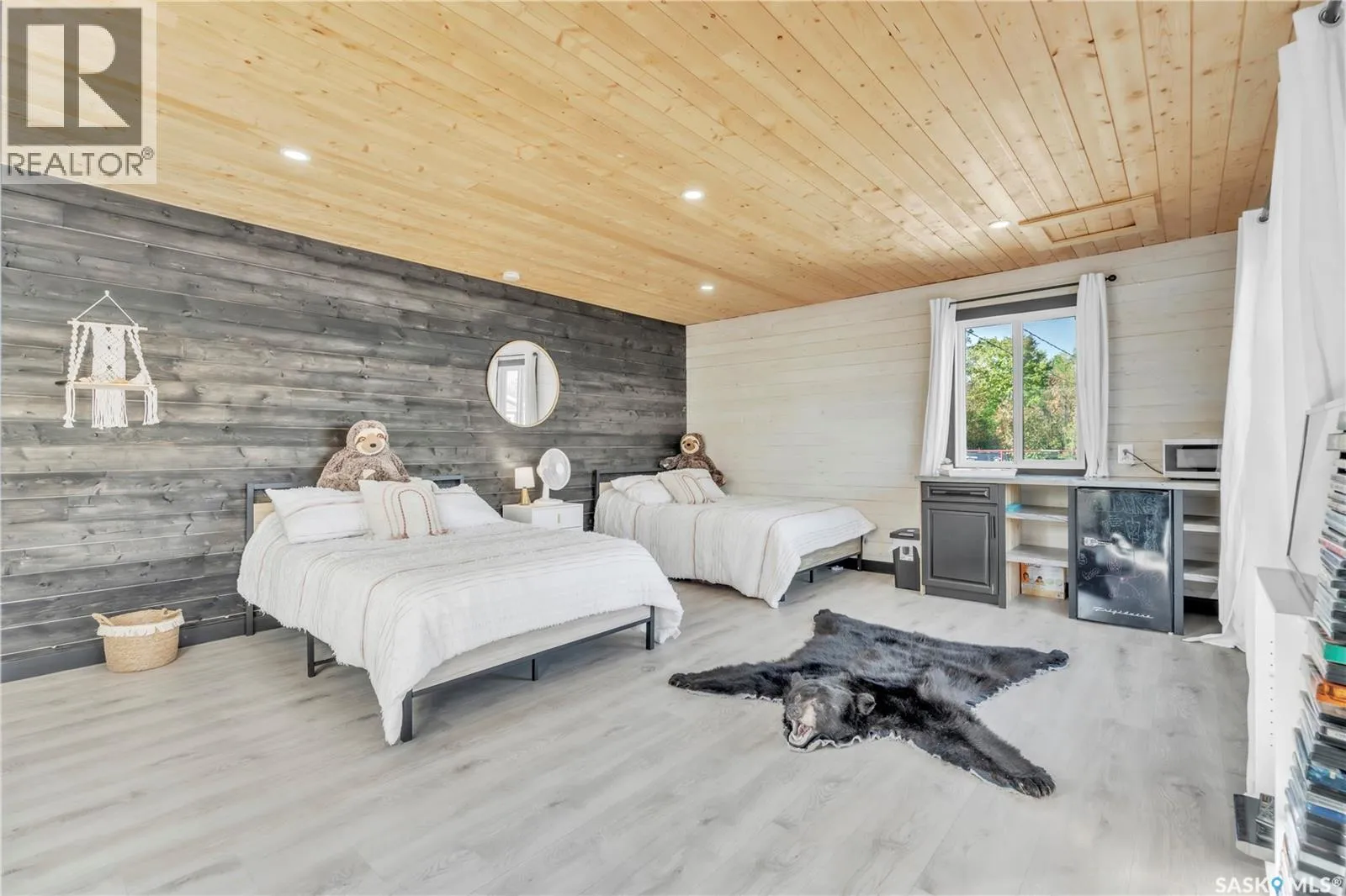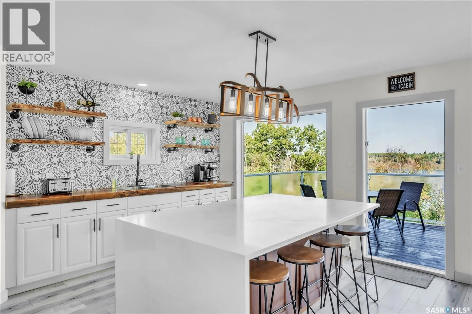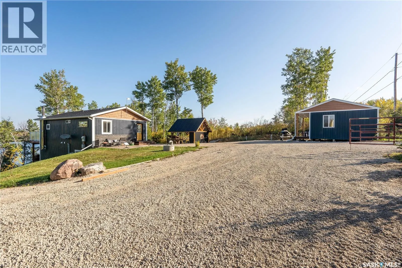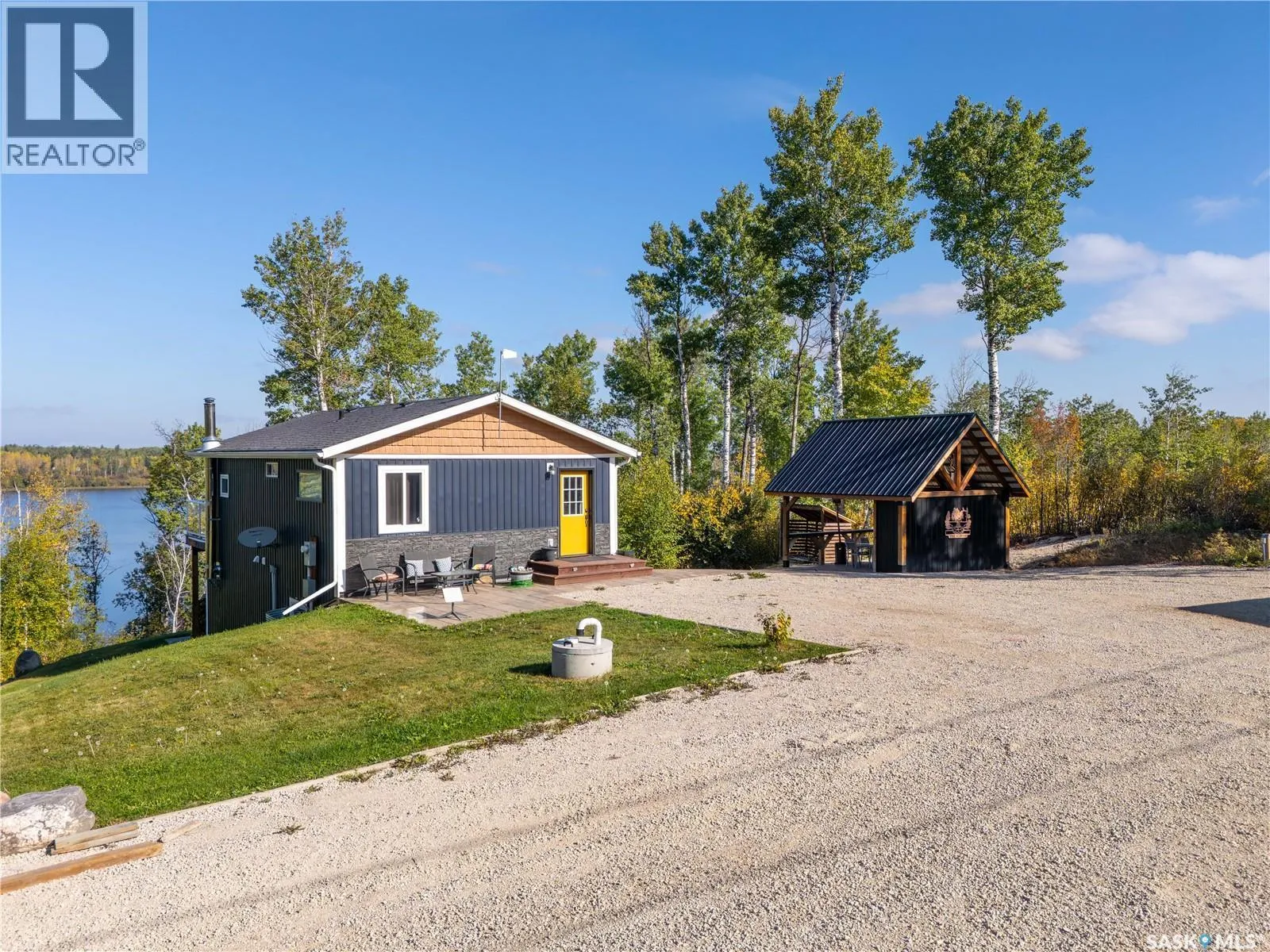 Discover this elegant year-round home in a quiet subdivision on Murphy Lake. This home offers three bedrooms, two bathrooms, and a separate bunkhouse for guests. The main floor features the primary bedroom with access to a four-piece bathroom and laundry. The bright and open kitchen is perfect for entertaining, with live-edge wood shelves, a large quartz island, and expansive windows that offer breathtaking views of the lake. Downstairs, the walkout basement includes two additional bedrooms, a three-piece bathroom, a well-designed bar area, and a family room with a cozy wood stove. Outside, the gorgeously landscaped yard boasts a custom stamped concrete pathway that leads to a fire pit area and an outdoor kitchen, ready for your BBQ, smoker, and more. A 15'x19' bunkhouse provides the perfect private retreat for overnight guests or teenagers. Mature trees on both sides of the property ensure excellent privacy. But the best part is the lake itself. A private path leads directly from the home to the water, where you can easily launch your boat. Murphy Lake is perfect for fishing, recreational boating, or enjoying a sunset on your paddle board. This home is on a cistern and a septic tank. It's a quick one-and-a-half-hour drive north from Lloydminster or just over an hour southeast of Cold Lake. The town of Loon Lake is only fifteen minutes away and offers groceries, restaurants, a medical clinic, and a golf course. There are also many other lakes and parks to explore in the area. (id:27476)