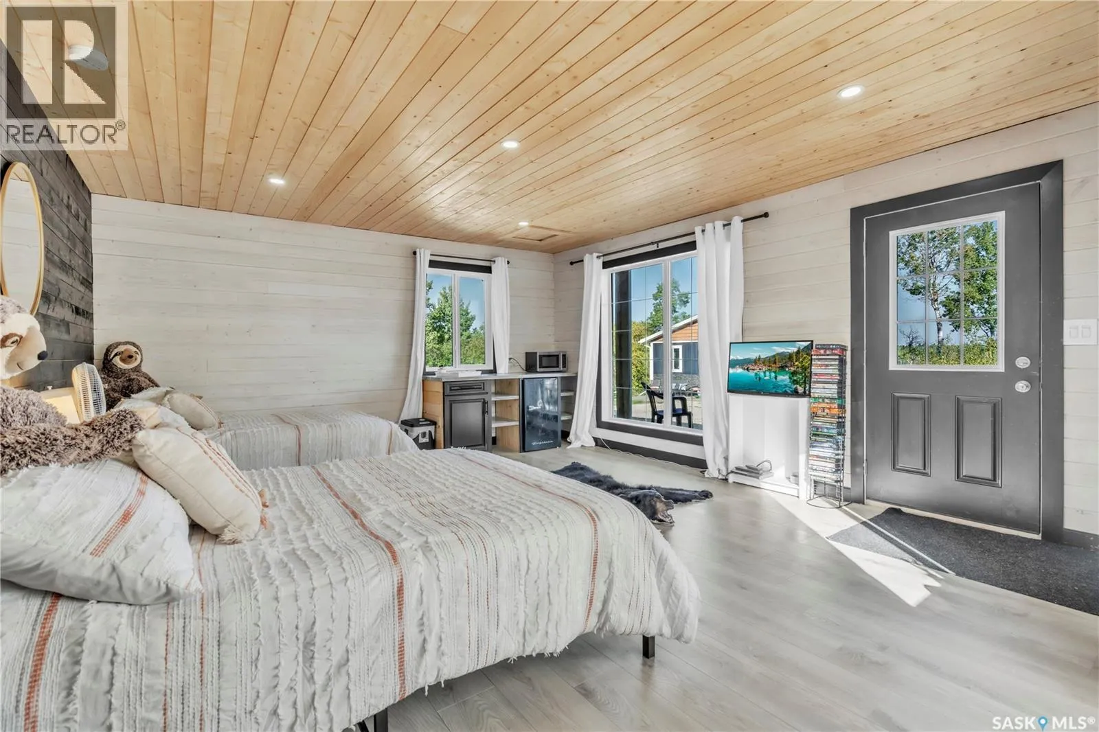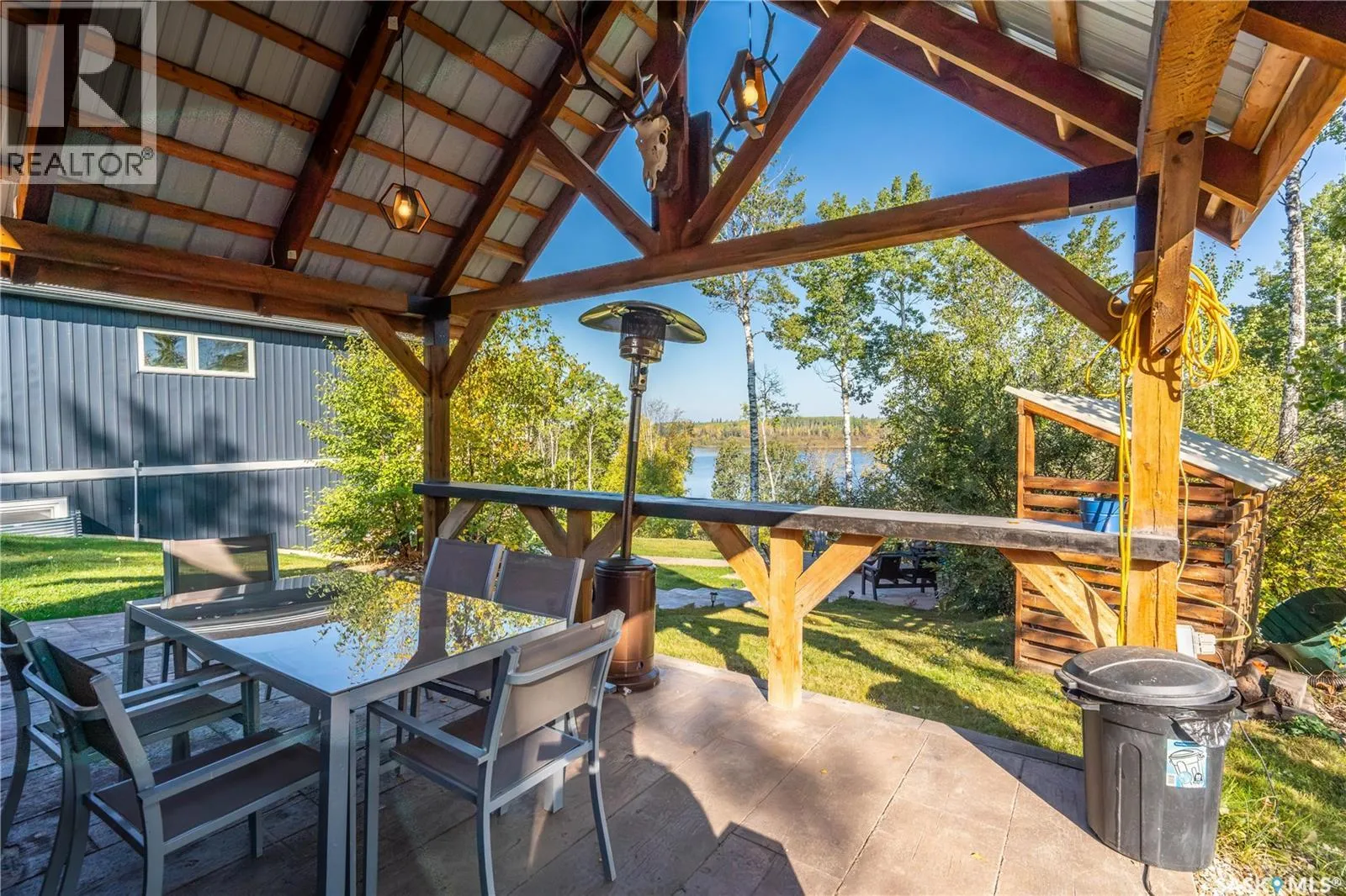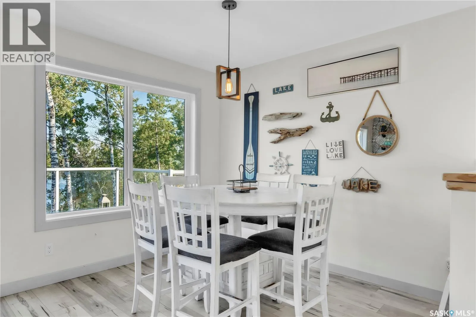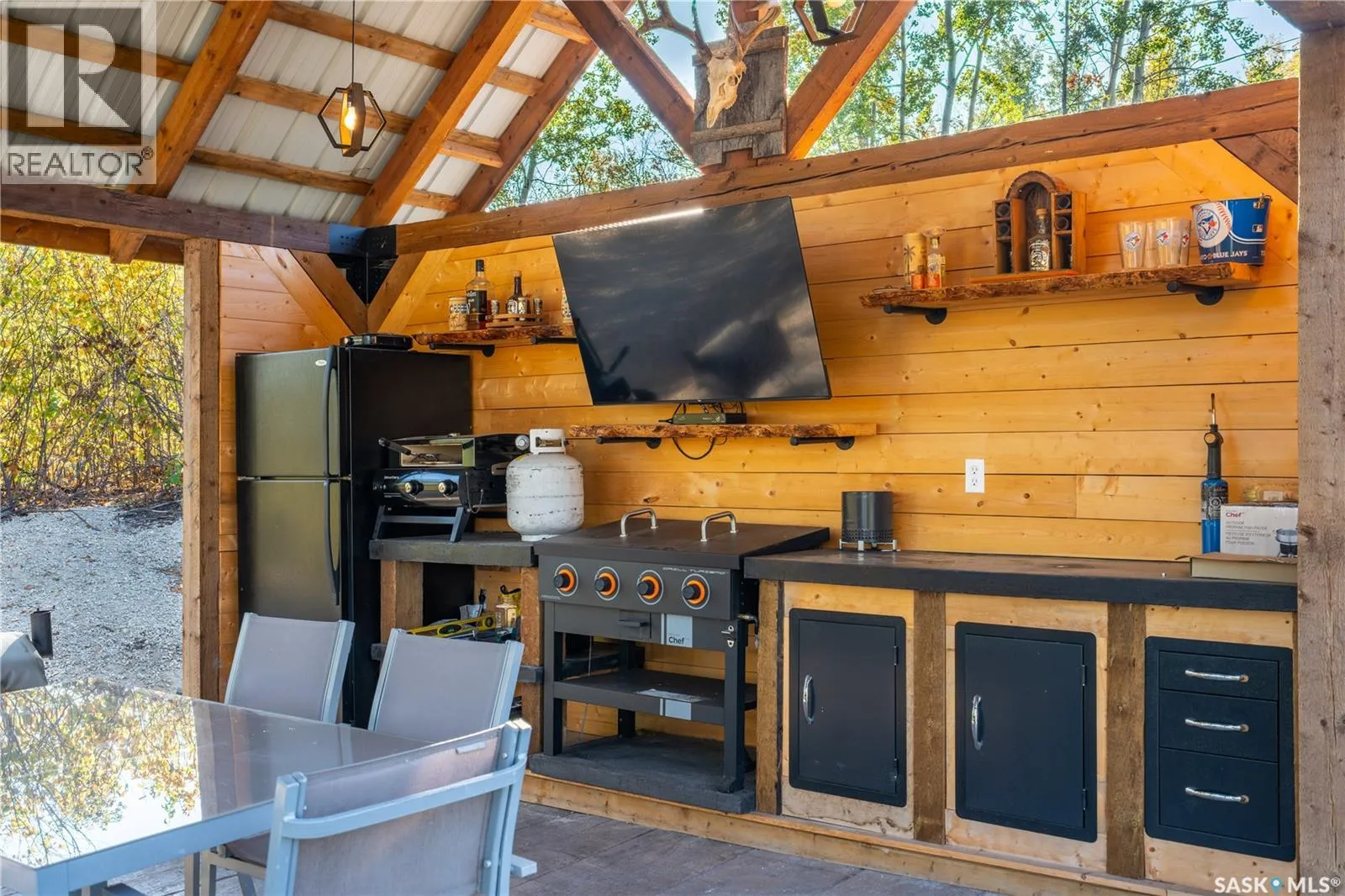 Discover this elegant year-round home in a quiet subdivision on Murphy Lake. This home offers three bedrooms, two bathrooms, and a separate bunkhouse for guests. The main floor features the primary bedroom with access to a four-piece bathroom and laundry. The bright and open kitchen is perfect for entertaining, with live-edge wood shelves, a large quartz island, and expansive windows that offer breathtaking views of the lake. Downstairs, the walkout basement includes two additional bedrooms, a three-piece bathroom, a well-designed bar area, and a family room with a cozy wood stove. Outside, the gorgeously landscaped yard boasts a custom stamped concrete pathway that leads to a fire pit area and an outdoor kitchen, ready for your BBQ, smoker, and more. A 15'x19' bunkhouse provides the perfect private retreat for overnight guests or teenagers. Mature trees on both sides of the property ensure excellent privacy. But the best part is the lake itself. A private path leads directly from the home to the water, where you can easily launch your boat. Murphy Lake is perfect for fishing, recreational boating, or enjoying a sunset on your paddle board. This home is on a cistern and a septic tank. It's a quick one-and-a-half-hour drive north from Lloydminster or just over an hour southeast of Cold Lake. The town of Loon Lake is only fifteen minutes away and offers groceries, restaurants, a medical clinic, and a golf course. There are also many other lakes and parks to explore in the area. (id:27476)