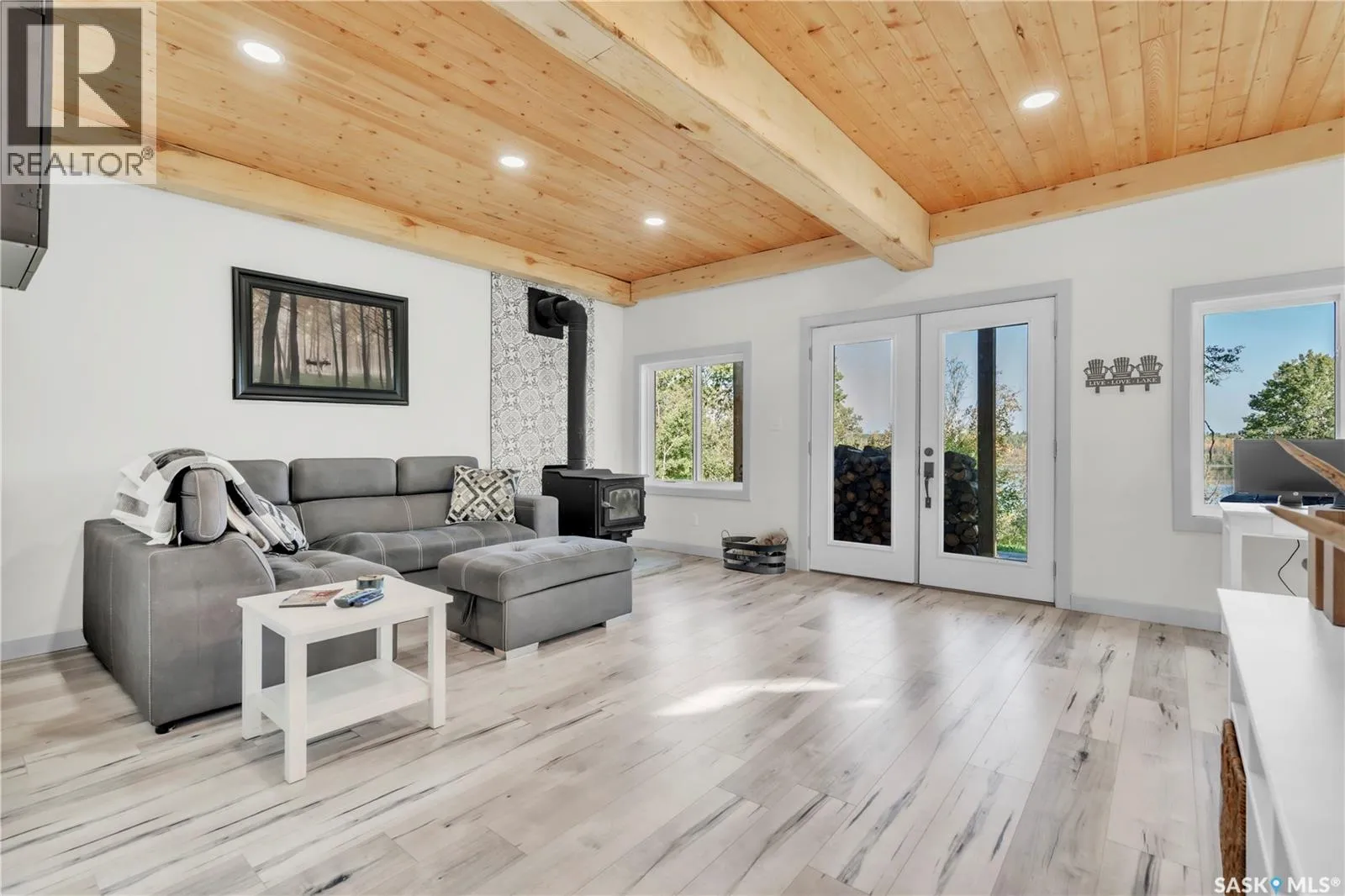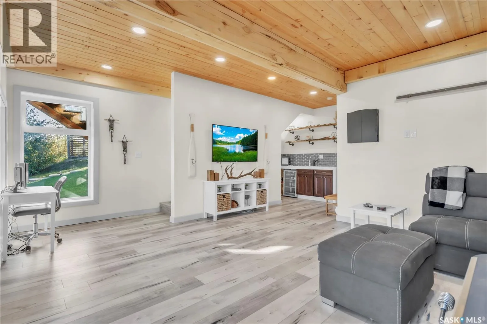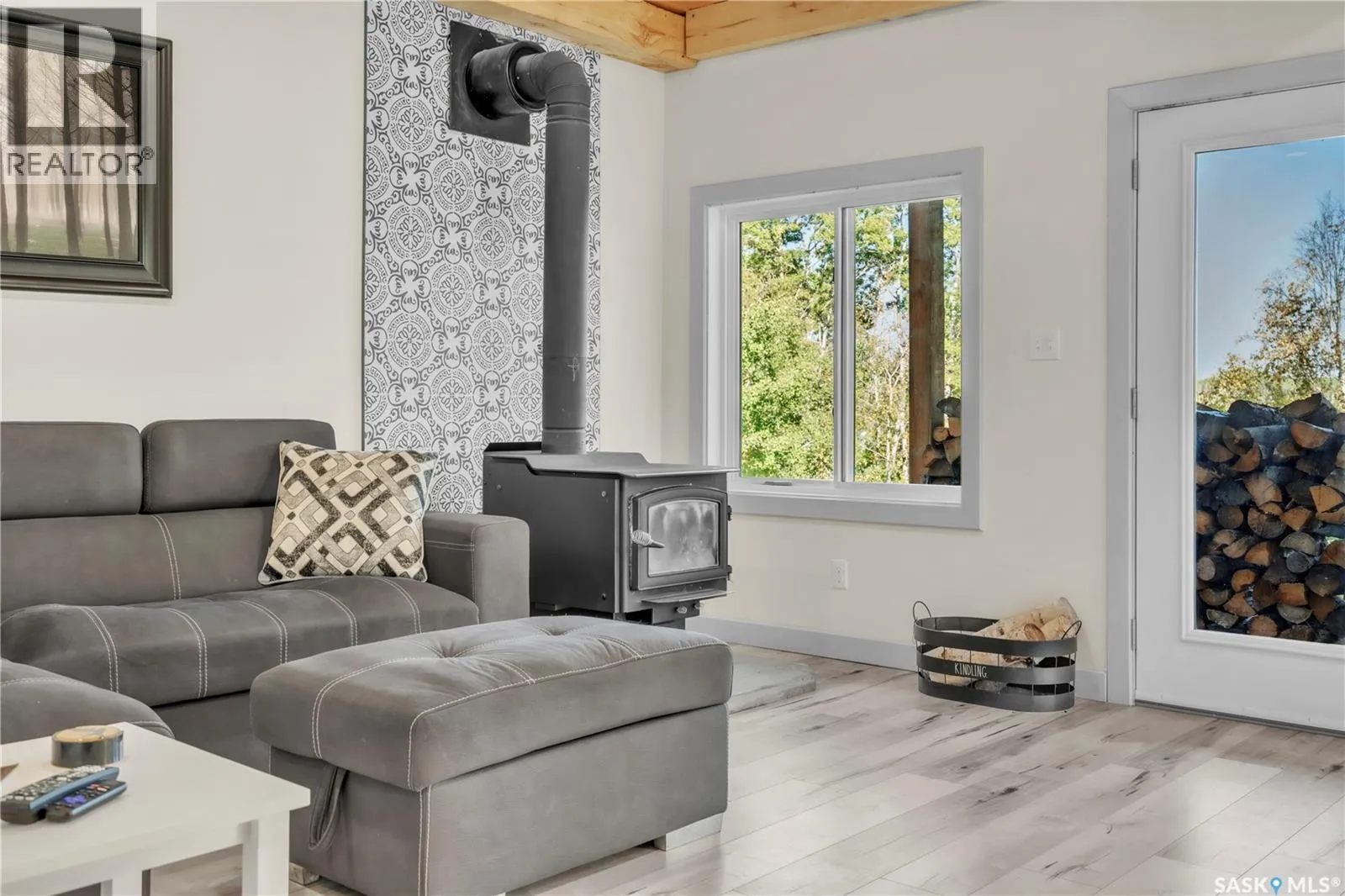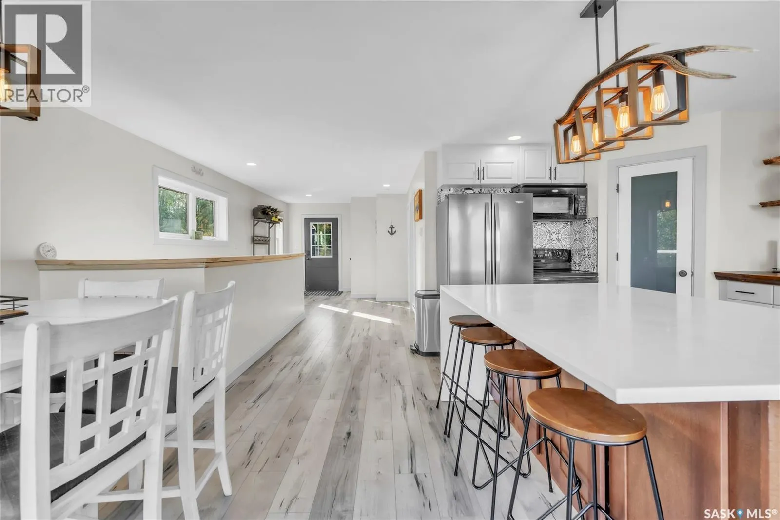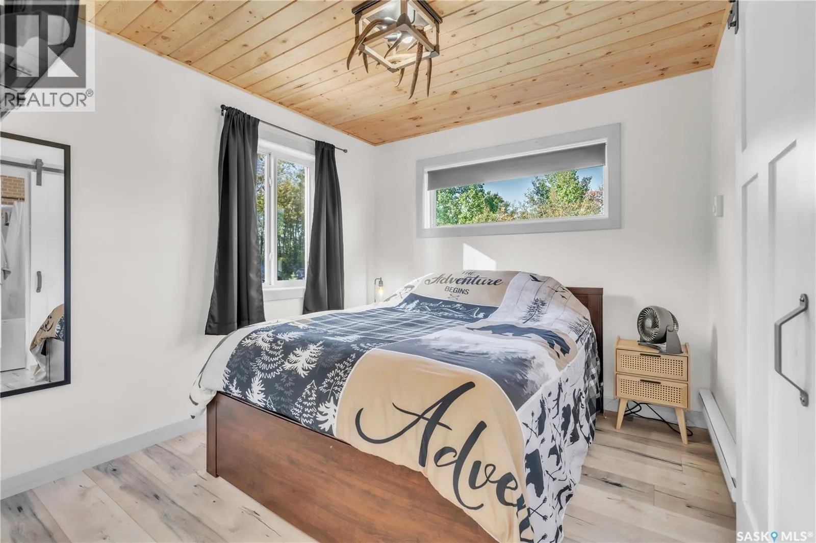 Discover this elegant year-round home in a quiet subdivision on Murphy Lake. This home offers three bedrooms, two bathrooms, and a separate bunkhouse for guests. The main floor features the primary bedroom with access to a four-piece bathroom and laundry. The bright and open kitchen is perfect for entertaining, with live-edge wood shelves, a large quartz island, and expansive windows that offer breathtaking views of the lake. Downstairs, the walkout basement includes two additional bedrooms, a three-piece bathroom, a well-designed bar area, and a family room with a cozy wood stove. Outside, the gorgeously landscaped yard boasts a custom stamped concrete pathway that leads to a fire pit area and an outdoor kitchen, ready for your BBQ, smoker, and more. A 15'x19' bunkhouse provides the perfect private retreat for overnight guests or teenagers. Mature trees on both sides of the property ensure excellent privacy. But the best part is the lake itself. A private path leads directly from the home to the water, where you can easily launch your boat. Murphy Lake is perfect for fishing, recreational boating, or enjoying a sunset on your paddle board. This home is on a cistern and a septic tank. It's a quick one-and-a-half-hour drive north from Lloydminster or just over an hour southeast of Cold Lake. The town of Loon Lake is only fifteen minutes away and offers groceries, restaurants, a medical clinic, and a golf course. There are also many other lakes and parks to explore in the area. (id:27476)