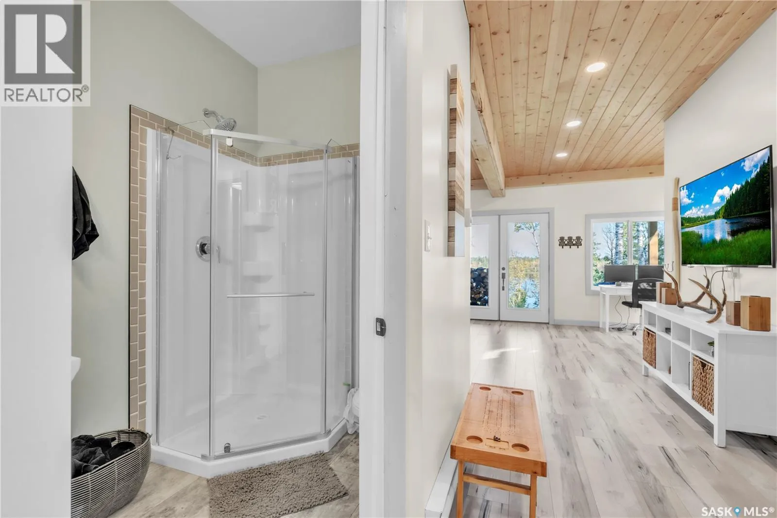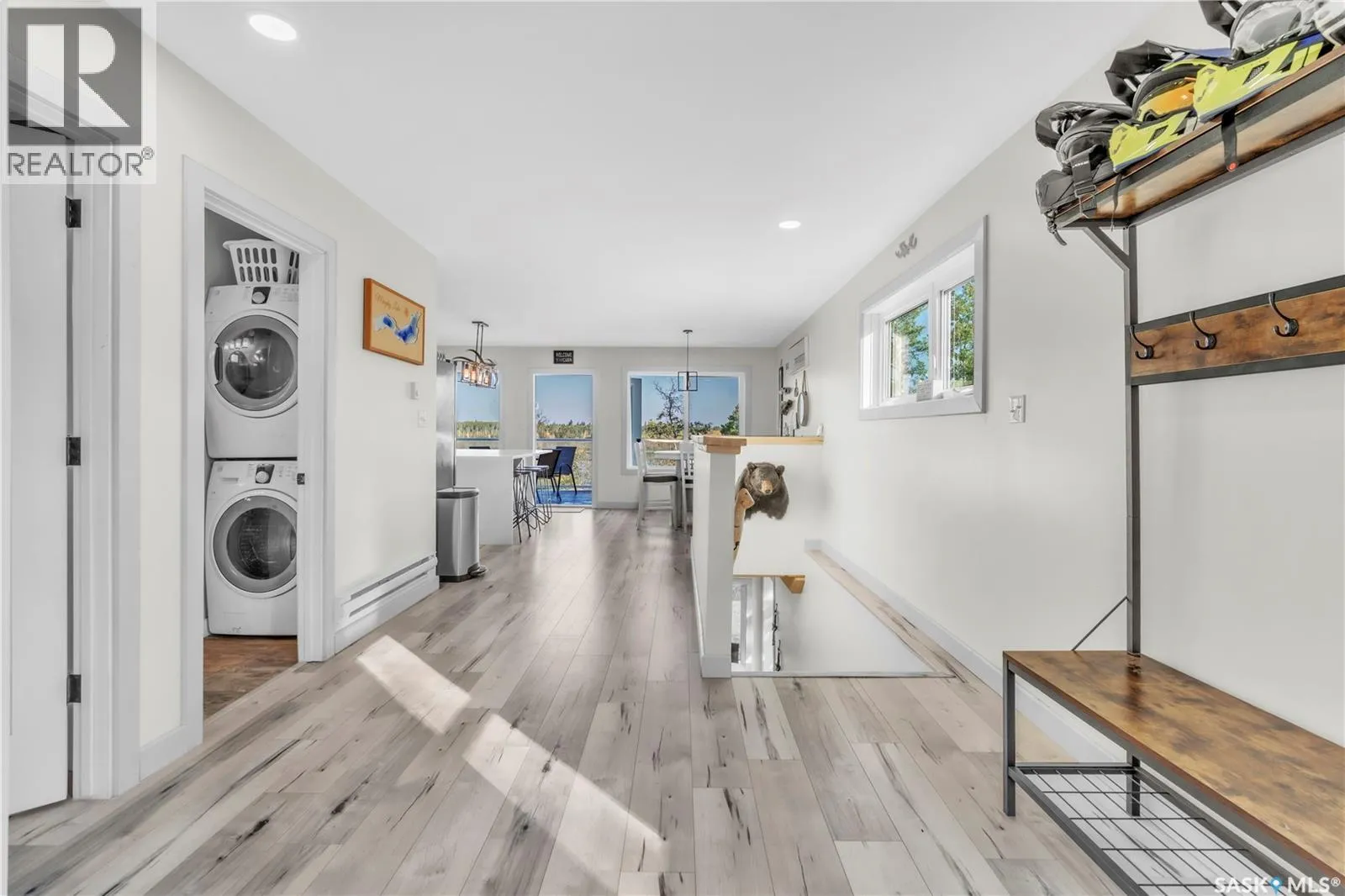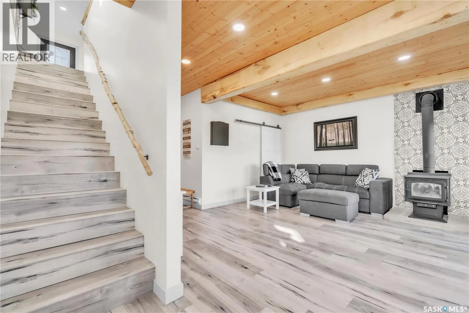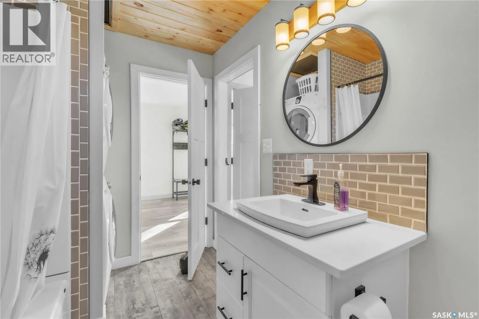 Discover this elegant year-round home in a quiet subdivision on Murphy Lake. This home offers three bedrooms, two bathrooms, and a separate bunkhouse for guests. The main floor features the primary bedroom with access to a four-piece bathroom and laundry. The bright and open kitchen is perfect for entertaining, with live-edge wood shelves, a large quartz island, and expansive windows that offer breathtaking views of the lake. Downstairs, the walkout basement includes two additional bedrooms, a three-piece bathroom, a well-designed bar area, and a family room with a cozy wood stove. Outside, the gorgeously landscaped yard boasts a custom stamped concrete pathway that leads to a fire pit area and an outdoor kitchen, ready for your BBQ, smoker, and more. A 15'x19' bunkhouse provides the perfect private retreat for overnight guests or teenagers. Mature trees on both sides of the property ensure excellent privacy. But the best part is the lake itself. A private path leads directly from the home to the water, where you can easily launch your boat. Murphy Lake is perfect for fishing, recreational boating, or enjoying a sunset on your paddle board. This home is on a cistern and a septic tank. It's a quick one-and-a-half-hour drive north from Lloydminster or just over an hour southeast of Cold Lake. The town of Loon Lake is only fifteen minutes away and offers groceries, restaurants, a medical clinic, and a golf course. There are also many other lakes and parks to explore in the area. (id:27476)