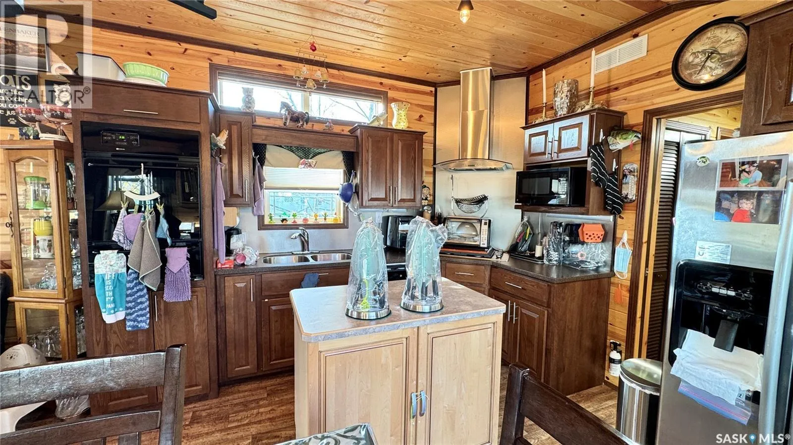 Welcome to 507 RV DRIVE IN ELBOW, SASKATCHEWAN - on 2 stunning titled lots at the renowned Lakeside RV Park on Lake Diefenbaker Lakeside RV Developments. This beautiful property features a winterized 2Ã6-constructed PARK MODEL with a metal roof, paired with an attached 12'Ã24' garage (also with a metal roof and full rough-in for a future bathroom). Inside, youâll appreciate RICH OAK CABINETRY with a walnut stain, a 27/30 gal hot water tank, and a powerful 52,000 BTU propane furnace that ensures YEAR ROUND COMFORT. The master bedroom accommodates a KING BED plus ensuite, and the second room offers bunks with a double lower and single upper - ideal for guests or family. An UPPER DORMER WINDOWS in the living area creates a lofty, vaulted ceiling feeling, while the FULLY FENCED YARD provides privacy and security. Outdoor living is exceptional: a 6'Ã14' front deck welcomes you at the entrance, a 14'Ã26' deck off the kitchen/dining patio doors invites entertaining, and a further lower deck with a 12'Ã24' gazebo offers a peaceful retreat. The garage, powered and ready for your finishing touches, adds useful space, and the property also includes a 1,200-gallon rainwater barrel and a storage shed. With the parkâs titled lots, electricity and utilities are all accessible Lakeside RV Developments. Yearly maintenance cost of approx $800 include basic water (approx 2,200 gal) and lagoon services, garbage/recycle, dust control and seasonal sewer disposal. If youâre dreaming of a turnkey lakeside retreat or full-time residence near superb recreation, this property delivers. (id:27476)
