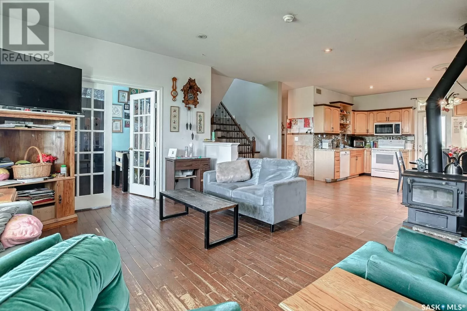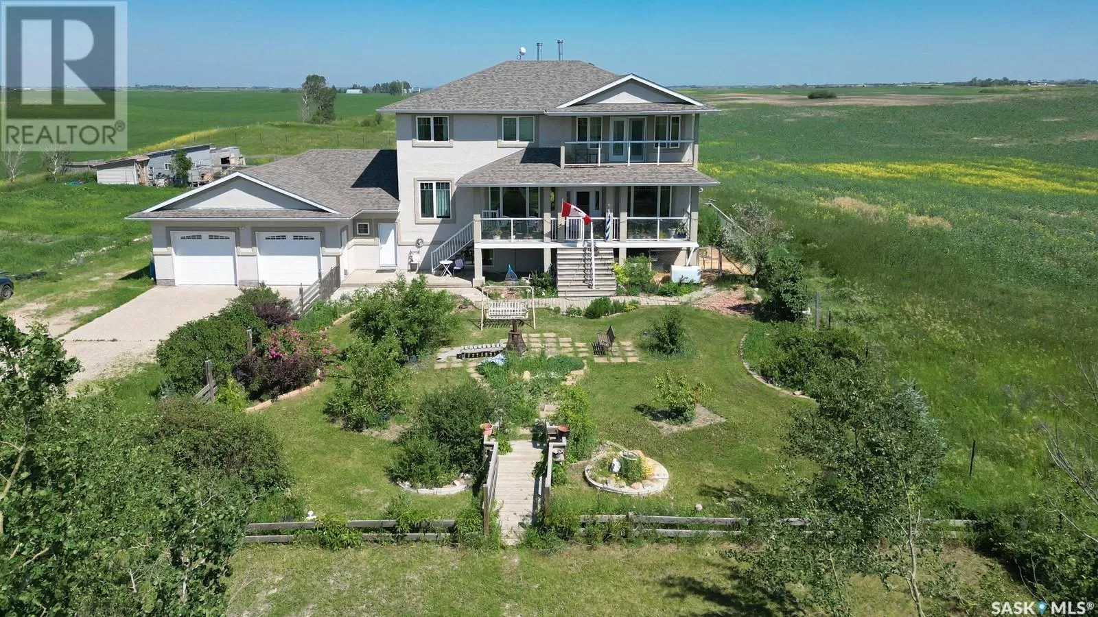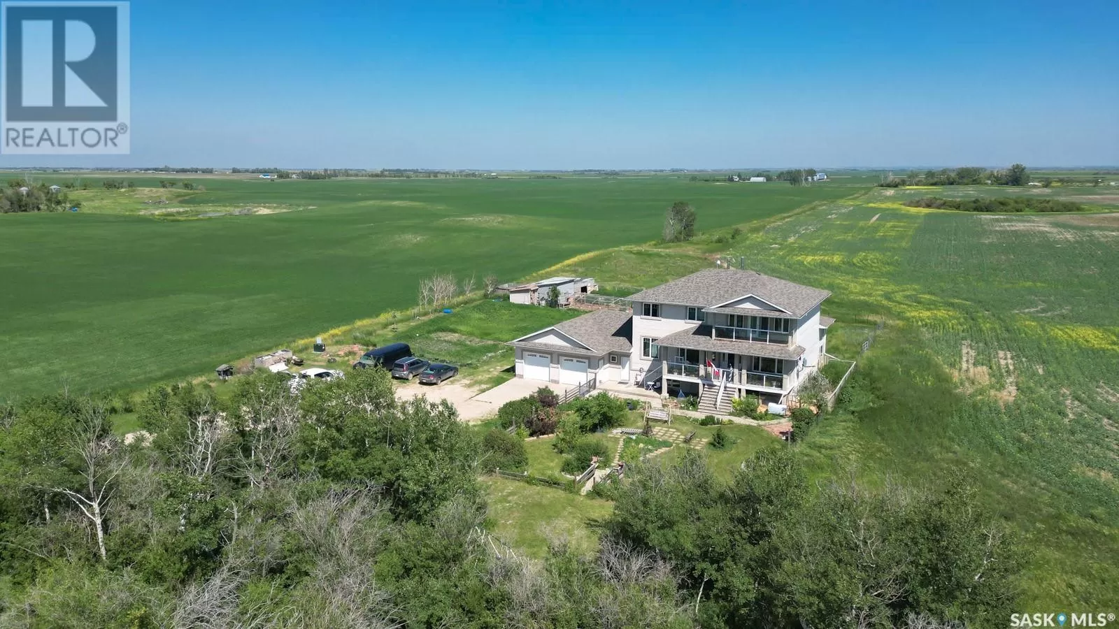 Welcome to the Counios Acreage.. A 160 Acre Quarter with a Modern Home Near Lumsden, SK . This incredible 160-acre quarter section located just 7 minutes from the vibrant town of Lumsden, Saskatchewan. With 138 cultivated acres, this property offers the perfect balance of peaceful prairie living and modern conveniences. At the heart of the property sits a well-built 2814sq ft home, constructed in 2010 on piles and durable and energy-efficient ICF block foundation. The home features 8 bedrooms including a large primary bedroom w a 4pce ensuite. A large kitchen and separate dining room. Multiple family rooms, an office, playroom and sunroom. A fully finished basement with another kitchen/dining area provide a spacious and comfortable environment for everyday living as well as an ideal setup for a growing family or even multi-generational living. There's plenty of space for everyone to enjoy privacy while sharing a connected and welcoming home. Utility costs are minimized thanks to a private well for water and an efficient geothermal heating system, offering both eco-conscious living and long-term cost savings. Step outside to enjoy front and rear decks that overlook the gently rolling hills of the surrounding landscape. There is a chicken coup and space for raising hobby animals, garden area, firepit and a place for the children to play. As well as a balcony off the master suite which is a great place to enjoy those Saskatchewan sunsets. This quarter section is a rare blend of modern living, practical farmland, and wide-open space â all within easy reach of Lumsden and a short commute to Regina. Whether youâre expanding your farming operation, searching for your dream acreage, or creating a home for multiple generations, this property is a must-see. Please contact a real estate professional for more information or to book your private showing! (id:27476)