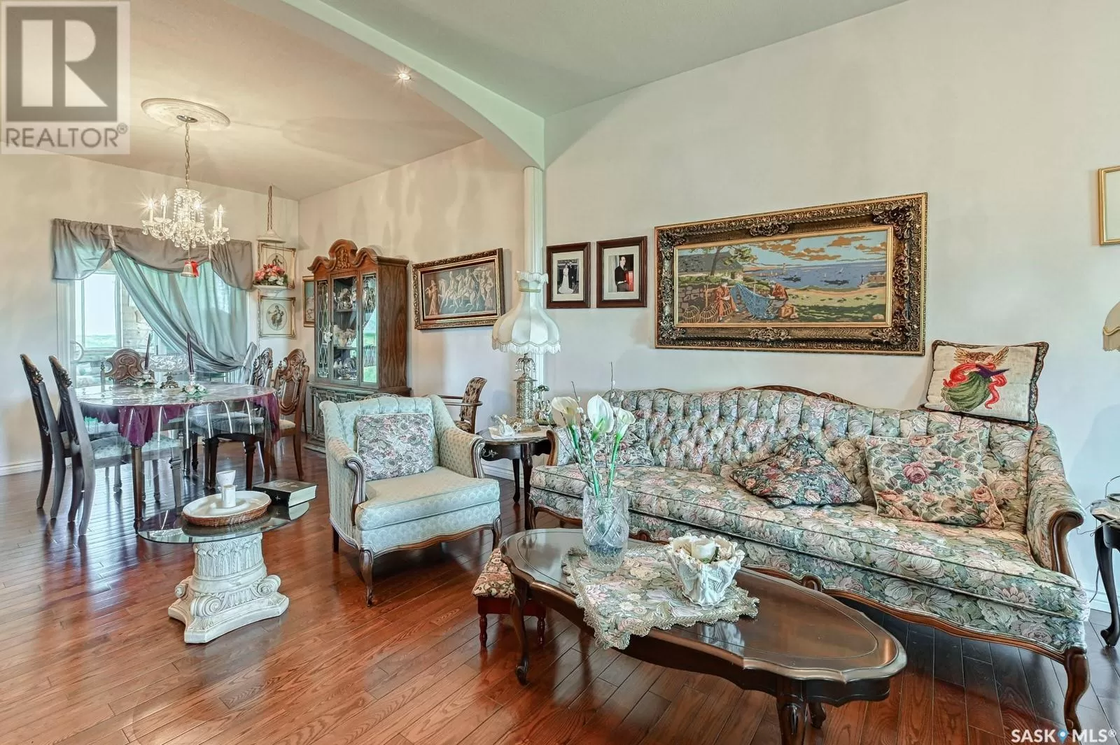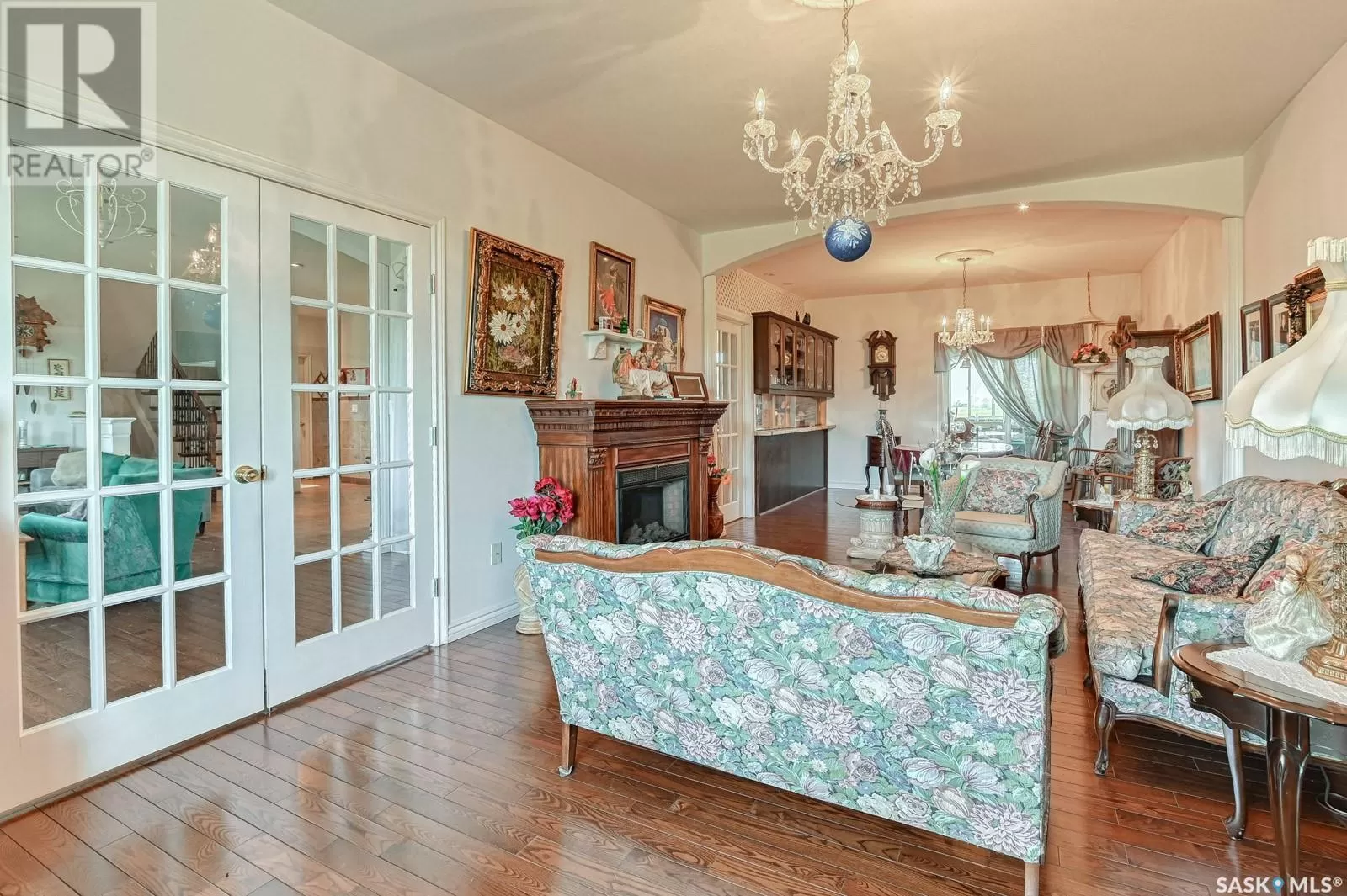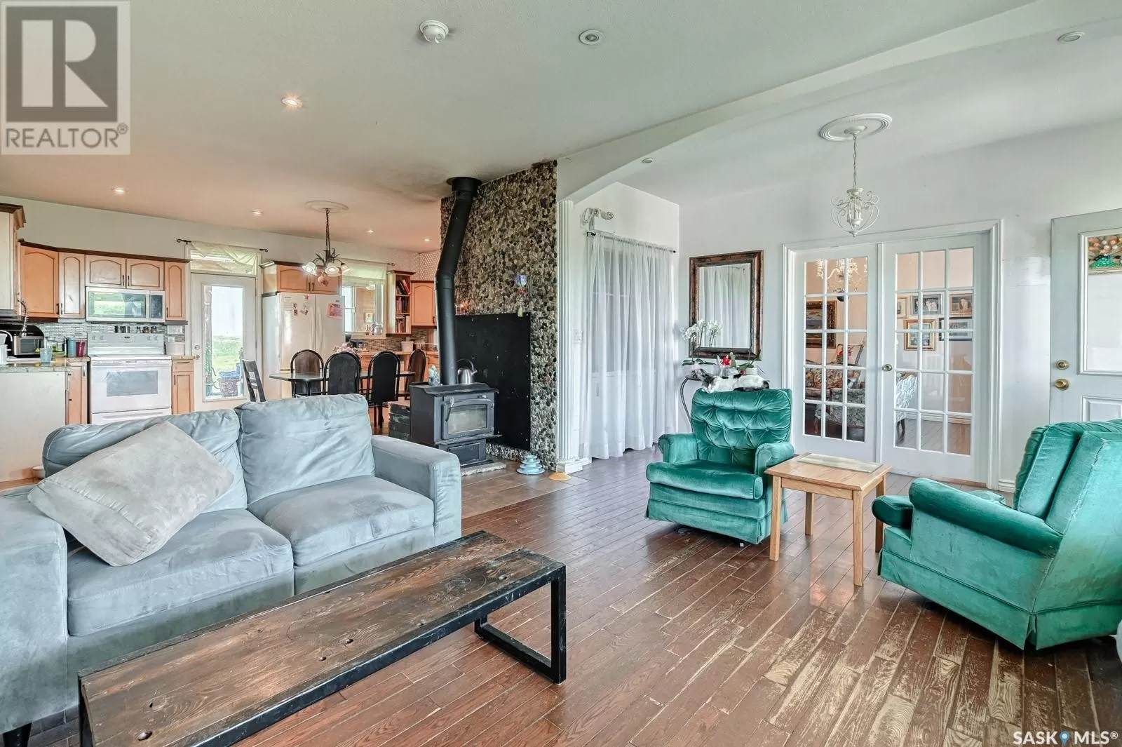 Welcome to the Counios Acreage.. A 160 Acre Quarter with a Modern Home Near Lumsden, SK . This incredible 160-acre quarter section located just 7 minutes from the vibrant town of Lumsden, Saskatchewan. With 138 cultivated acres, this property offers the perfect balance of peaceful prairie living and modern conveniences. At the heart of the property sits a well-built 2814sq ft home, constructed in 2010 on piles and durable and energy-efficient ICF block foundation. The home features 8 bedrooms including a large primary bedroom w a 4pce ensuite. A large kitchen and separate dining room. Multiple family rooms, an office, playroom and sunroom. A fully finished basement with another kitchen/dining area provide a spacious and comfortable environment for everyday living as well as an ideal setup for a growing family or even multi-generational living. There's plenty of space for everyone to enjoy privacy while sharing a connected and welcoming home. Utility costs are minimized thanks to a private well for water and an efficient geothermal heating system, offering both eco-conscious living and long-term cost savings. Step outside to enjoy front and rear decks that overlook the gently rolling hills of the surrounding landscape. There is a chicken coup and space for raising hobby animals, garden area, firepit and a place for the children to play. As well as a balcony off the master suite which is a great place to enjoy those Saskatchewan sunsets. This quarter section is a rare blend of modern living, practical farmland, and wide-open space â all within easy reach of Lumsden and a short commute to Regina. Whether youâre expanding your farming operation, searching for your dream acreage, or creating a home for multiple generations, this property is a must-see. Please contact a real estate professional for more information or to book your private showing! (id:27476)