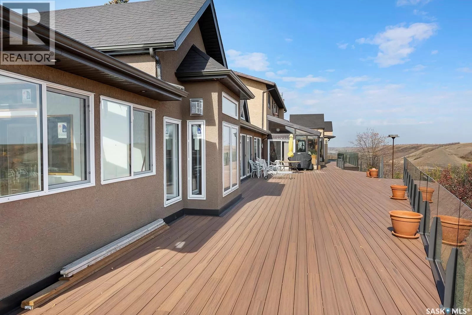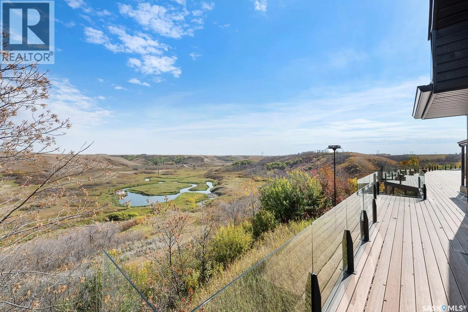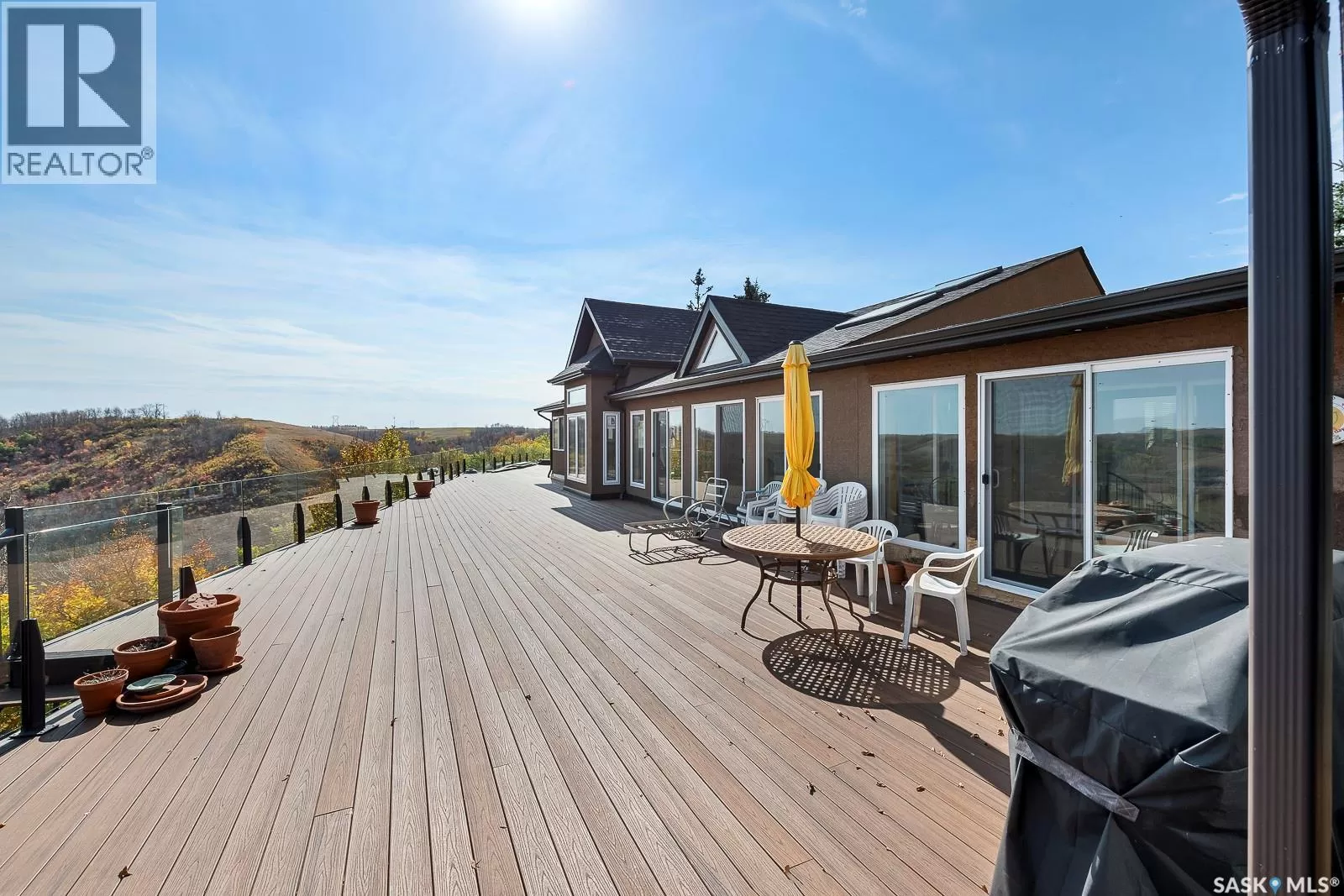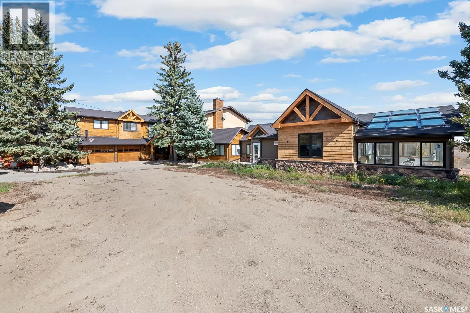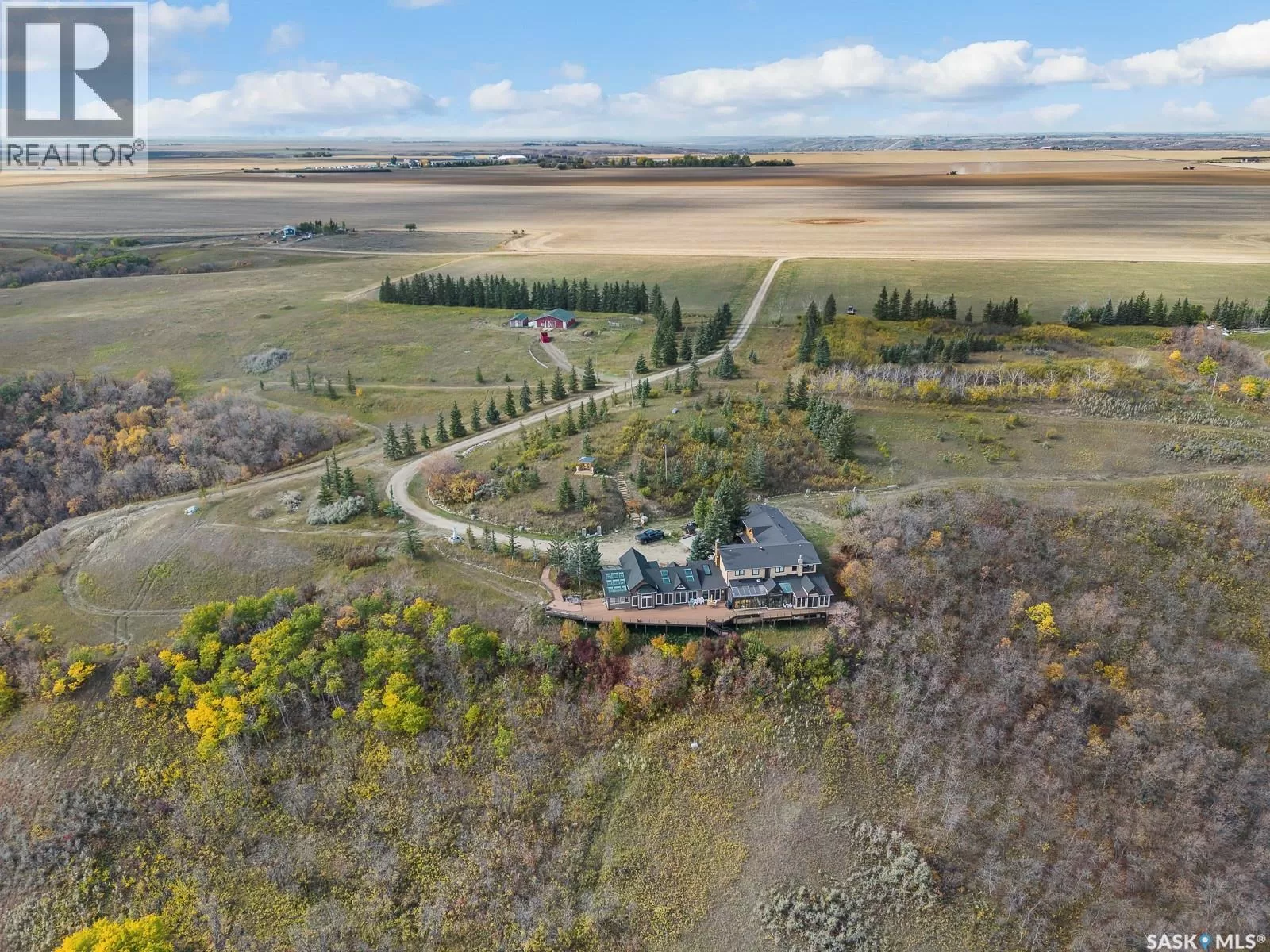 Step into a world where the beauty of nature meets the grace of home. Nestled in the embrace of the Qu'Appelle Valley, this 70-acre sanctuary whispers serenity with every breeze. Here, life moves slower, framed by the endless horizon of the valley and the gentle flow of the river below. As you approach, the grandeur of over 6,000 square feet of living space unfolds before you. The home is a masterpiece, where every detail reflects a deep connection to the land. Four spacious bedrooms and four thoughtfully designed bathrooms offer comfort and peace, while multiple sunrooms flood the space with the golden glow of daylight, inviting nature in. Step out onto the expansive wrap-around deckâa place where time stands still, and the valley stretches as far as the eye can see. From this perch, the river dances in the distance, a constant reminder of the tranquility that surrounds you. An artistâs studio awaits, ready to inspire, surrounded by the quiet beauty of the valley. And for those who cherish hospitality, the guest cottage offers a warm welcome, a retreat within a retreat. The five-car garage stands ready to house your vehicles, or perhaps, the tools for your next great adventure. And when the day is done, immerse yourself in the luxurious swim spa, watching the stars as they appear, one by one, in the vast sky above. This property is more than a homeâitâs a place where art, nature, and life come together in perfect harmony. All just 15 minutes from the heart of Regina. Adding value to this property is the 1 bedroom guest house in the valley, over looking the river. (id:27476)