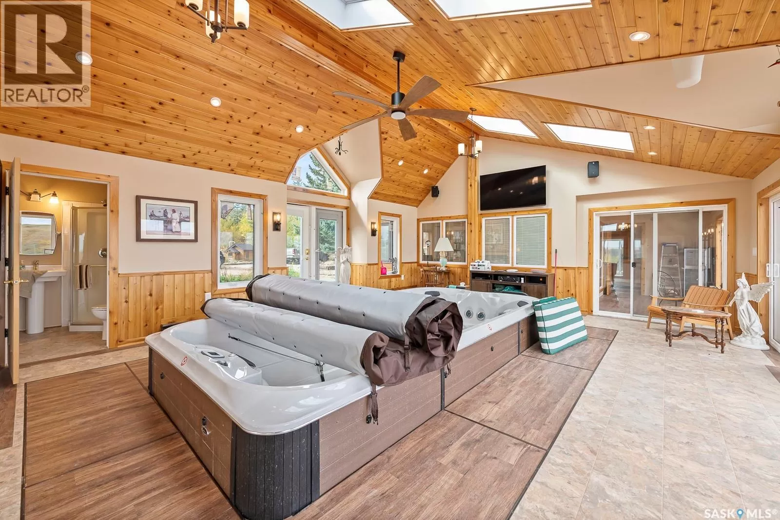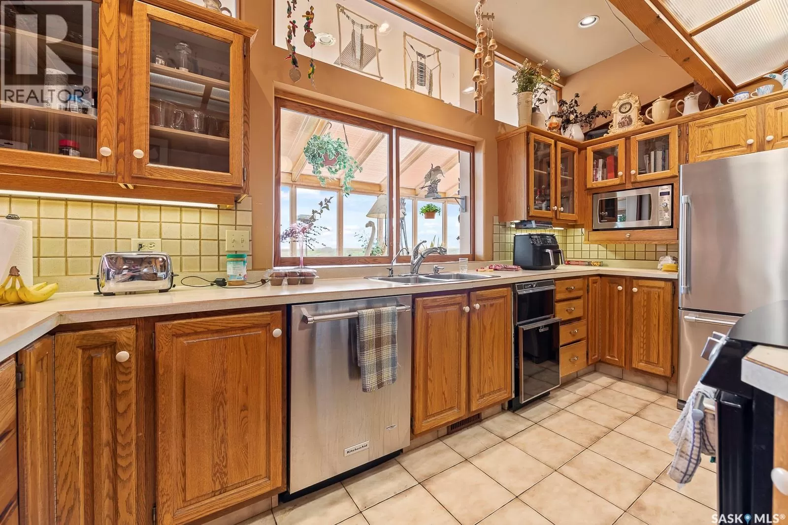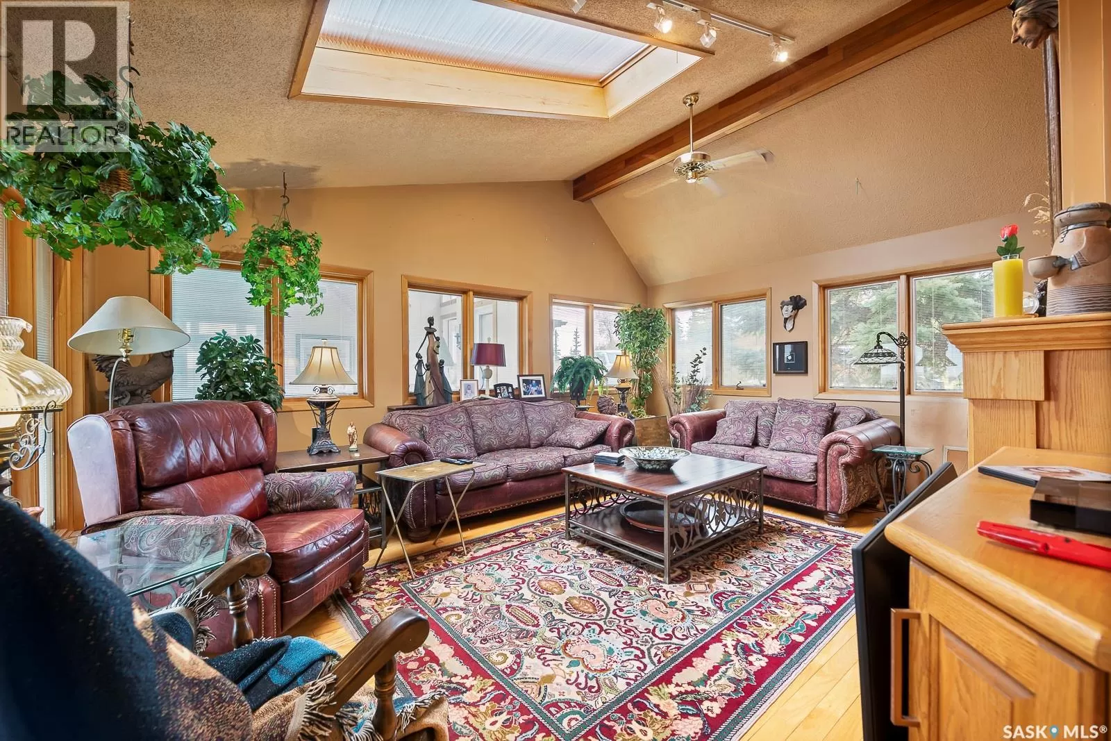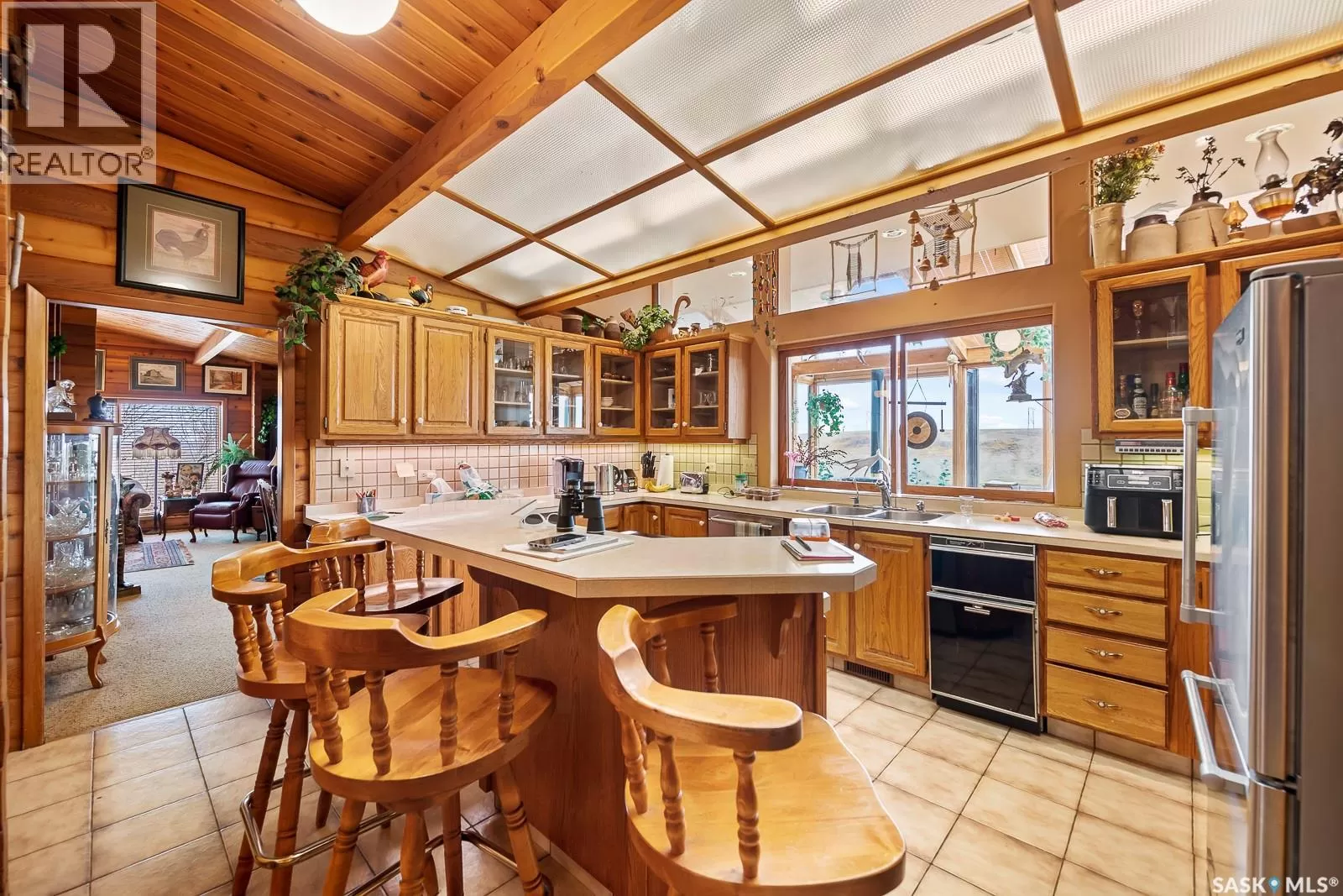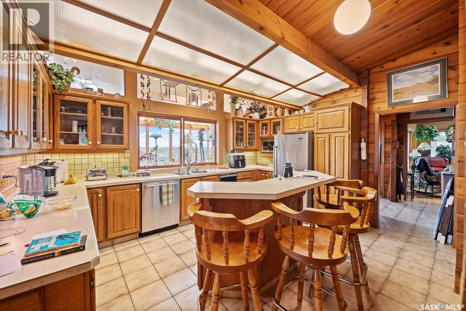 Step into a world where the beauty of nature meets the grace of home. Nestled in the embrace of the Qu'Appelle Valley, this 70-acre sanctuary whispers serenity with every breeze. Here, life moves slower, framed by the endless horizon of the valley and the gentle flow of the river below. As you approach, the grandeur of over 6,000 square feet of living space unfolds before you. The home is a masterpiece, where every detail reflects a deep connection to the land. Four spacious bedrooms and four thoughtfully designed bathrooms offer comfort and peace, while multiple sunrooms flood the space with the golden glow of daylight, inviting nature in. Step out onto the expansive wrap-around deckâa place where time stands still, and the valley stretches as far as the eye can see. From this perch, the river dances in the distance, a constant reminder of the tranquility that surrounds you. An artistâs studio awaits, ready to inspire, surrounded by the quiet beauty of the valley. And for those who cherish hospitality, the guest cottage offers a warm welcome, a retreat within a retreat. The five-car garage stands ready to house your vehicles, or perhaps, the tools for your next great adventure. And when the day is done, immerse yourself in the luxurious swim spa, watching the stars as they appear, one by one, in the vast sky above. This property is more than a homeâitâs a place where art, nature, and life come together in perfect harmony. All just 15 minutes from the heart of Regina. Adding value to this property is the 1 bedroom guest house in the valley, over looking the river. (id:27476)