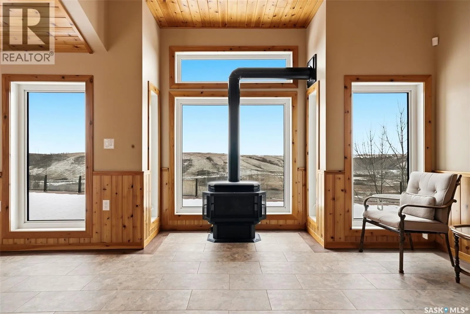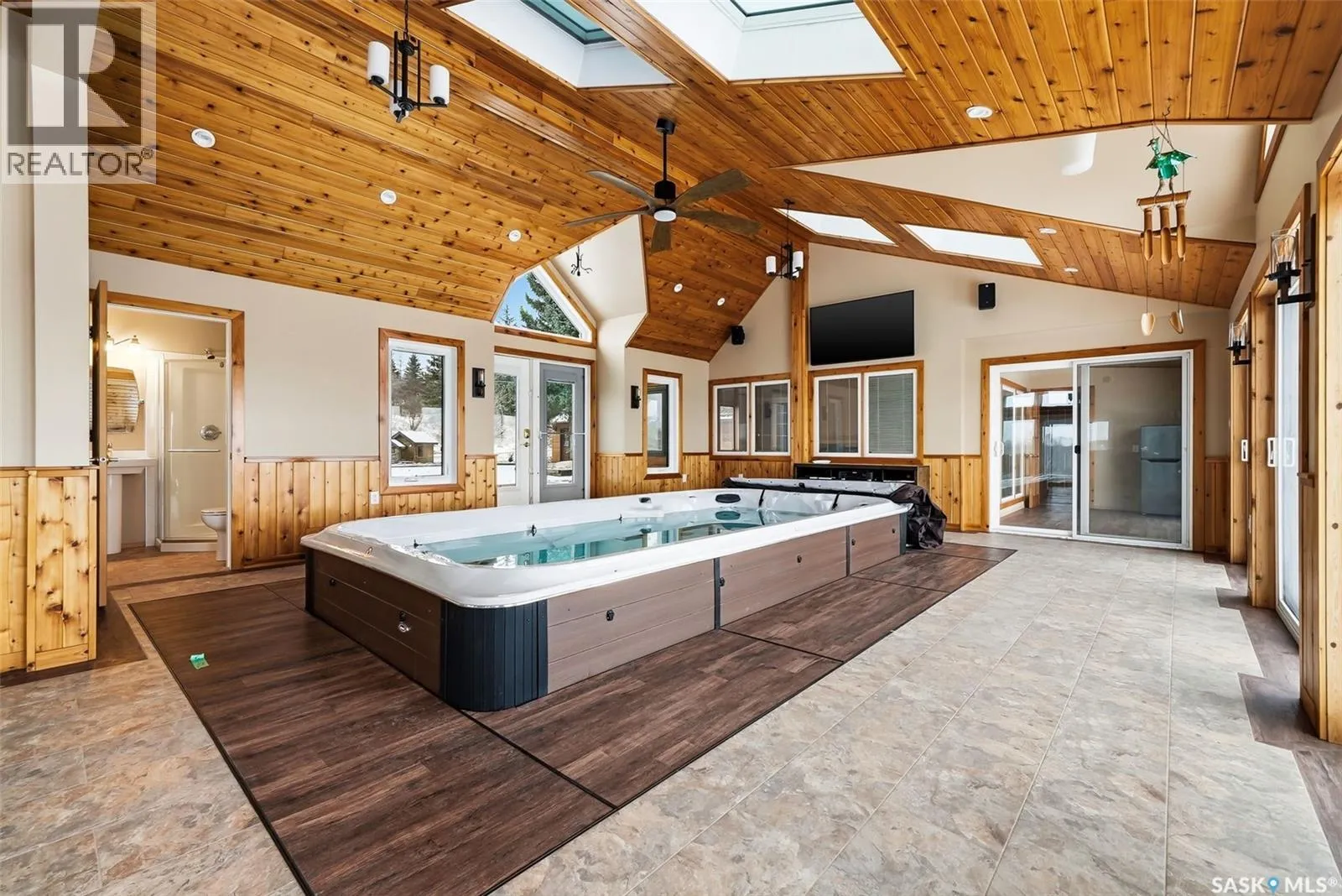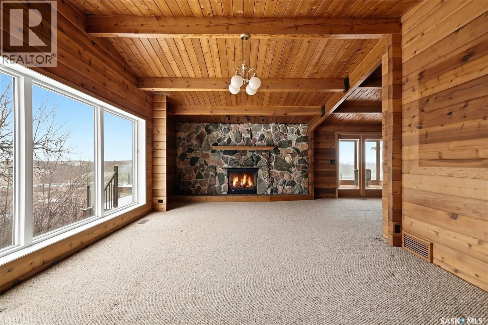 Step into a world where the beauty of nature meets the grace of home. Nestled in the embrace of the Qu'Appelle Valley, this 70-acre sanctuary whispers serenity with every breeze. Here, life moves slower, framed by the endless horizon of the valley and the gentle flow of the river below. As you approach, the grandeur of over 6,000 square feet of living space unfolds before you. The home is a masterpiece, where every detail reflects a deep connection to the land. Four spacious bedrooms and four thoughtfully designed bathrooms offer comfort and peace, while multiple sunrooms flood the space with the golden glow of daylight, inviting nature in. Step out onto the expansive wrap-around deckâa place where time stands still, and the valley stretches as far as the eye can see. From this perch, the river dances in the distance, a constant reminder of the tranquility that surrounds you. An artistâs studio awaits, ready to inspire, surrounded by the quiet beauty of the valley. And for those who cherish hospitality, the guest cottage offers a warm welcome, a retreat within a retreat. The five-car garage stands ready to house your vehicles, or perhaps, the tools for your next great adventure. And when the day is done, immerse yourself in the luxurious swim spa, watching the stars as they appear, one by one, in the vast sky above. This property is more than a homeâitâs a place where art, nature, and life come together in perfect harmony. All just 15 minutes from the heart of Regina. Adding value to this property is the 1 bedroom guest house in the valley, over looking the river. (id:27476)