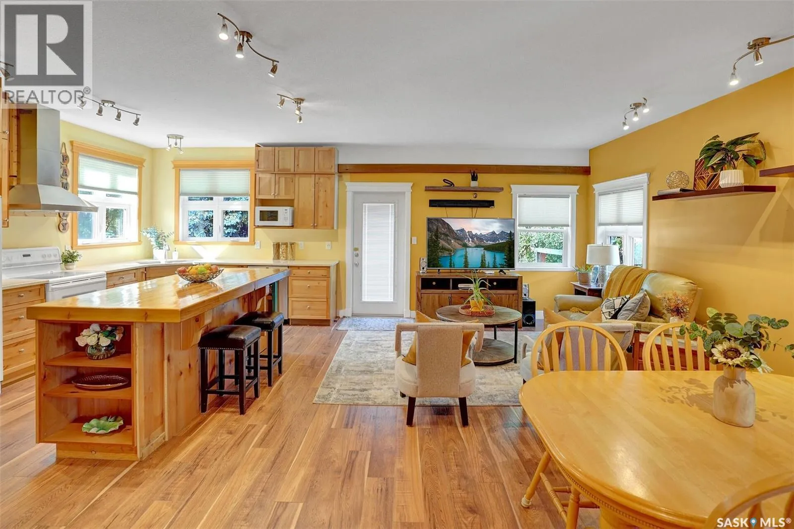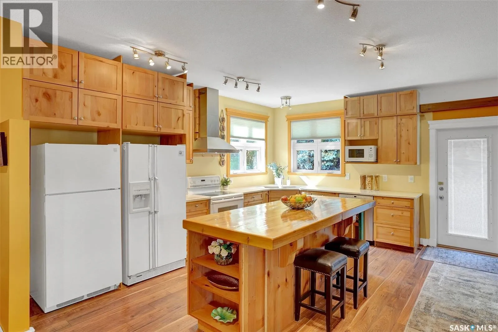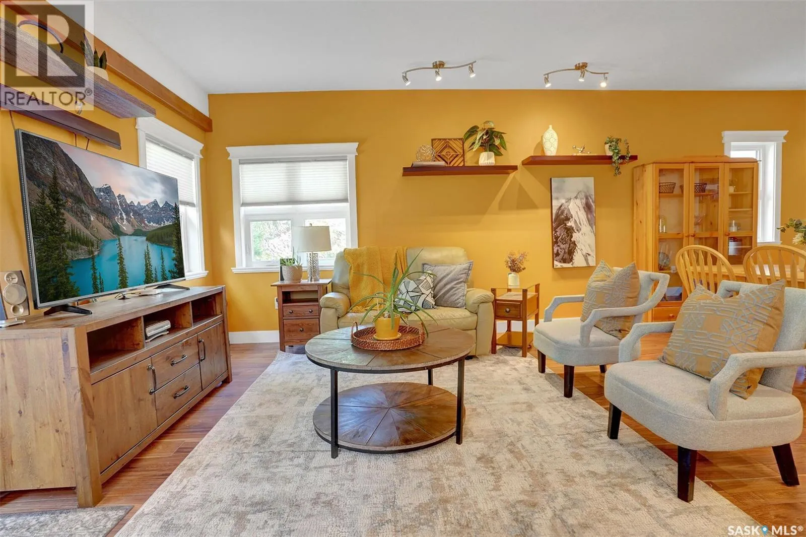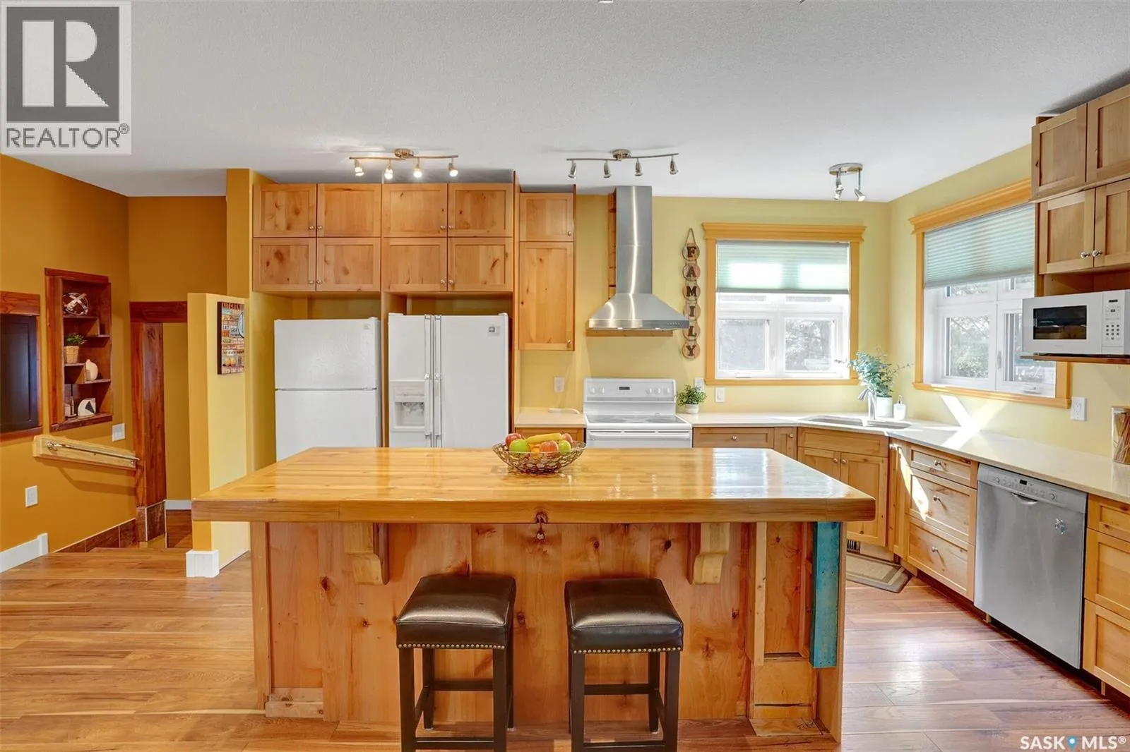 Welcome to 730 James St N! Nestled in the vibrant community of Lumsden, this home offers the charm of small-town living while being just 15 minutes from all the conveniences of the city. With over 1,800 sq ft of thoughtfully designed living space and countless updates throughout, this property is move-in ready. The heart of the home is its open-concept family, dining, and kitchen areaâperfect for entertaining or everyday living. The seller has even pre-planned for future expansion with an LVL beam already in place should you wish to extend the west wall. The kitchen is a true showpiece, featuring a stunning 300-year-old cedar wood island top, beautifully restored and serving as the focal point of the space. With abundant cabinetry, expansive counterspace, a walk-in pantry, and room for two fridges or freezers, this kitchen is a chefâs dream. Down the hall, youâll find a practical mudroom, four generously sized bedrooms with fresh flooring and paint, and two stylishly updated bathrooms. Highlights include a custom tile shower, a deep soaker tub, and modern vanities. A large laundry/storage room completes this well designed space, and direct access to the insulated single attached garage add to the convenience. The basement provides additional potential, offering a spacious unfinished area ready for your personal touch. Outdoors, the nearly 1/3-acre yard is a private retreat. Mature trees, stone patios, custom pergolas, rock gardens, and xeriscaping create a low-maintenance yet beautiful space to relax or entertain. For hobbyists or entrepreneurs, the fully insulated and heated workshop off the back alley is a standout feature, providing year-round workspace. All tools and wood supplies are negotiable. This home is truly the best of both worldsâsmall-town charm, city proximity, and a property brimming with opportunity. Value added items include: PVC windows, shingles Sept 2025, all 6 appliances, central air, garburator, 3 electrical panels, and more! (id:27476)