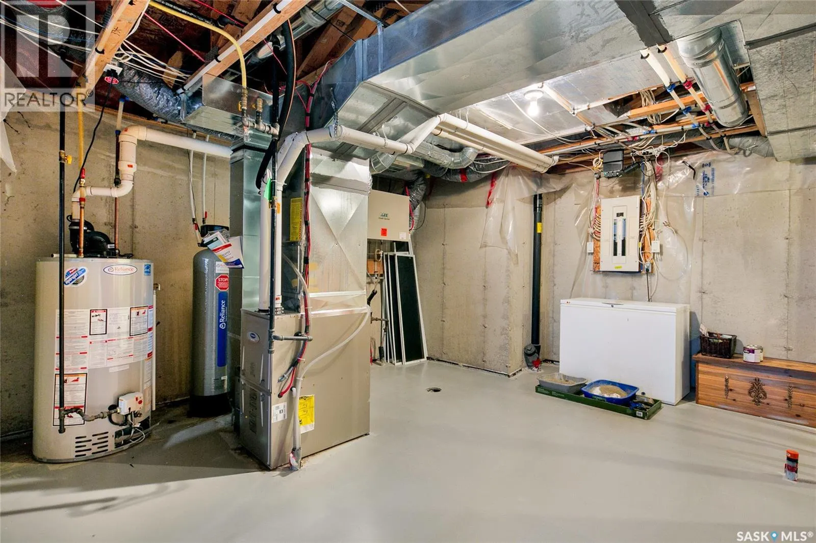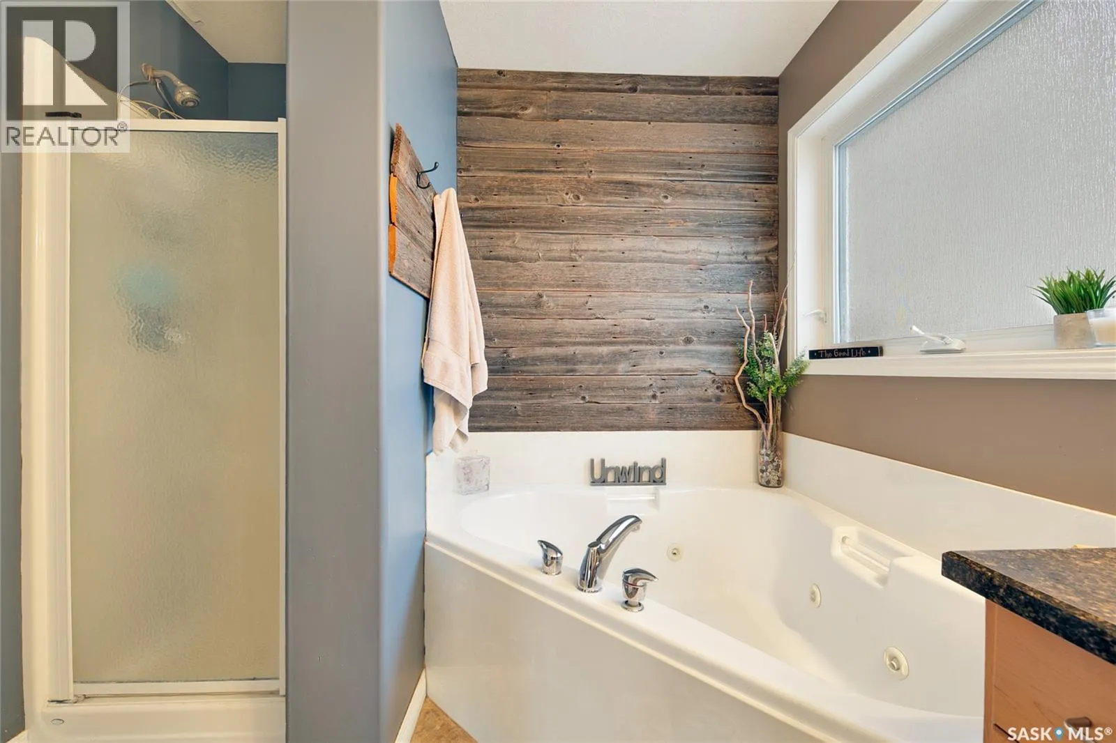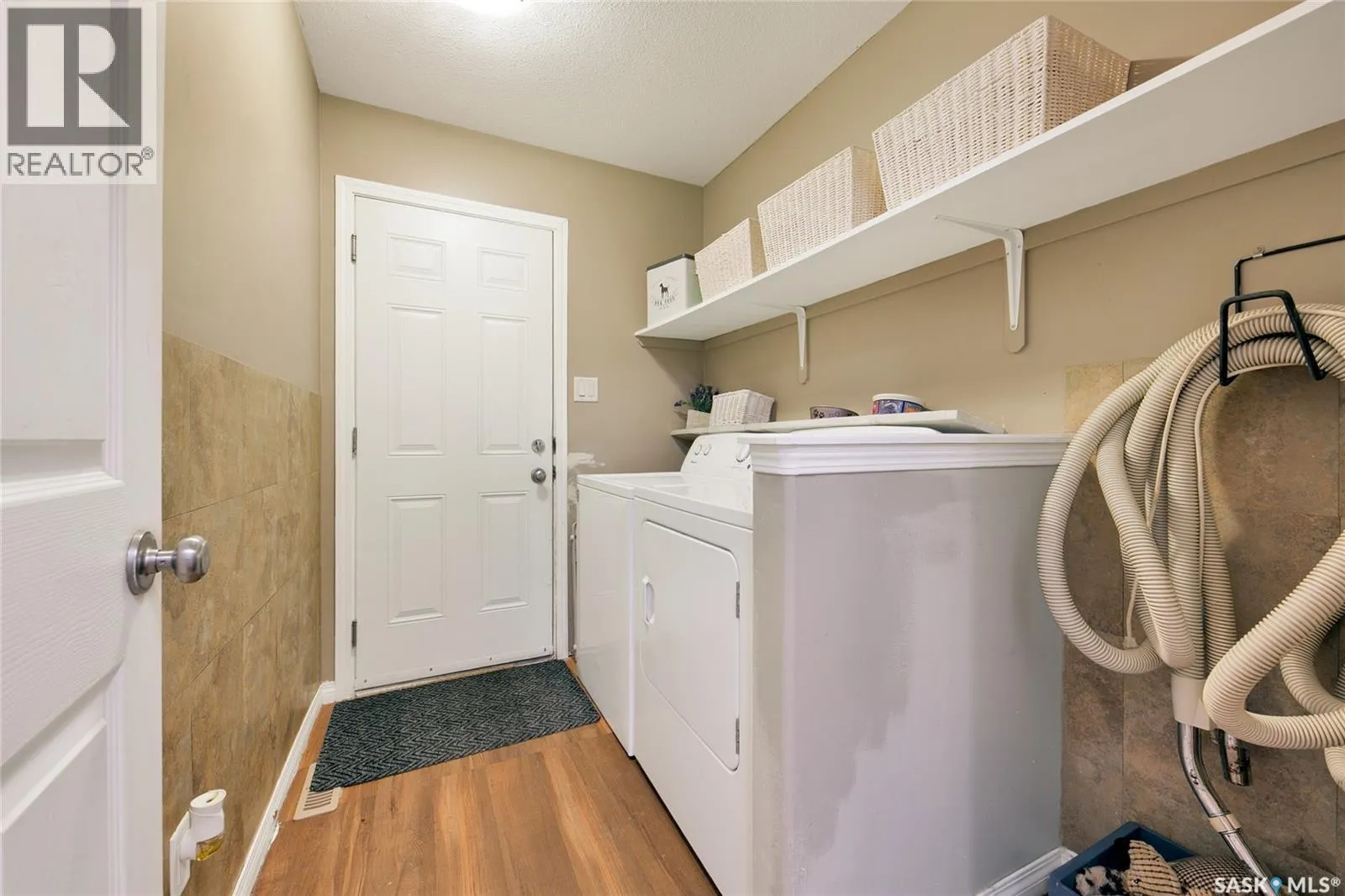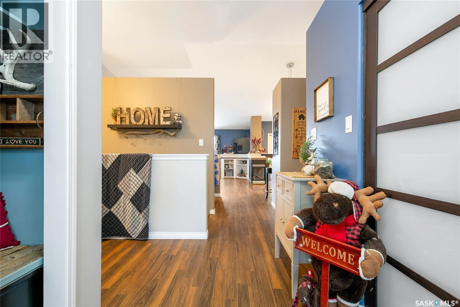 Beautiful corner lot in Lumsden's Schandre Estates. Welcome to this spacious and inviting bungalow nestled in the quaint town of Lumsden. Offering a perfect blend of valley living and modern convenience, this 3-bedroom, 2-bathroom home features 1,446 sq. ft. of well-planned living space above grade, complemented by a partially finished basement that offers incredible potential for your growing family. The main floor features a modern kitchen that serves as the heart of the home, complete with a sit-up island, durable laminate countertops, and stainless steel appliances. The layout flows well with a mix of laminate flooring through the main living areas, accented by tile and vinyl plank in key spaces. The lower level provides a fantastic canvas for your vision. Currently partially finished, it is ready for your final touches to easily add two additional bedrooms and another bathroom, significantly increasing the living space and value of the home. Outdoors, the property truly shines with a large backyard that backs onto a lane, offering added privacy and access. Pet owners will appreciate the convenient dog run attached to the attached garage. For those with toys or multiple vehicles, the property boasts impressive parking capacity for up to six vehicles. Located in a desirable neighbourhood, this home offers the best of all worlds. Lumsden features a K-12 school and a vibrant community atmosphere, all while being ideally situated just 15 minutes from the amenities of Regina and only 15 minutes from the recreation at Regina Beach and Last Mountain Lake. This bungalow perfectly blends comfort, potential, and an unbeatable location. (id:27476)