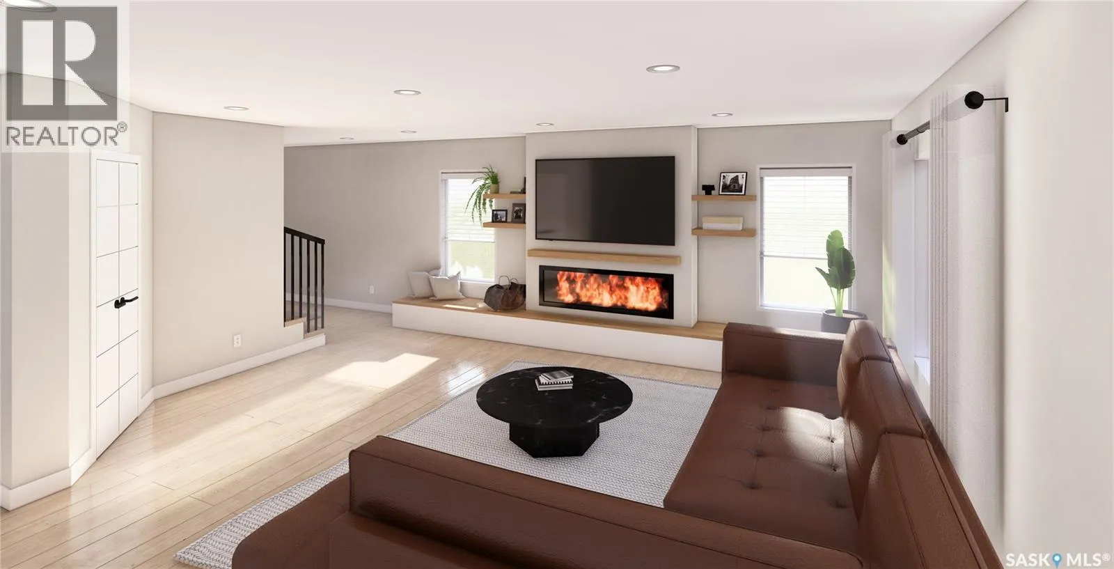 Welcome to 55 Country Road, Lumsden, an exceptional under-construction 2-storey home by Prostruct Developments, offering a perfect blend of modern design, functional family living, and small-town charmâjust 20 minutes from Regina. Set on a generous 7,840 sq. ft. lot, this thoughtfully designed home provides 1,927 sq. ft. above grade, plus a full unfinished basement ready for future development. The main floor is bright and open, featuring vinyl plank flooring throughout, a spacious living room with a striking electric fireplace, and a well-appointed kitchen designed for everyday living and entertaining. Highlights include a large island with seating, walk-in pantry, modern cabinetry, and a seamless flow to the dining area. A convenient 2-piece bath, welcoming foyer, and practical mudroom with direct access to the 24â x 24â double attached garage complete the main level. Upstairs, the layout is ideal for families, offering three bedrooms, a bonus room, and second-floor laundry. The primary suite is a true retreat with a walk-in closet and 4-piece ensuite, while the additional bedrooms are serviced by a full main bath. Quality finishes, smart layouts, and contemporary styling continue throughout. Additional features include central air conditioning, double concrete driveway, and modern exterior finishes. Construction is underway, providing buyers the opportunity to secure a brand-new home in one of Saskatchewanâs most sought-after communities. Lumsden is a welcoming, family-oriented community nestled in the beautiful QuâAppelle Valley, known for its scenic views, excellent schools, recreation facilities, and strong sense of community. Residents enjoy local shops, restaurants, walking trails, and year-round outdoor activitiesâall while remaining conveniently close to Regina for work, shopping, and major amenities. This is small-town living without sacrificing city access. Note: Images are renderings and subject to change. Final finishes and specifications may vary. (id:27476)