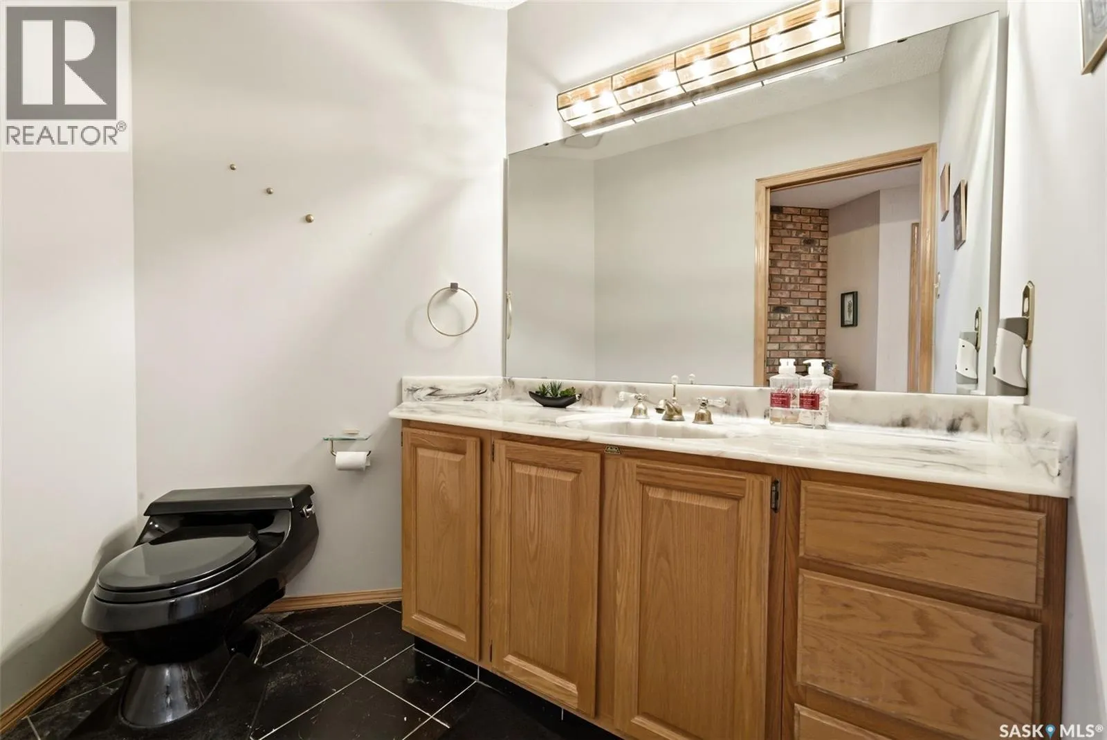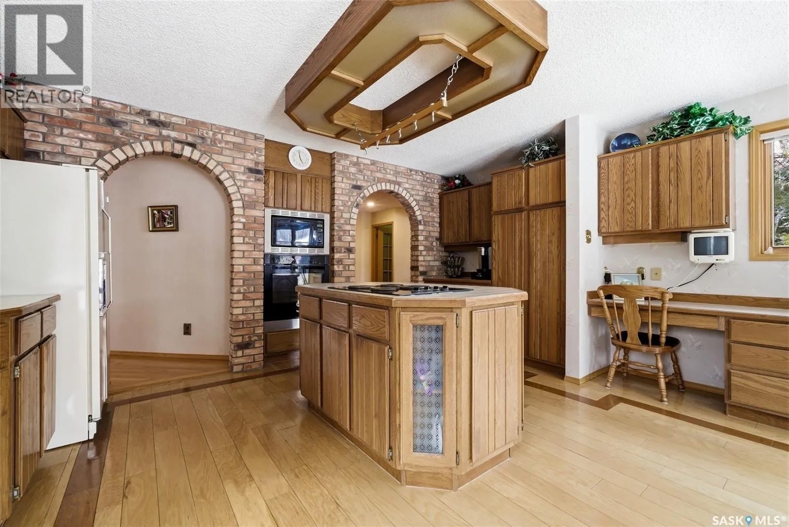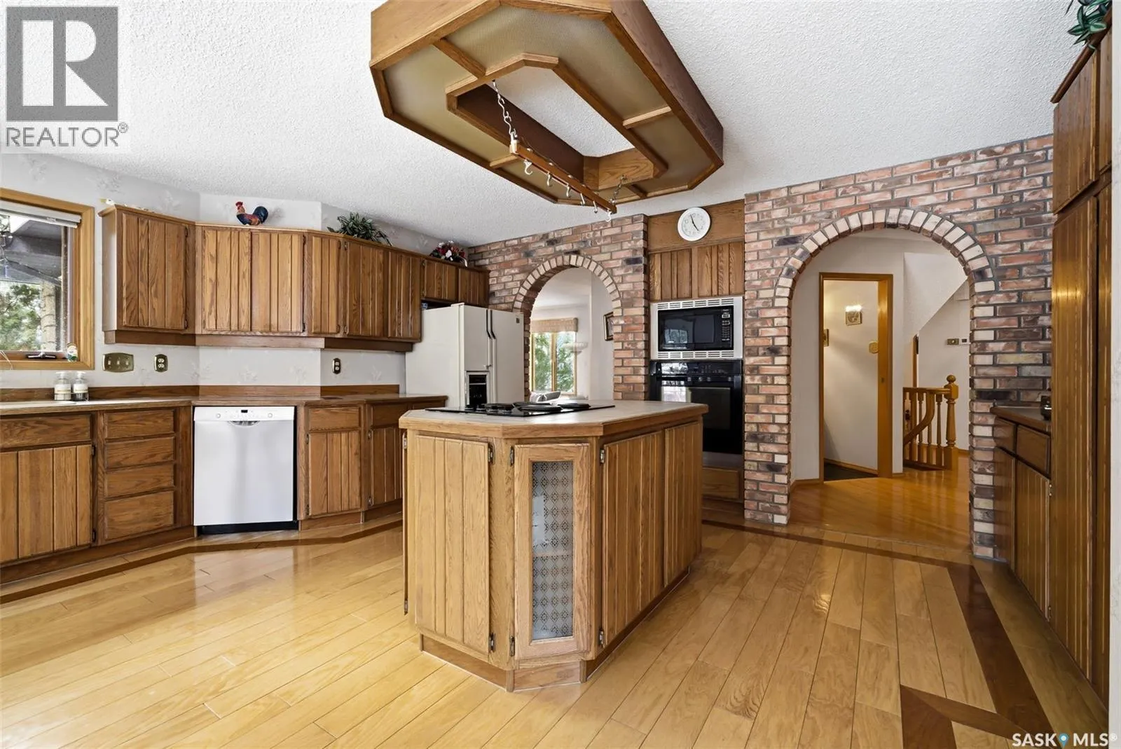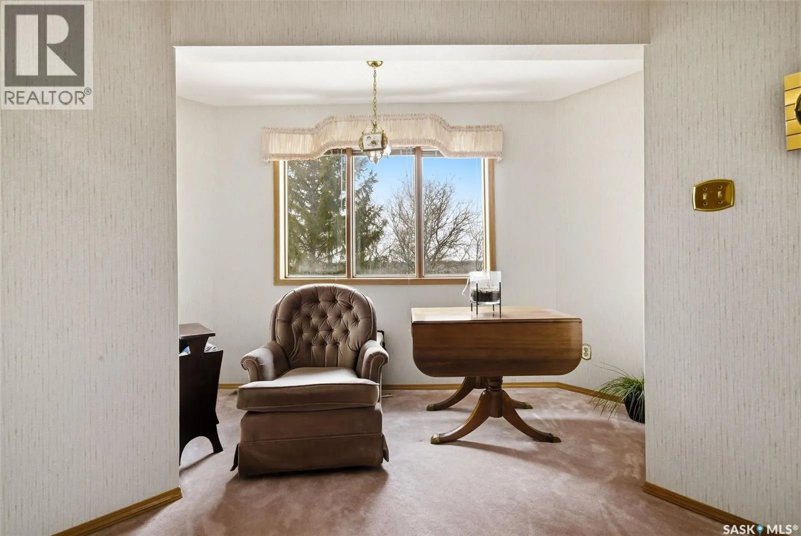 Welcome to your own private retreat just 20 minutes from Regina, nestled in the picturesque, storybook community of Lumsden. This custom-built home showcases craftsmanship and architectural detail that are increasingly rare to find. Perfectly positioned to overlook a beautiful ravine and backing a municipal reserve, this two-storey residence with its striking Tyndall Stone exterior offers an unmatched sense of peace, privacy, and natural beauty. As you arrive, the double driveway leads you through mature trees to a home that immediately impresses with its timeless design and commanding presence. Inside, the grand foyer sets the tone. To the right, an elegant formal living room flows through a charming brick archway into a spacious, sun-filled kitchen with expansive windows framing views of the forest-like backyard. A formal dining room with a gold-plated chandelier sits adjacentâan inviting space filled with character and history. To the left of the foyer, youâll discover a spectacular great room wrapped in cedar walls and ceilings, with windows capturing sweeping views of the QuâAppelle Valley. A walkout leads to a wrap-around balcony where you can take in the breathtaking scenery. This room is designed for memorable gatherings, complete with a wood-burning fireplace and a wet bar. An office/bedroom, 2-piece powder room, and laundry room complete the main level. Upstairs, two spacious bedrooms share a 4-piece bathroom, along with a peaceful reading nook. The grand primary suite is a true retreat, featuring a wood-burning fireplace, a spa-inspired 5-piece ensuite with a Jacuzzi tub, and a walk-in closet. The lower level offers more living space with a large family room, an additional bedroom, a 3-piece bathroom, a workshop, utility room, cold storage, and direct access to the insulated two-car garage with epoxy flooring. The backyard feels like a forested sanctuary, complete with a rear deck, large gazebo, greenhouse, shed, firepit area, and dog run. (id:27476)