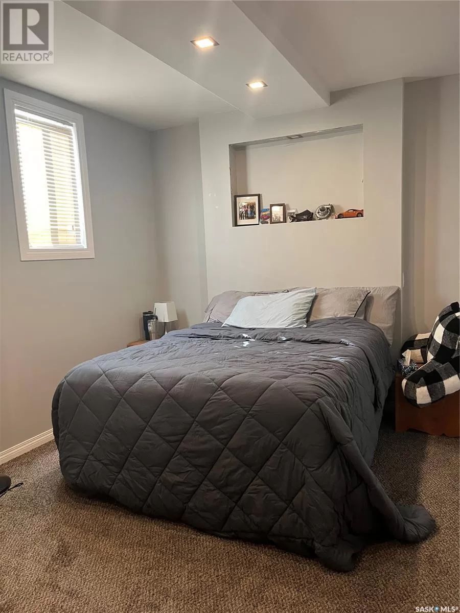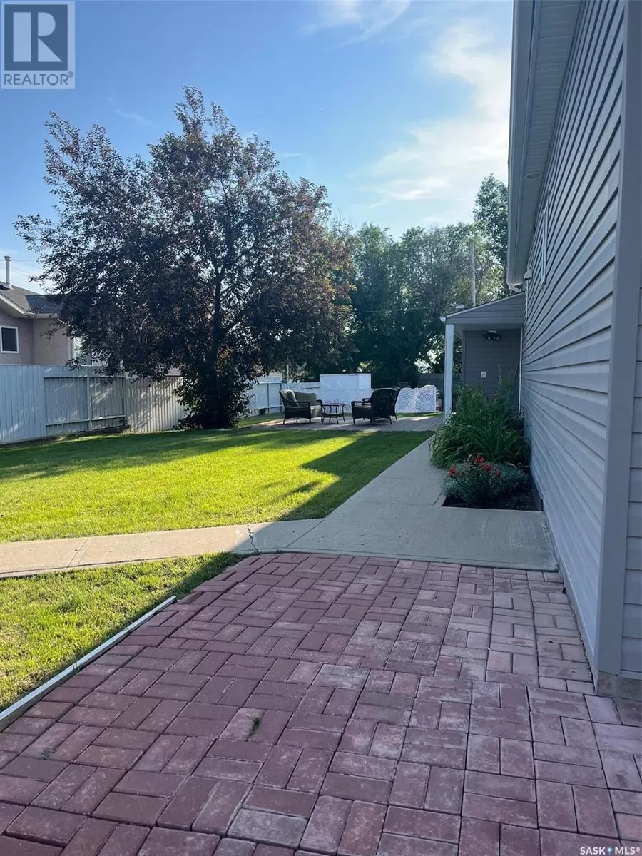 Come home to this lovely 1716 sq ft spacious 2 storey house with attached 2 stall heated garage situated on 1 1/2 lots in a desirable area with close proximity to the school and downtown. This home is move in ready all upgrades have been completed and is ready for you to enjoy. The sidewalk will direct you to the entrance into a large foyer, you will then be welcomed into the bright open kitchen with newer cabinets, a roomy pantry and built in stainless steel appliances. The patio door off the dining room tempts you out onto one of the 2 brick patios that are designed into the yard. On the main floor is the laundry which is neatly tucked away into a spacious equipped closet with easy access. Also, on the main floor is a inviting living room, 2 bedrooms and a renovated 3 piece bath with shower. A bonus room at the front of the house would be great for a reading room, a play area or an office, or whatever your vision is, its large windows are an invitation to just enjoy! As you proceed to the second floor the principal bedroom is spacious to accommodate multiple furniture pieces and the closet is also very roomy with lots of storage area. Across the hall from the bedroom, immerse yourself in the lovely renovated 4 piece bath. There is also an extra bedroom on this level. Recent upgrades/replacements: forced air furnace and electric water heater, central air, most of the electrical, plumbing, flooring, light fixtures. Windows, vinyl siding, soffits, fascia and shingles were replaced around 10 years ago. There is a cement pad for the driveway to the garage and RV parking out back. The yard is beautifully landscaped including a perennial garden bed, underground sprinklers to the front and side yard. As well as a garden plot and shed for the avid gardener. This home is well kept and updated, ready to move into for you and your family to enjoy! (id:27476)