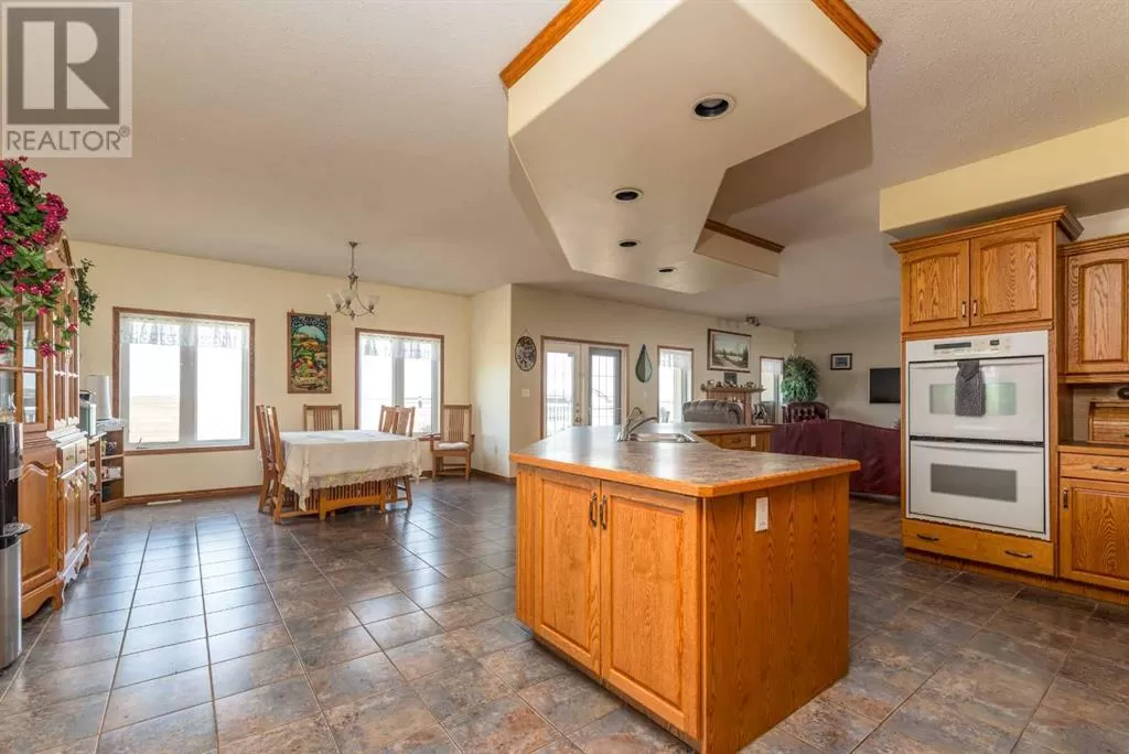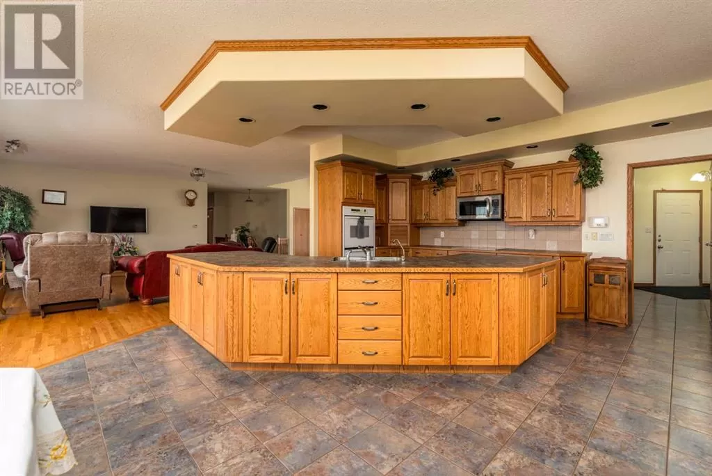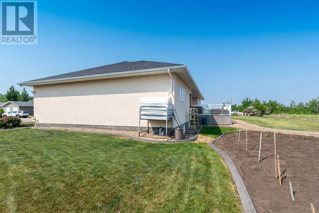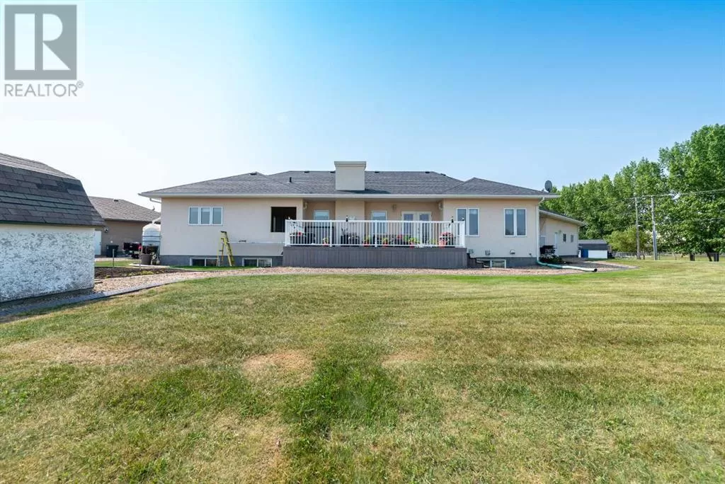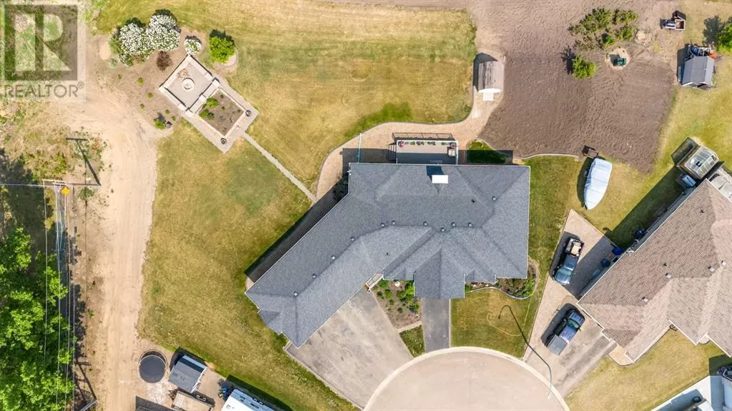 Step into timeless elegance with this meticulously crafted 2400 sq ft bungalow, built in 2006 and nestled on a quiet cul-de-sac. Positioned on two spacious lots and backing onto an open field, this home offers both privacy and scenic views. Upon entry, you're greeted by a covered foyer leading into an expansive, light-filled living area. The oversized living room is the perfect gathering space, complete with a cozy gas fireplace and a striking spiral staircase that descends to the entertainment-rich lower level. At the heart of the home lies a chefâs dreamâan oak kitchen with a massive center island, double wall oven, countertop range, and a large walk-in pantry. The main floor also boasts three generous bedrooms, a dedicated office, and 2.5 well-appointed bathrooms for optimal convenience. The fully developed basement is designed with entertaining in mind. It features a 38x39 family room, two additional bedrooms, a full bath, and an expansive bar area ideal for hosting friends and family. The attached 24x36 heated double garage is a standout feature, offering epoxy floors, in-floor heating, a mudroom, and plenty of storage spaceâincluding room for all your hockey gear. Additional highlights include geothermal heating and cooling with a backup system, and in-floor heating in the garage, basement, and all tiled areas upstairs for year-round comfort. Practicality meets luxury with an extra utility/laundry room off the kitchen and a beautifully landscaped backyard oasis. Enjoy evenings around the custom firepit, cultivate your green thumb in the large garden, or store tools in the included shed. RV parking is available on the west side of the lotâperfect for adventurers. This home is move-in ready with all appliances and wall-mounted TVs included. While the reverse osmosis system and water softener are currently disconnected, the property benefits from Maidstoneâs new water system. This exceptional bungalow blends spacious design, modern amenities, and luxurious comfor tâan absolute must-see. (id:27476)