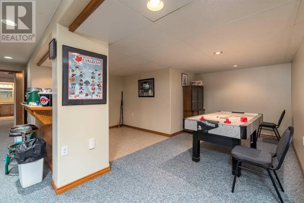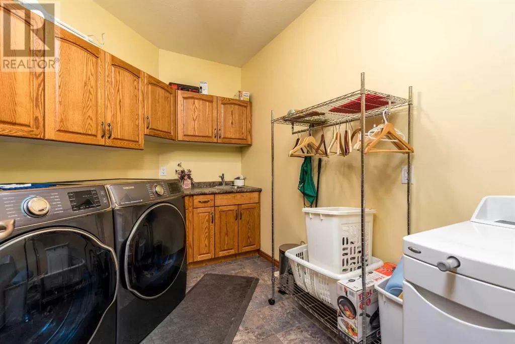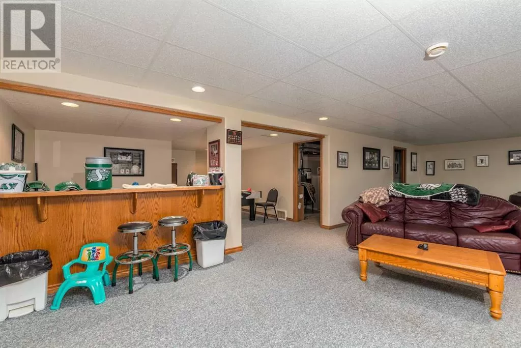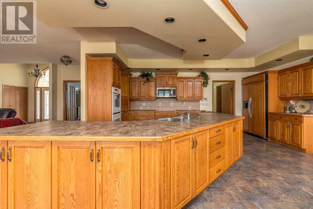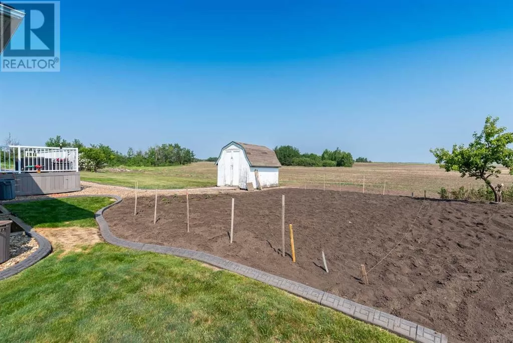 Step into timeless elegance with this meticulously crafted 2400 sq ft bungalow, built in 2006 and nestled on a quiet cul-de-sac. Positioned on two spacious lots and backing onto an open field, this home offers both privacy and scenic views. Upon entry, you're greeted by a covered foyer leading into an expansive, light-filled living area. The oversized living room is the perfect gathering space, complete with a cozy gas fireplace and a striking spiral staircase that descends to the entertainment-rich lower level. At the heart of the home lies a chefâs dreamâan oak kitchen with a massive center island, double wall oven, countertop range, and a large walk-in pantry. The main floor also boasts three generous bedrooms, a dedicated office, and 2.5 well-appointed bathrooms for optimal convenience. The fully developed basement is designed with entertaining in mind. It features a 38x39 family room, two additional bedrooms, a full bath, and an expansive bar area ideal for hosting friends and family. The attached 24x36 heated double garage is a standout feature, offering epoxy floors, in-floor heating, a mudroom, and plenty of storage spaceâincluding room for all your hockey gear. Additional highlights include geothermal heating and cooling with a backup system, and in-floor heating in the garage, basement, and all tiled areas upstairs for year-round comfort. Practicality meets luxury with an extra utility/laundry room off the kitchen and a beautifully landscaped backyard oasis. Enjoy evenings around the custom firepit, cultivate your green thumb in the large garden, or store tools in the included shed. RV parking is available on the west side of the lotâperfect for adventurers. This home is move-in ready with all appliances and wall-mounted TVs included. While the reverse osmosis system and water softener are currently disconnected, the property benefits from Maidstoneâs new water system. This exceptional bungalow blends spacious design, modern amenities, and luxurious comfor tâan absolute must-see. (id:27476)