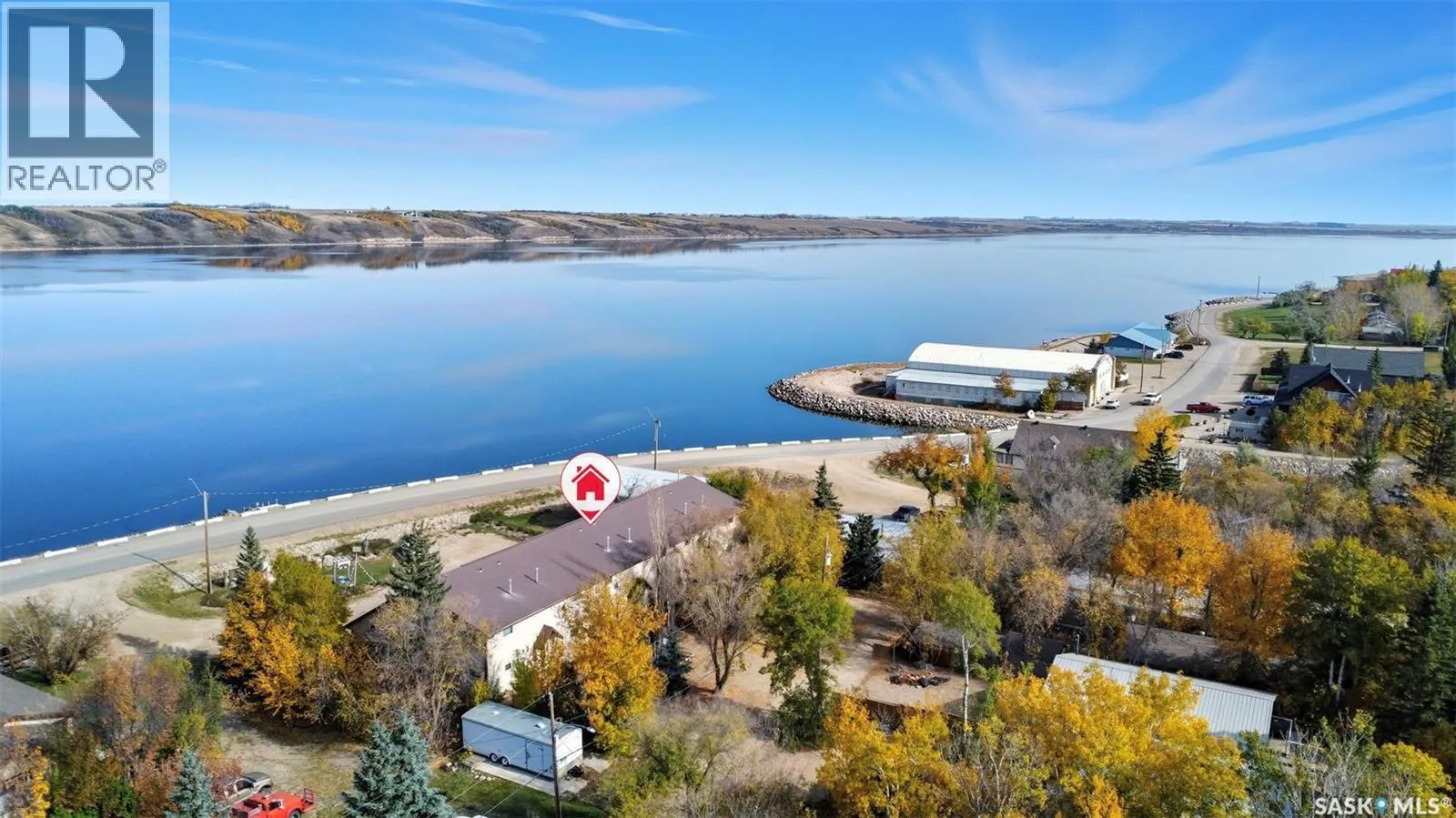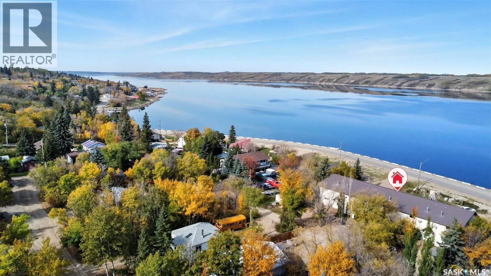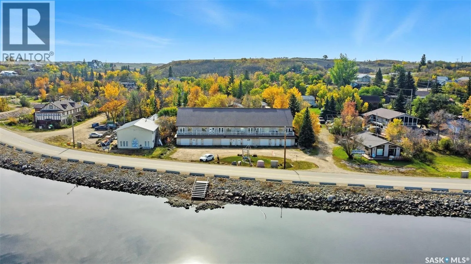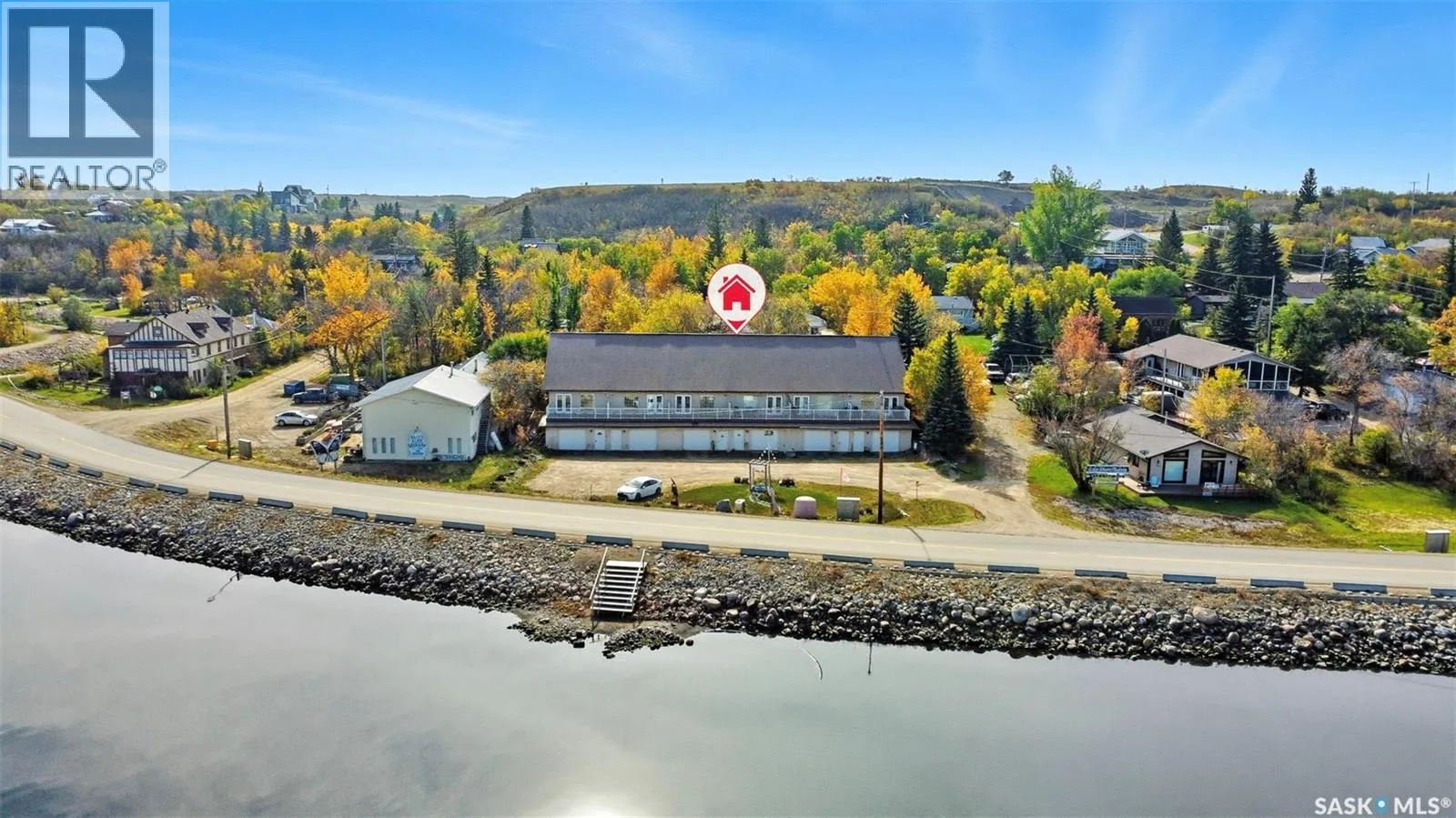 Plan:99MW03201 This cozy condo sits on the shore of Little Manitou Lake offering you an amazing view from your large raised balcony in the spring, summer and fall. Then in the winter months enjoy the serenity and beautiful sunshine in your expansive living space with vaulted ceilings and a fire to warm you in your gas fire place! The north facing exposure allows you to enjoy both sunrise and sunset over the lake year round. Unit #5 is a very well designed 2 bedroom, 2 bath condo with front and back access. The front is assessed from the lower level oversized single garage which takes you into the lower level mud room and large unfinished space which houses the utilities for the unit and can easily be developed into another living space if required with a rough in for a future washroom. Stairs then take you to the main level of the condo. Additionally there is very convenient main level access from the back of the unit with two designated parking stalls. This entrance takes you into a very spacious foyer with 2 closets, 1 hanging and 1 folded and also houses the stacking washer dryer. Off of this area is the guest bedroom and a full bath with 2 accesses, one from the bedroom and one from the hallway. Moving through this space you are welcomed into the open concept kitchen/living and dining area flooded with natural light and dramatic vaulted ceilings with the spectacular view out your front windows onto the lake. The stairway takes you to the upper level boasting a massive master suite with a large walk in closet and another full bath. If you are looking for your summer and weekend get away without the hassle of keeping a yard, or a year round care free living lifestyle this is for you! Only minutes from Watrous which offers all the amenities of the city while you live in the tranquility of the beach. Manitou is health, music and art centric and a welcoming, growing community. Come experience the healing waters of Manitou and all of the great activities the village has to offer. (id:27476)
