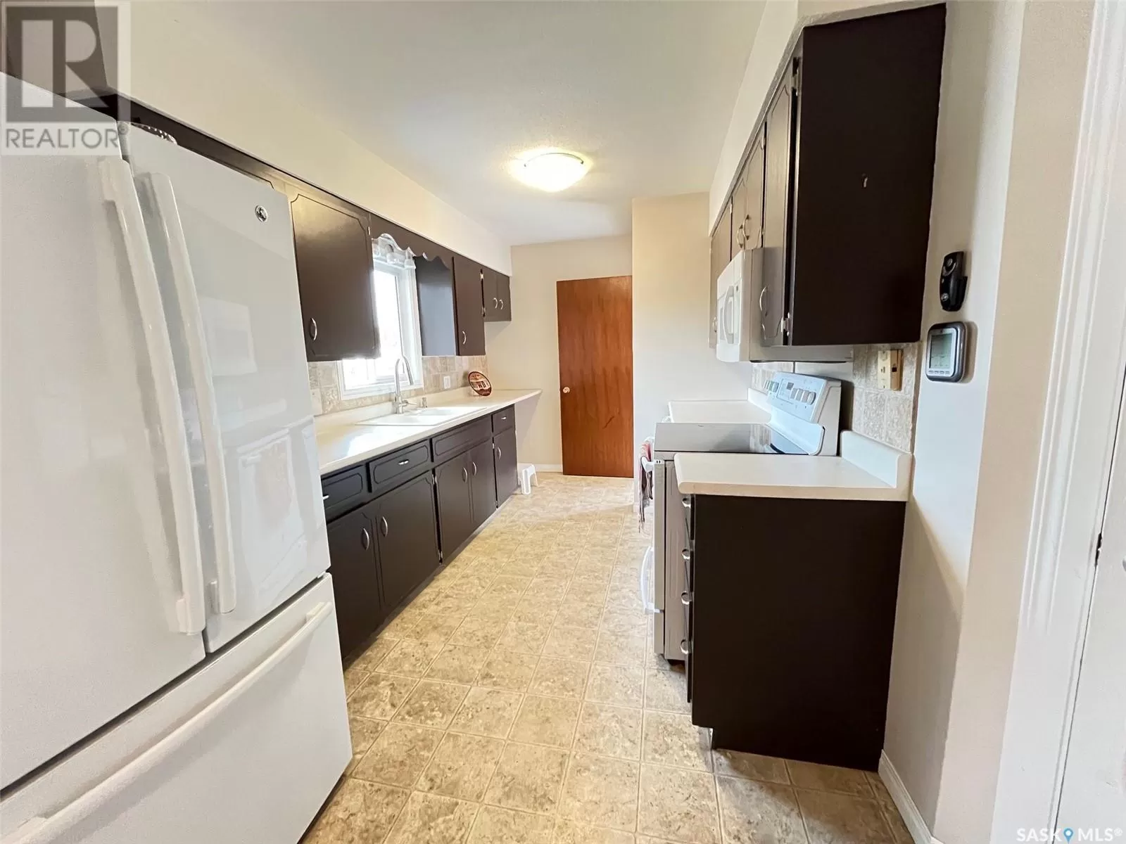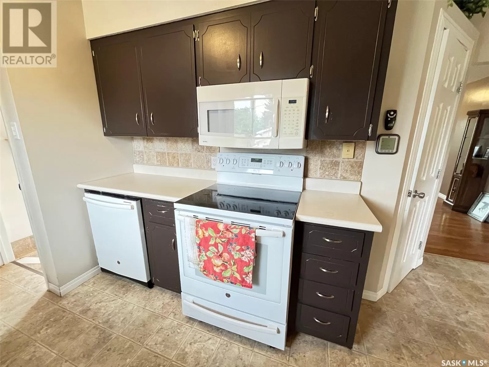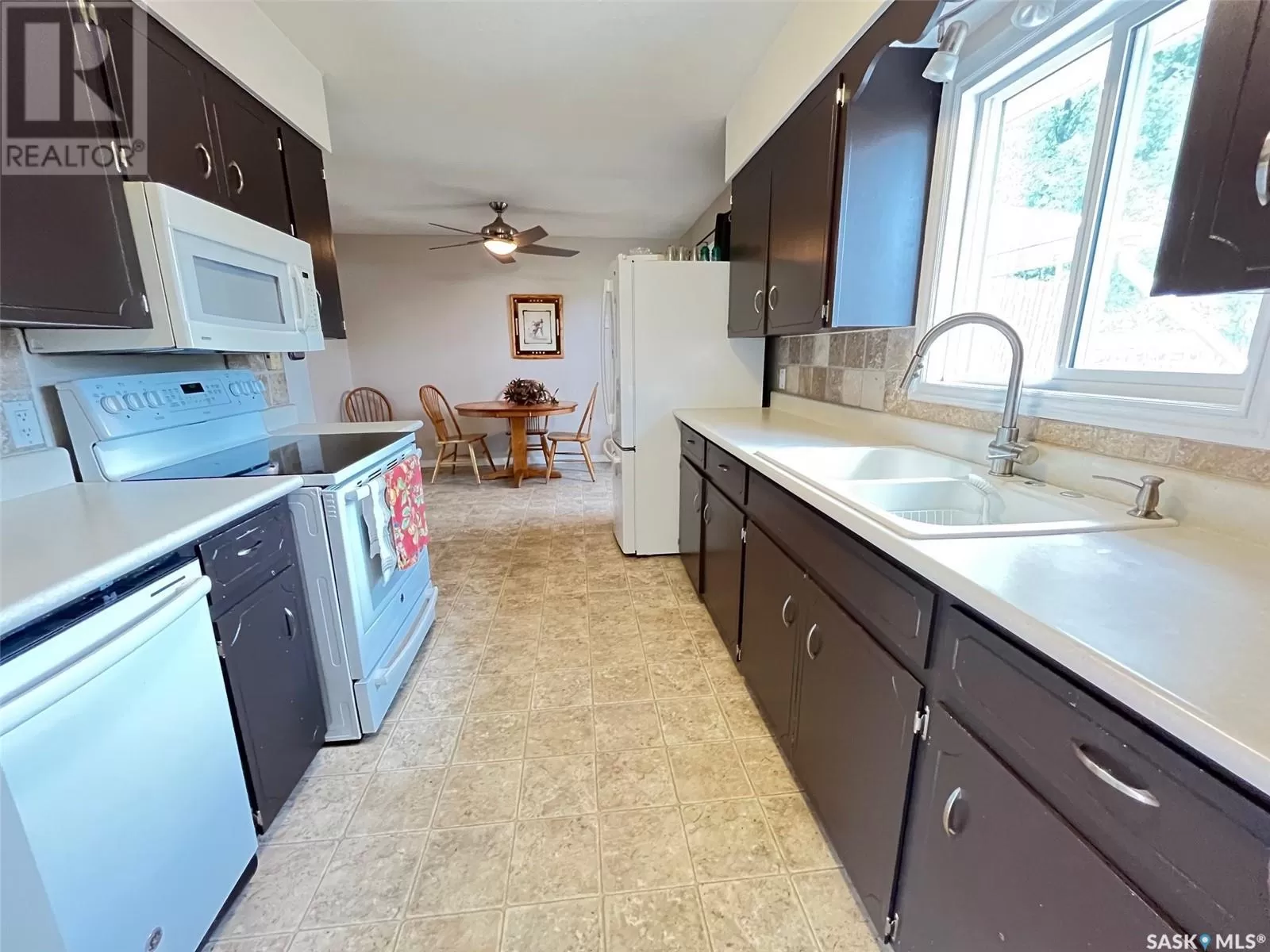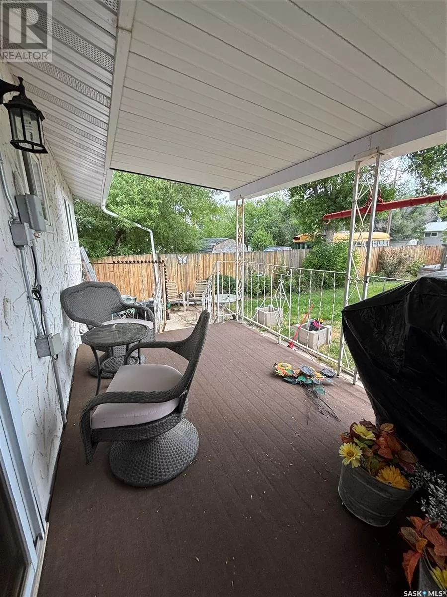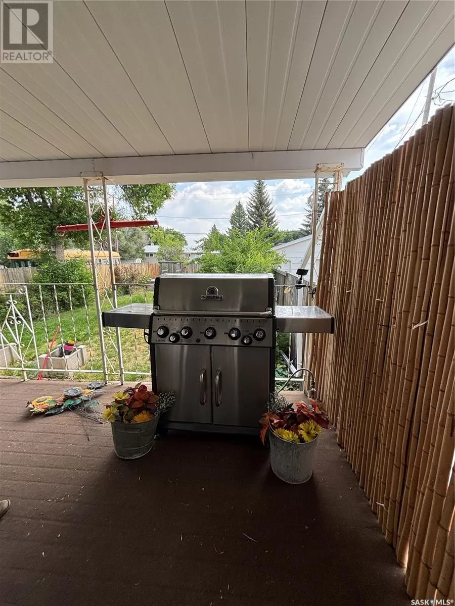 This property is in an ideal location. Situated on a private crescent as far from the train as possible in Maple Creek this home is just delightful. With a massive living room and dining room space there is plenty of room for entertaining. The galley style kitchen is very convenient for the cook and the gas BBQ is just outside on the covered deck. East facing, the backyard is fully fenced offering raised garden beds and plenty of fruit trees. Inside there are 3 bedrooms and 2 bathrooms on the main floor. You have to check on the 2 piece ensuite, it's really neat. Downstairs has another bedroom and bathroom with a large living room space and a laundry room (washer and dryer are not included). With town approval, this basement could easily be made into a suite with a separate side entrance. Plumbing and electrical have been upgraded in recent years. Call to book a tour. (id:27476)