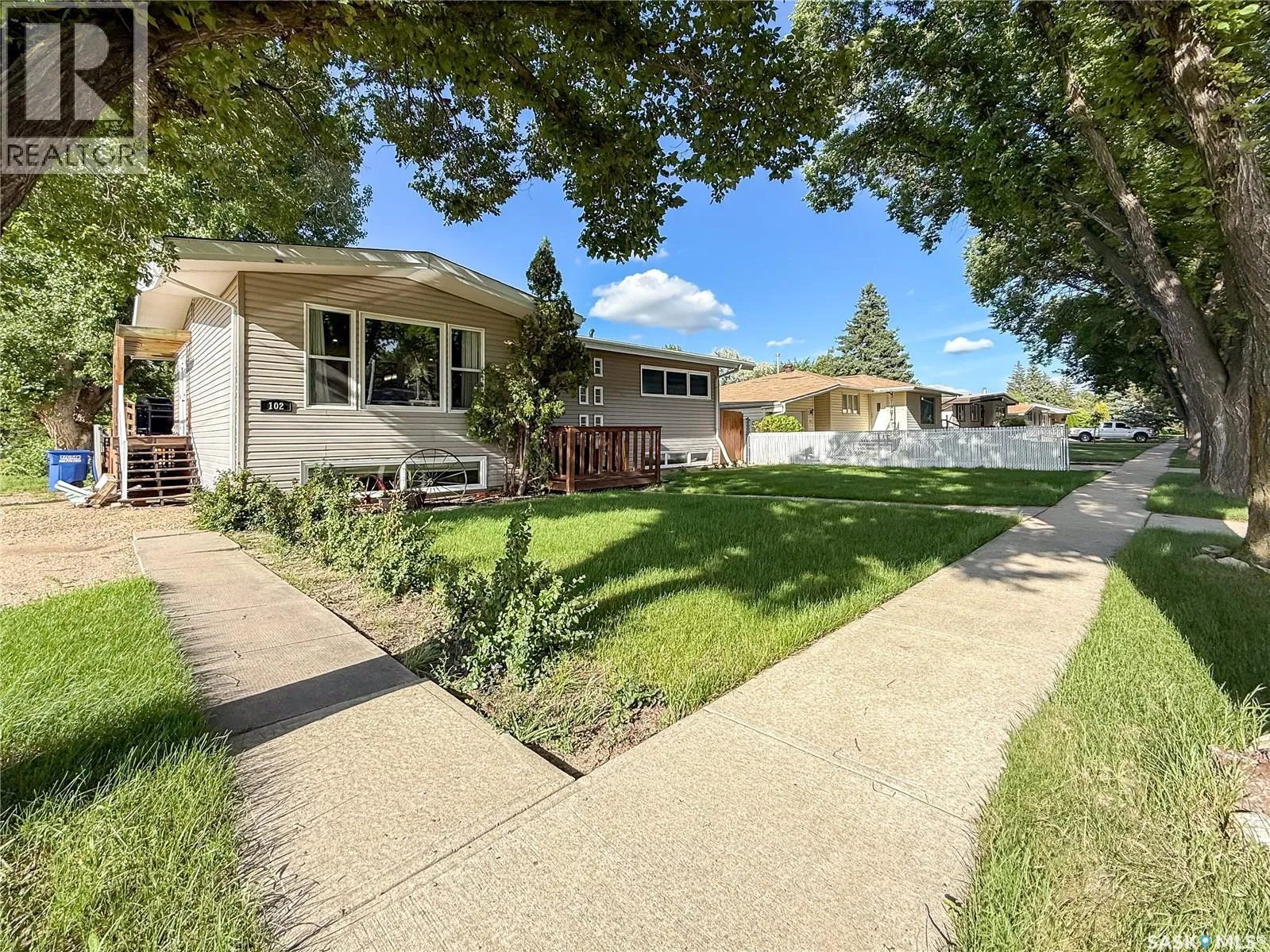Welcome to 102 Claustre Avenue â a beautifully updated 5-bedroom, 2-bathroom bungalow offering the perfect blend of comfort, functionality, and style. Built in 1960 and extensively modernized, this 1,088 sq. ft. home is truly move-in ready and ideal for families or anyone seeking a polished home with thoughtful touches throughout. Step into the bright, airy foyer with soaring ceilings and closet space â the perfect place to drop your shoes and coats before heading up to the main floor or down to the fully finished basement. The main living space is open concept and flooded with natural light. Vinyl plank flooring stretches throughout the main floor (with plush carpet in two bedrooms), creating a clean, modern feel. The heart of the home is the beautifully updated kitchen â a true showstopper. It boasts updated cabinetry, a stylish eat-up island, modern light fixtures, and a seamless flow to the adjoining dining area & living room. From the dining area, step out to a fully fenced backyard complete with a wraparound deck and garden shed â perfect for entertaining or relaxing in the sun. The main floor also includes 3 generous bedrooms and a 5-piece bathroom featuring a double vanity, bath/shower combo, and crisp modern finishes. Most windows on the main floor were replaced in 2025 (excluding one bedroom), enhancing energy efficiency and curb appeal. Downstairs, the lower level is fully developed and offers incredible versatility â two additional bedrooms, a bright and open rec room, and a stylish 3-piece bathroom that doubles as an ensuite, complete with a makeup nook. Whether youâre hosting guests or need extra space for a home office or teens, the basement checks every box. Notable updates include: fridge & stove (2018), dishwasher (2024), hood fan (2025), central air (2017), and stylish fixtures throughout. With curb appeal, interior updates, and a layout built for real living, 102 Claustre Avenue stands out as a top choice in Maple Creek (id:27476)