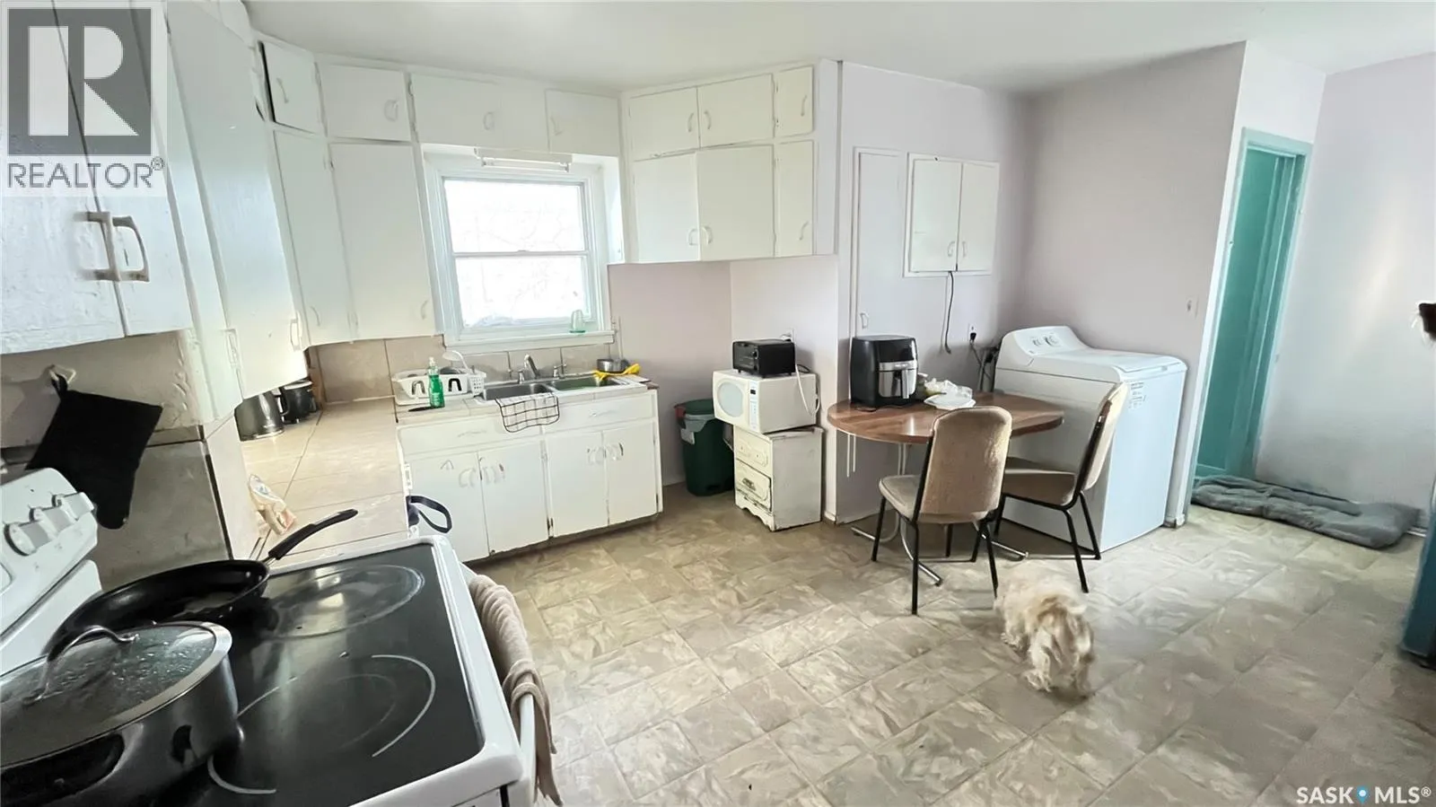 This delightful 4-bedroom, 1-bathroom home in Maple Creek's commercial district is sure to pleasantly surprise you. With updated floors and a spacious kitchen currently housing the laundry, you'll find plenty of potential to reimagine the spaceâwhether by creating a dedicated laundry room or expanding the bathroom to include laundry facilities. Easy access to plumbing from the approximate 6.5 foot crawl space another bathroom could be added as well. The generous yard features two garages that, with some TLC, could become great assets. Zoned commercial yet grandfathered as a residential non-conforming property, this home offers unique flexibility and is perfectly situated just steps from the grocery store and local shopping amenities. Stop paying rent and buy this affordable starter home or open your own business with 21 highway exposure. Opportunities are endless. Call for a tour. (id:27476)