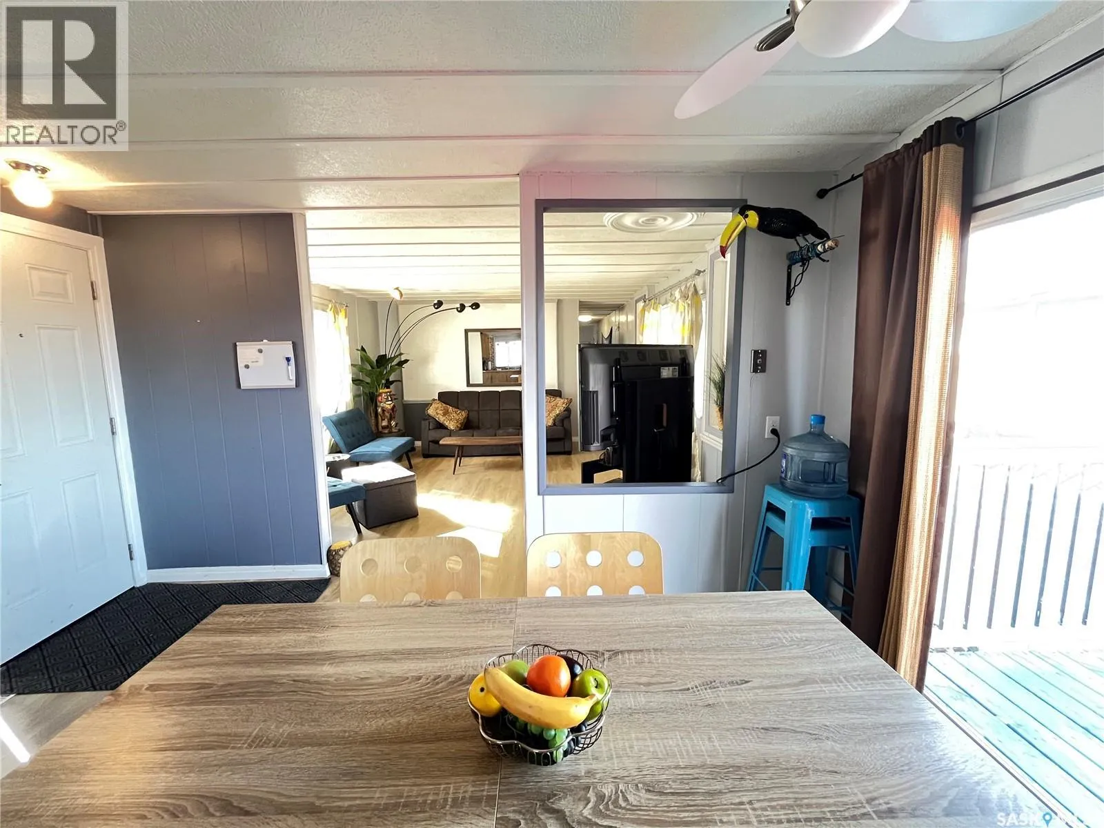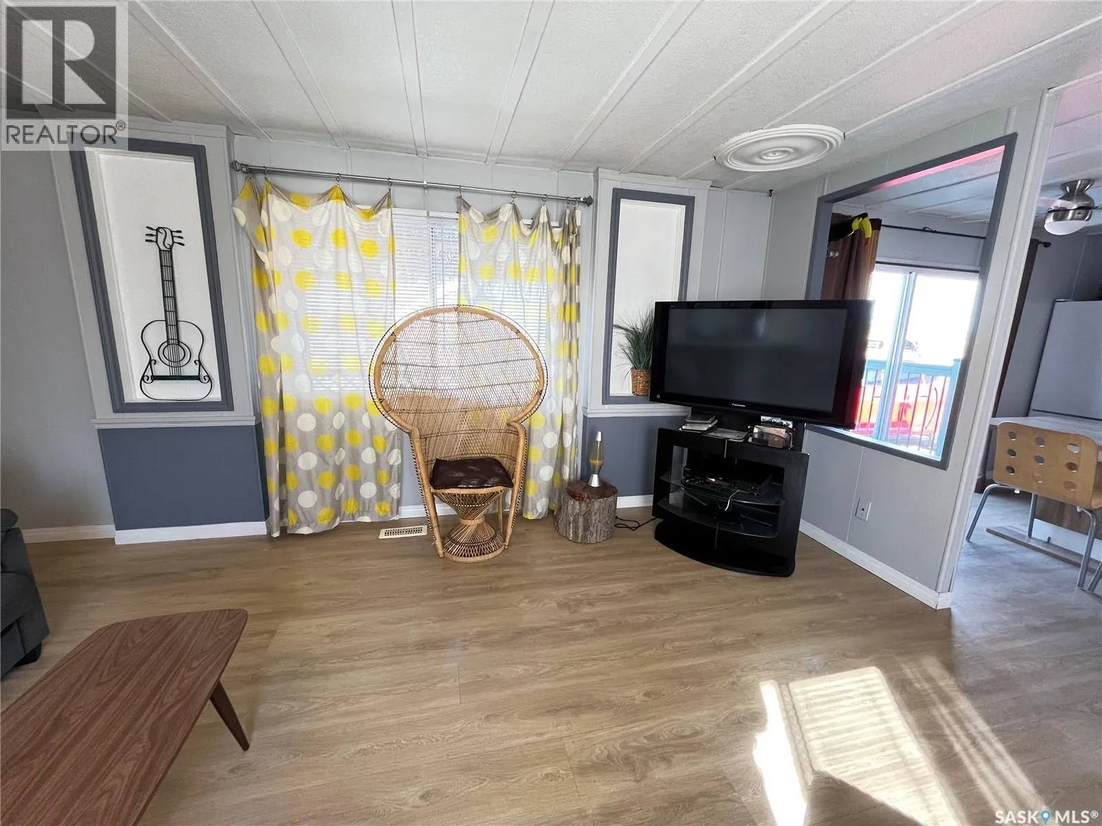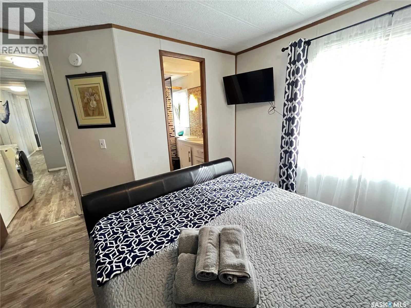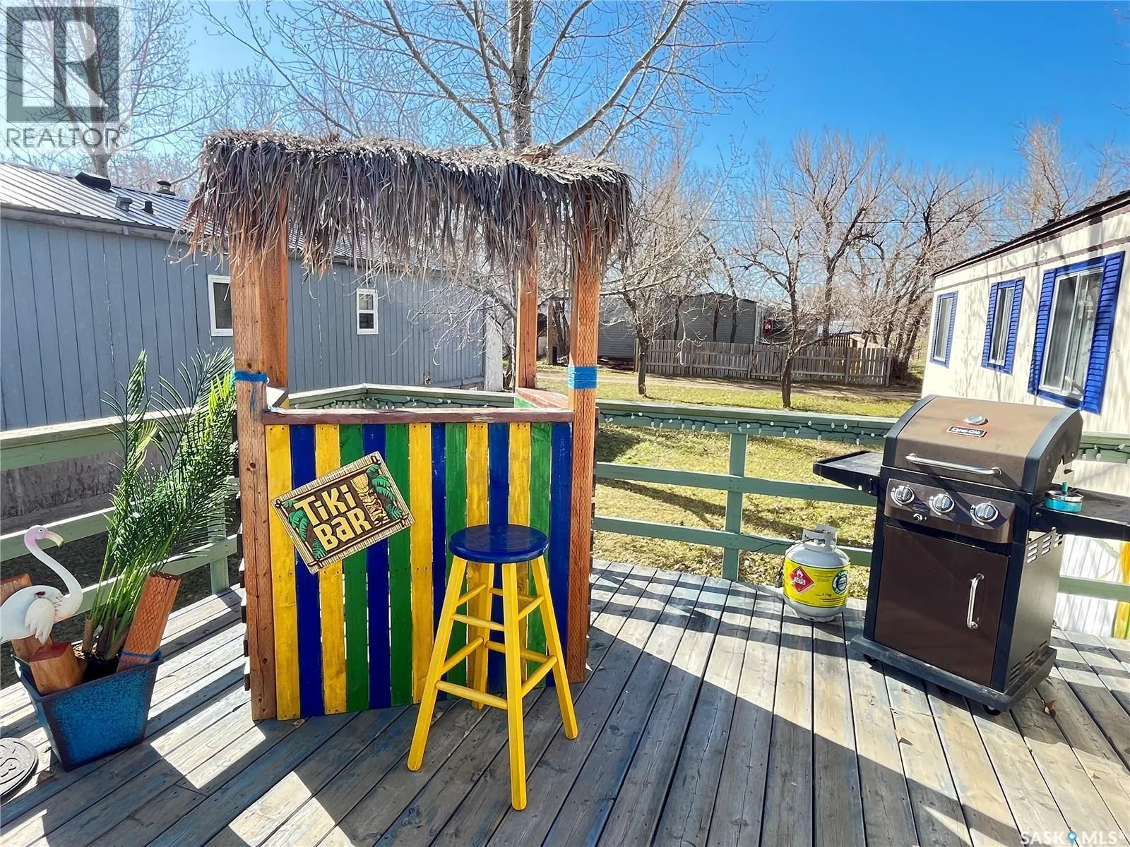 The Tiki Trailer and all its charm could be yours. Selling fully furnished and fully equipped making the move-in so simple. Located on the north side of the Cypress Mobile Home Park, just 1 km south of Maple Creek and a 5 minute walk from Grotto Gardens. Enjoy evenings on the massive east deck or put a chair out on the Juliette balcony just off the kitchen to gaze at the prairie sunsets. Just off the kitchen this balcony is large enough for the BBQ as well. 3 bedrooms and a large updated bathroom makes this home large enough for the whole family or you and guests. All beds are high quality memory foam; 2 are extra long twin mattresses and the primary bedroom currently houses a queen bed but there is plenty of room for a king size bed if that is your preference. One could use it as a revenue property as has been its previous use. Utilities average approximately $100 per month for each (gas and electric) and the monthly park fees are $430 covering water, sewer, garbage and recycling. Call for a tour. (id:27476)