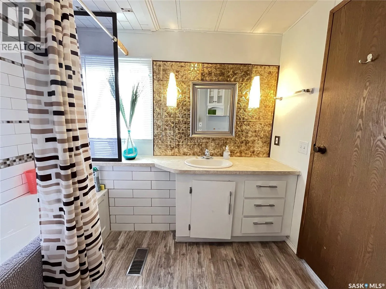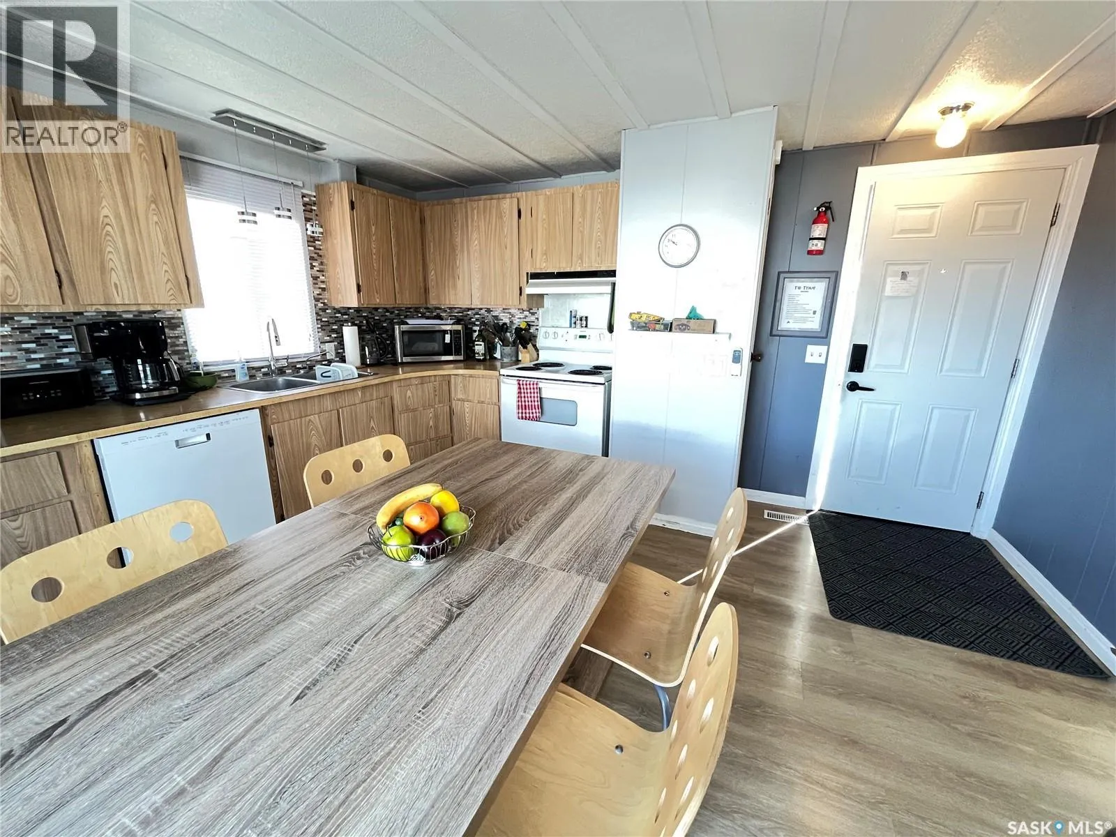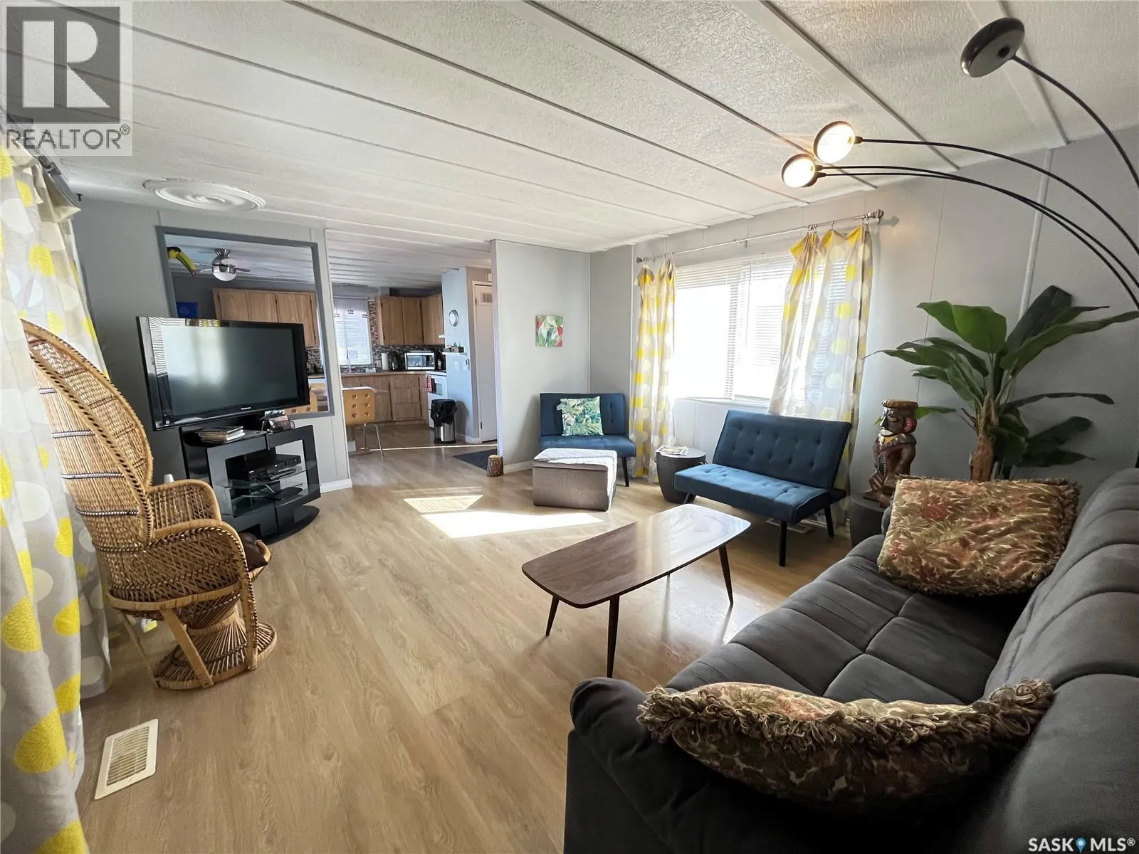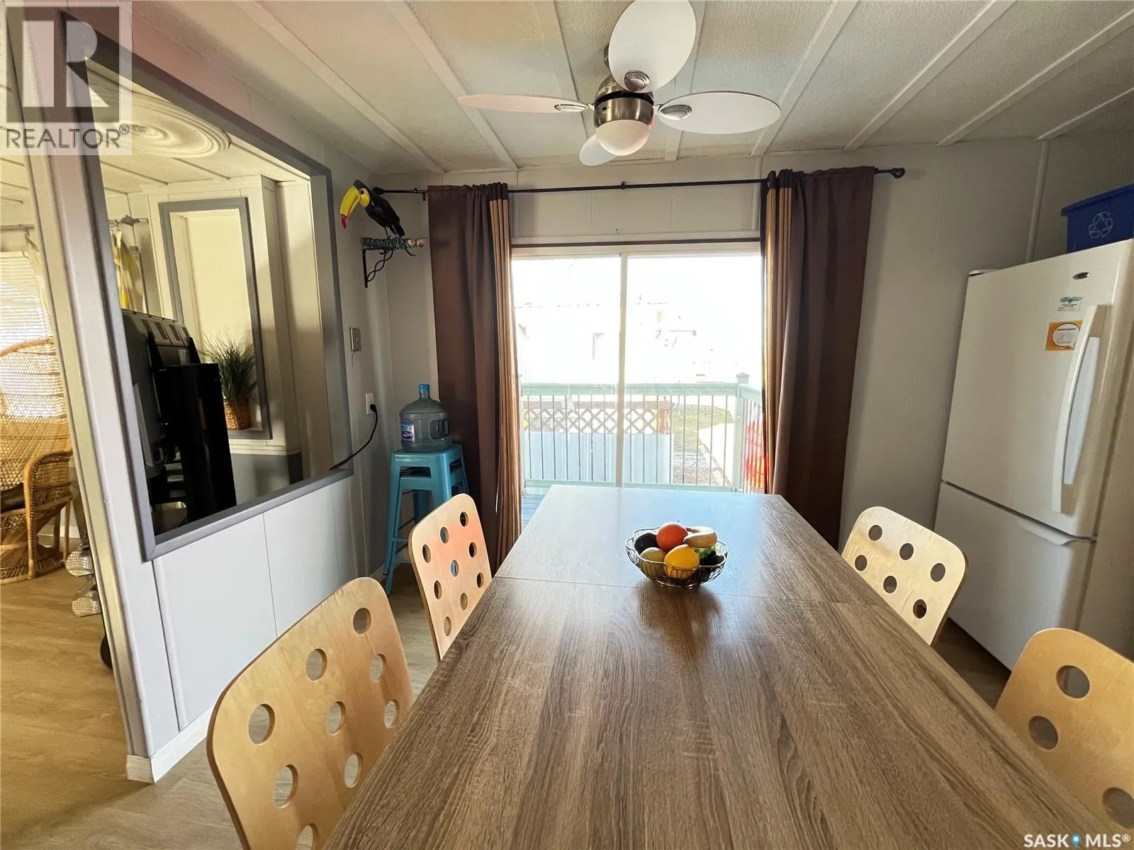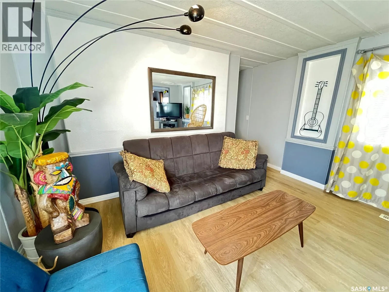 The Tiki Trailer and all its charm could be yours. Selling fully furnished and fully equipped making the move-in so simple. Located on the north side of the Cypress Mobile Home Park, just 1 km south of Maple Creek and a 5 minute walk from Grotto Gardens. Enjoy evenings on the massive east deck or put a chair out on the Juliette balcony just off the kitchen to gaze at the prairie sunsets. Just off the kitchen this balcony is large enough for the BBQ as well. 3 bedrooms and a large updated bathroom makes this home large enough for the whole family or you and guests. All beds are high quality memory foam; 2 are extra long twin mattresses and the primary bedroom currently houses a queen bed but there is plenty of room for a king size bed if that is your preference. One could use it as a revenue property as has been its previous use. Utilities average approximately $100 per month for each (gas and electric) and the monthly park fees are $430 covering water, sewer, garbage and recycling. Call for a tour. (id:27476)