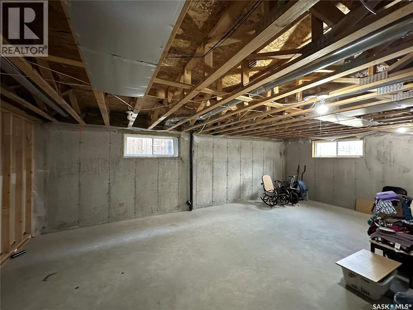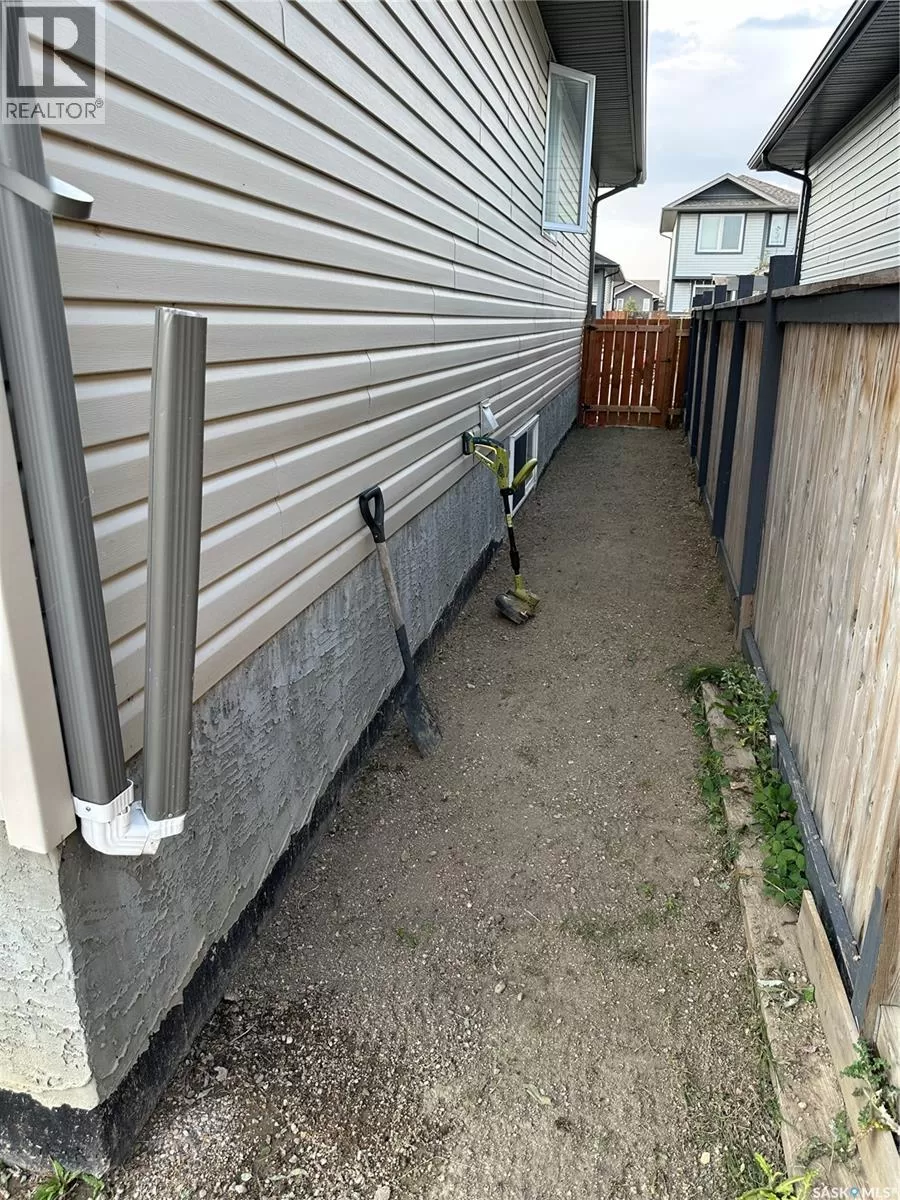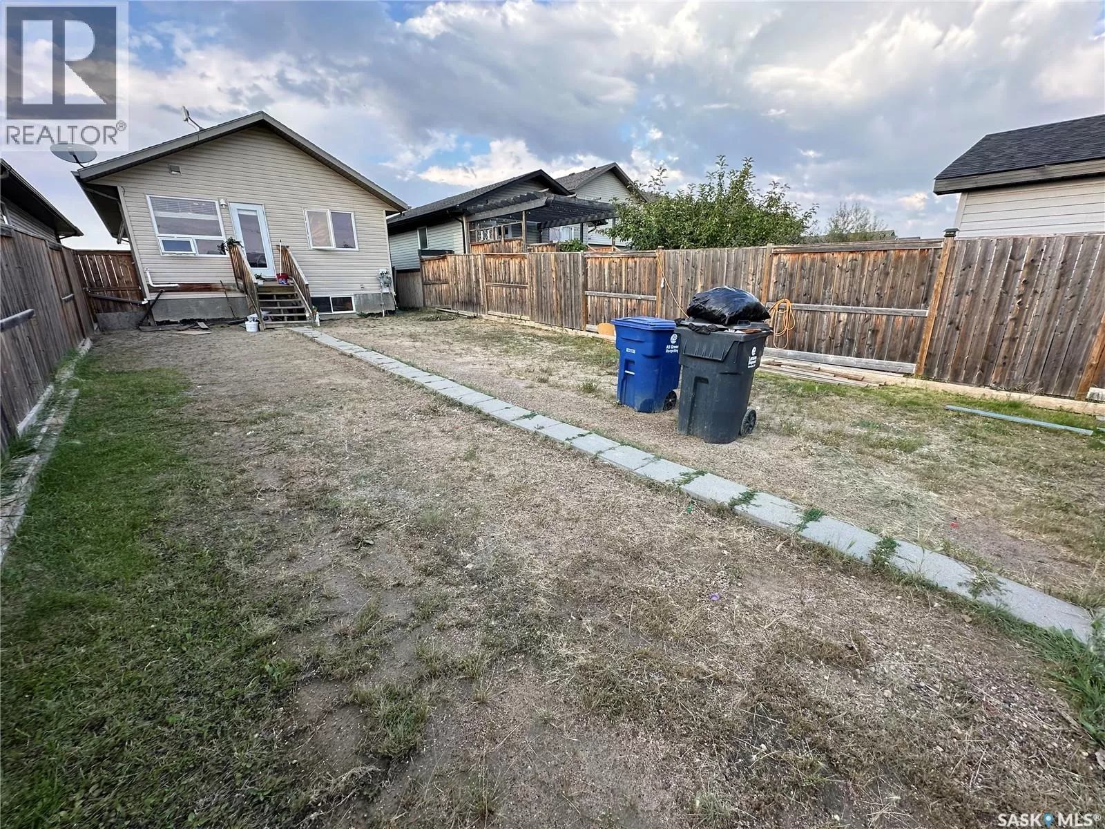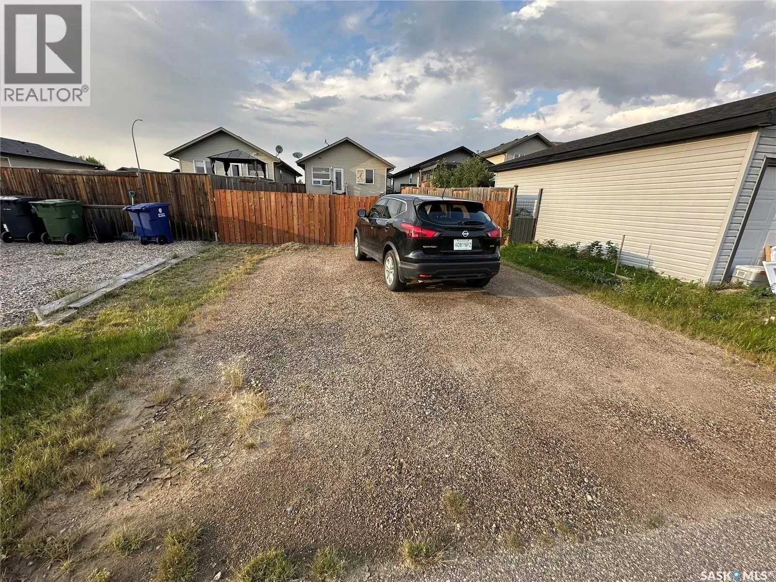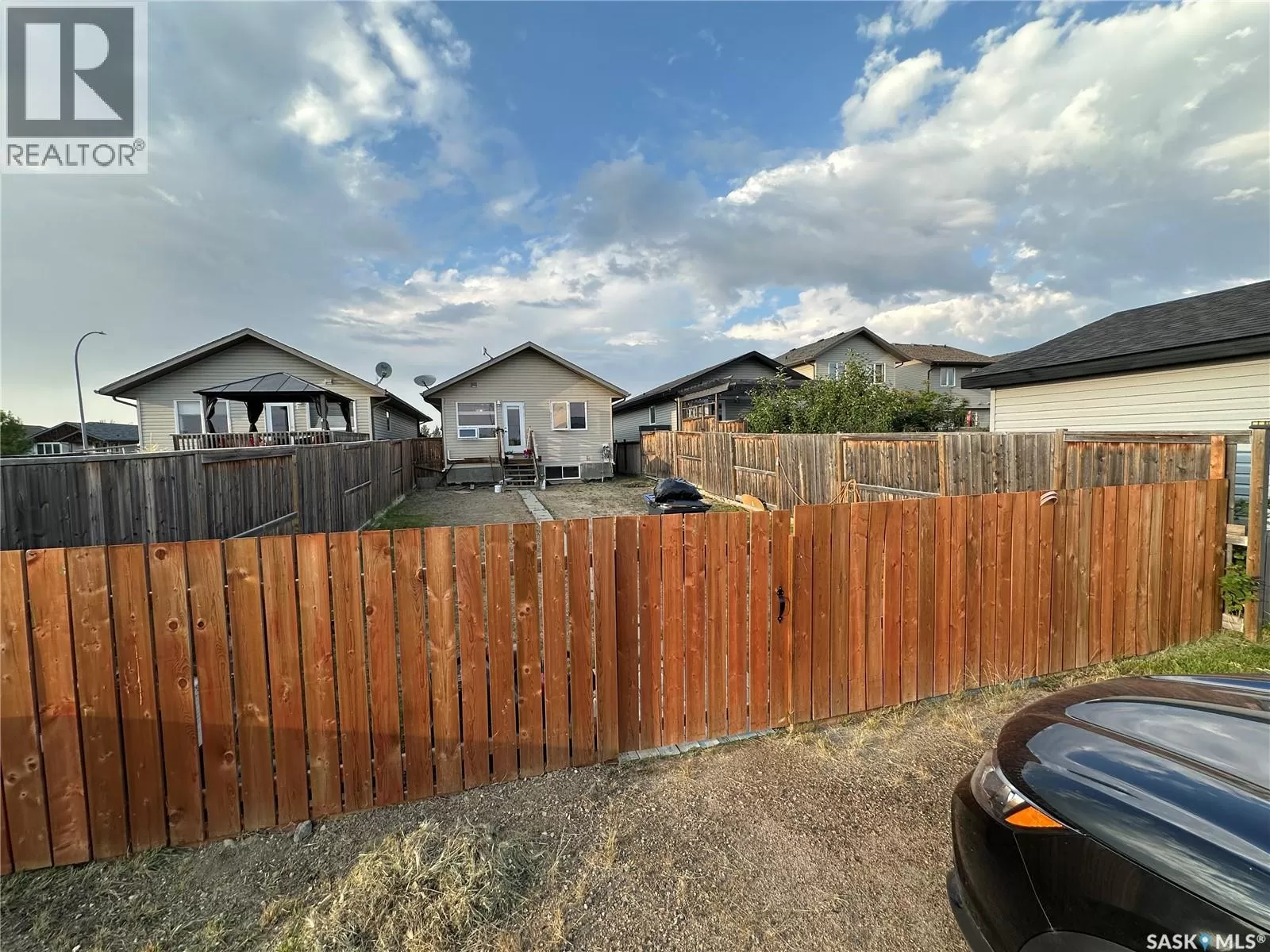 Affordable 2 bd 2 bath bungalow on the edge of Martensville. Close to the Offleash Dog Park and great walking trails. Only a few minutes to get into Saskatoon. Built by Northridge in 2010 with beautiful maple hardwood floors in the spacious living room and a tiled front entry. The master bedroom comes with an ensuite and overlooks the South facing back yard. The den by the living room could be a reading nook or office area. This home is on the edge of Martensville creating quick access out of town to commute to wherever you need to go. The unfinished basement contains the laundry area and windows are already in place for a basement development. The yard is fenced and the parking space in the back is 30x30 giving ample space for 2 vehicles and an option to build a garage. (id:27476)