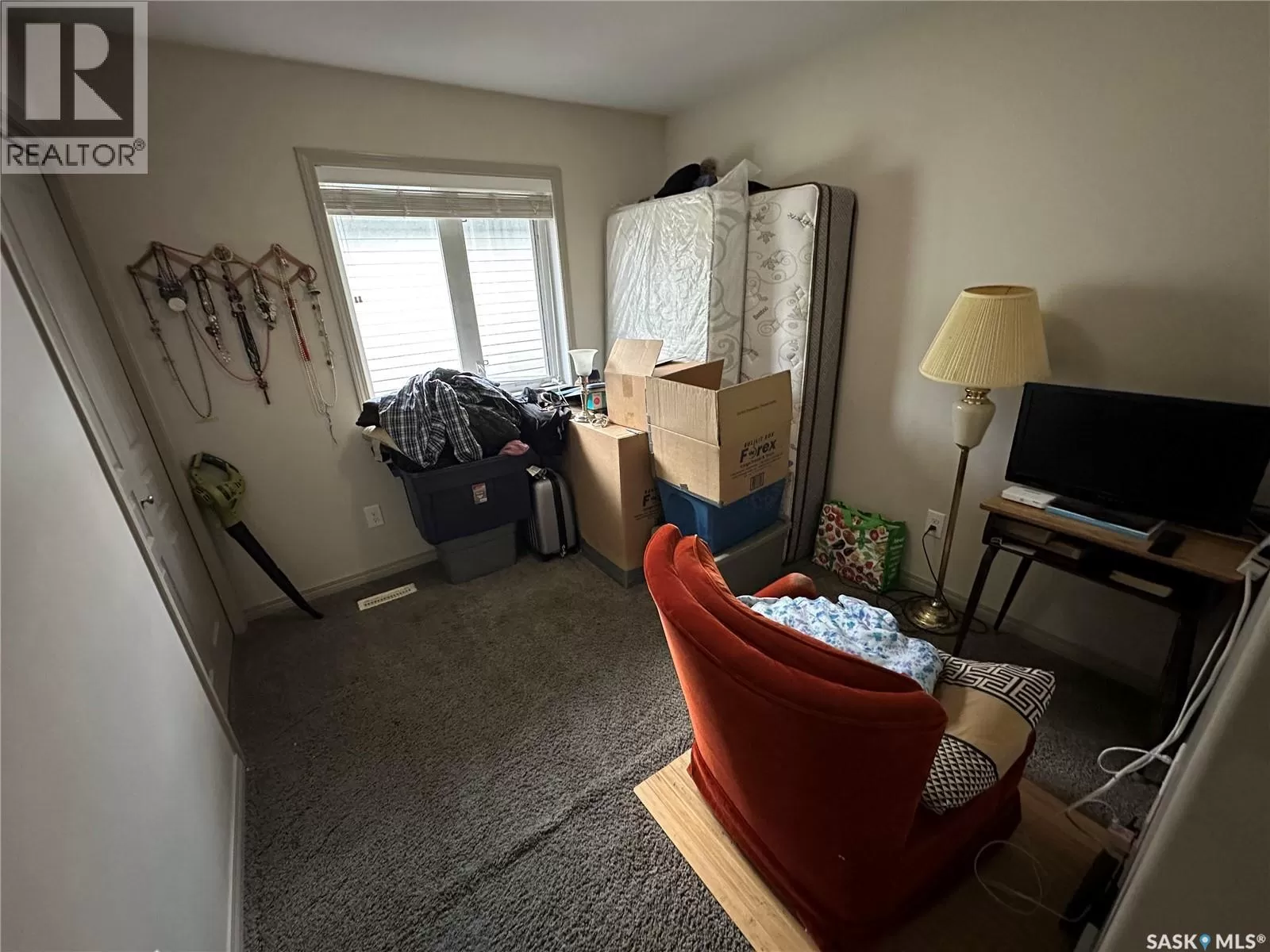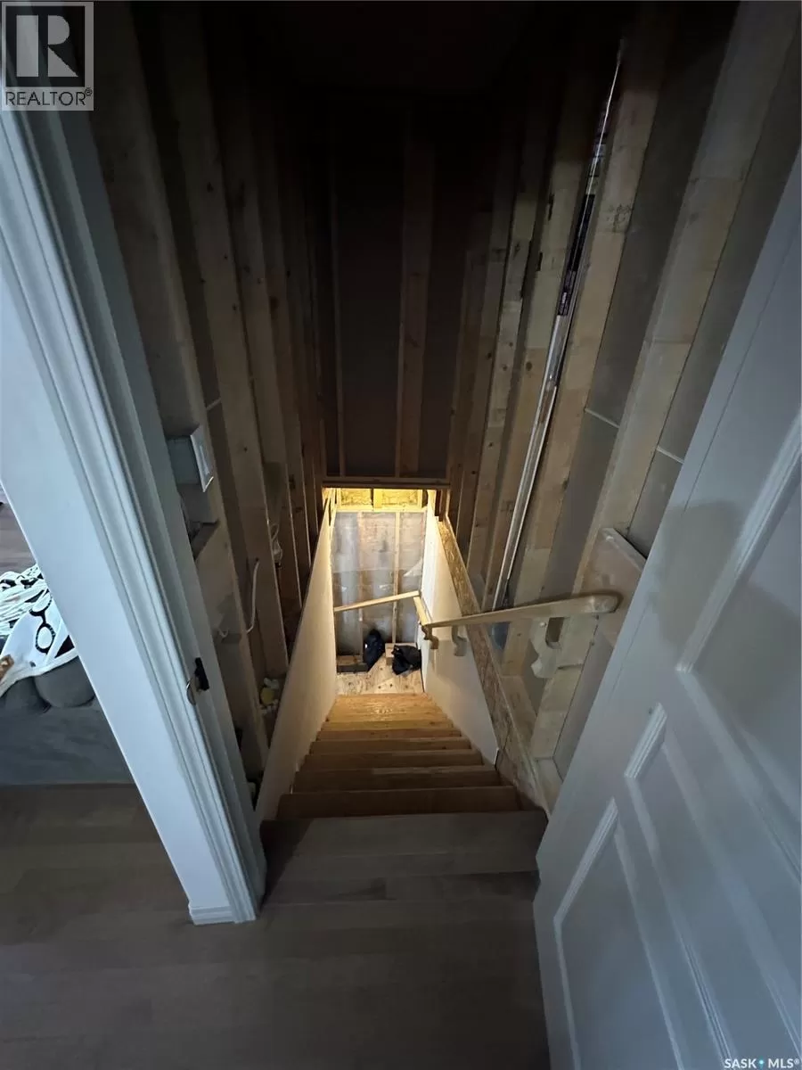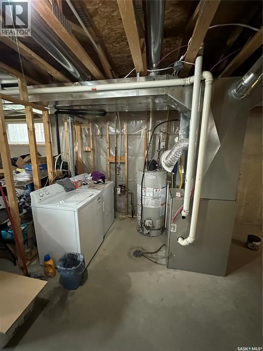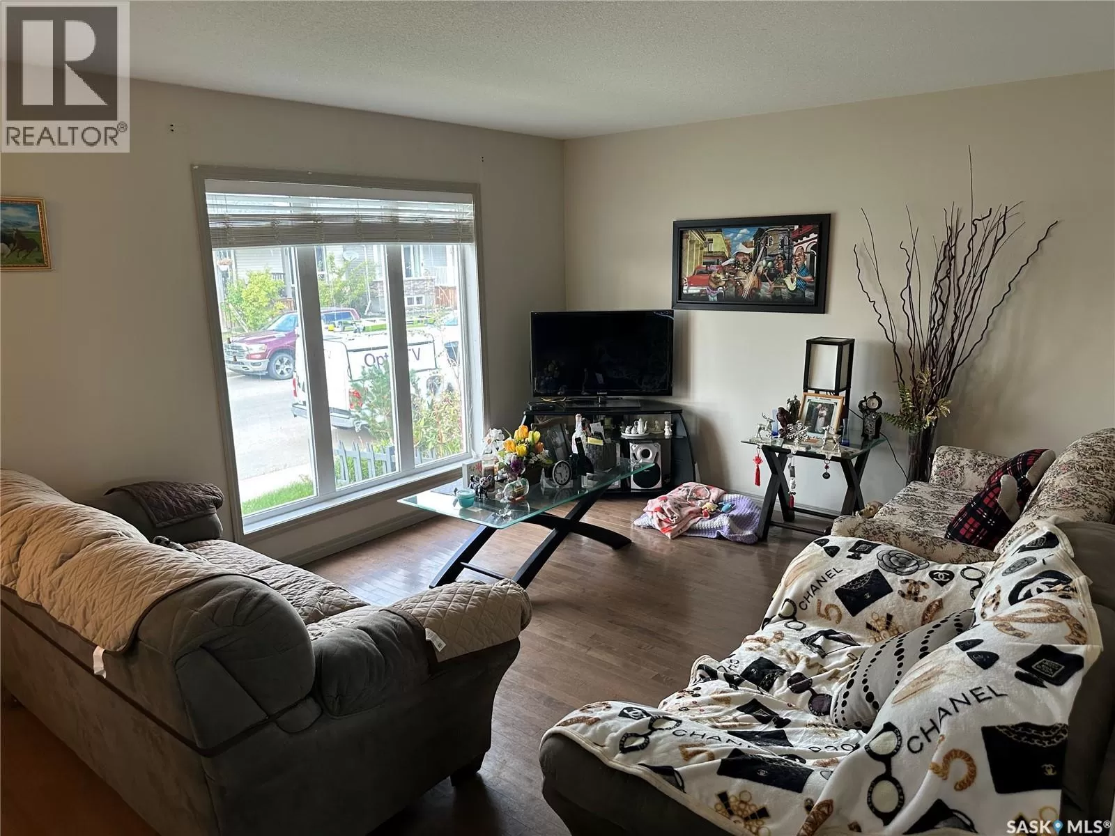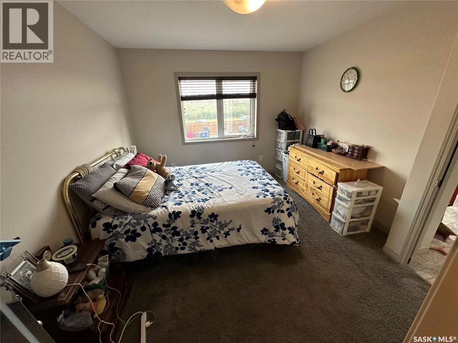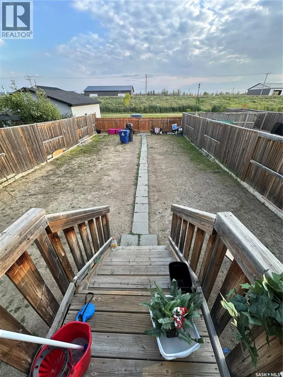 Affordable 2 bd 2 bath bungalow on the edge of Martensville. Close to the Offleash Dog Park and great walking trails. Only a few minutes to get into Saskatoon. Built by Northridge in 2010 with beautiful maple hardwood floors in the spacious living room and a tiled front entry. The master bedroom comes with an ensuite and overlooks the South facing back yard. The den by the living room could be a reading nook or office area. This home is on the edge of Martensville creating quick access out of town to commute to wherever you need to go. The unfinished basement contains the laundry area and windows are already in place for a basement development. The yard is fenced and the parking space in the back is 30x30 giving ample space for 2 vehicles and an option to build a garage. (id:27476)