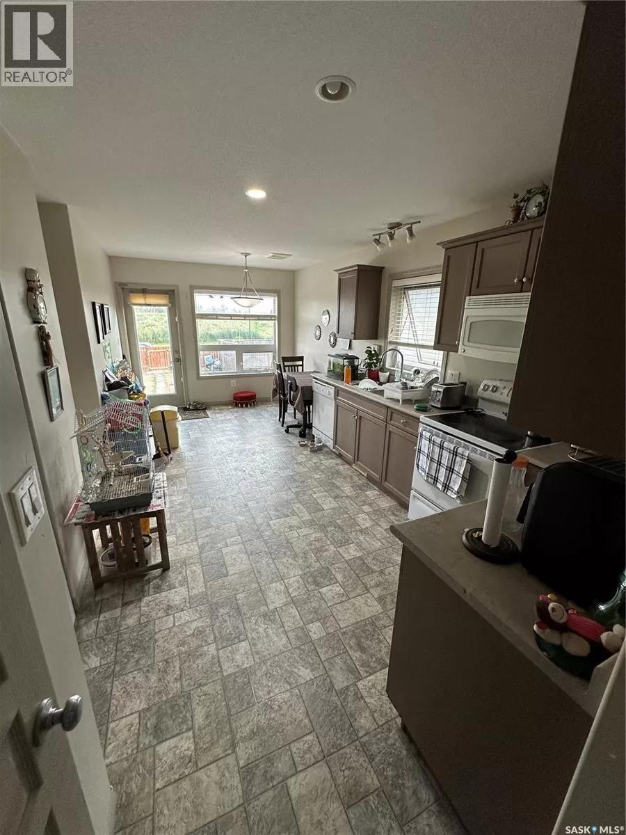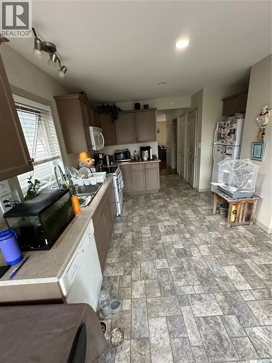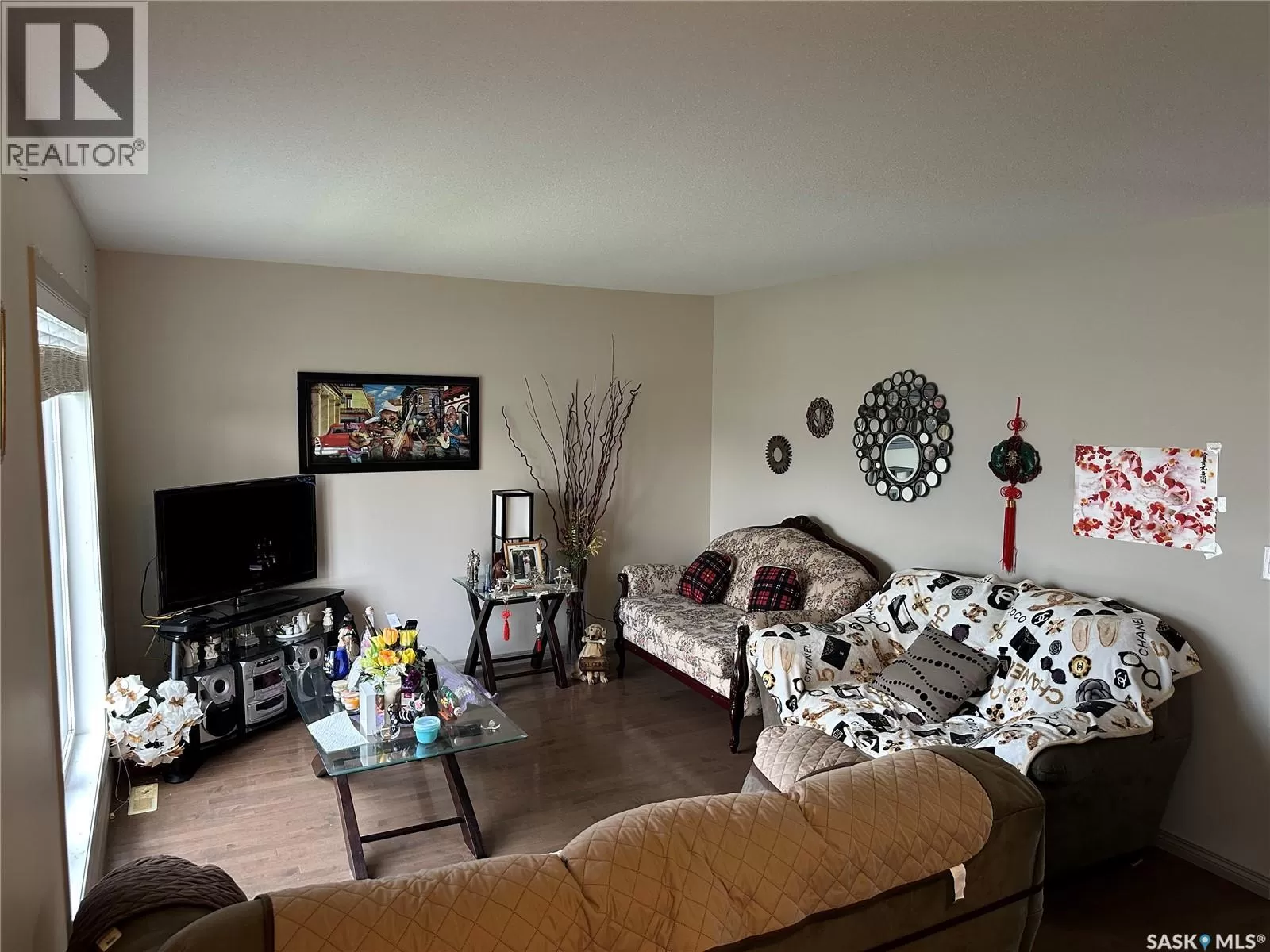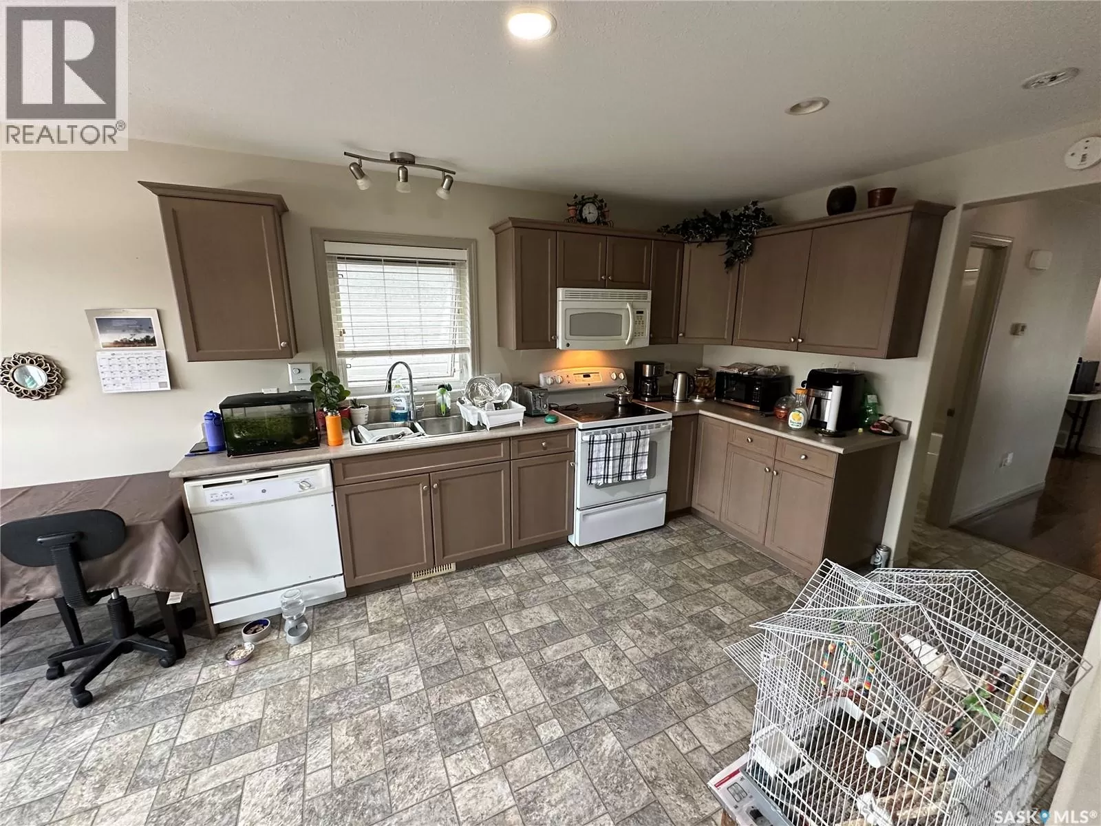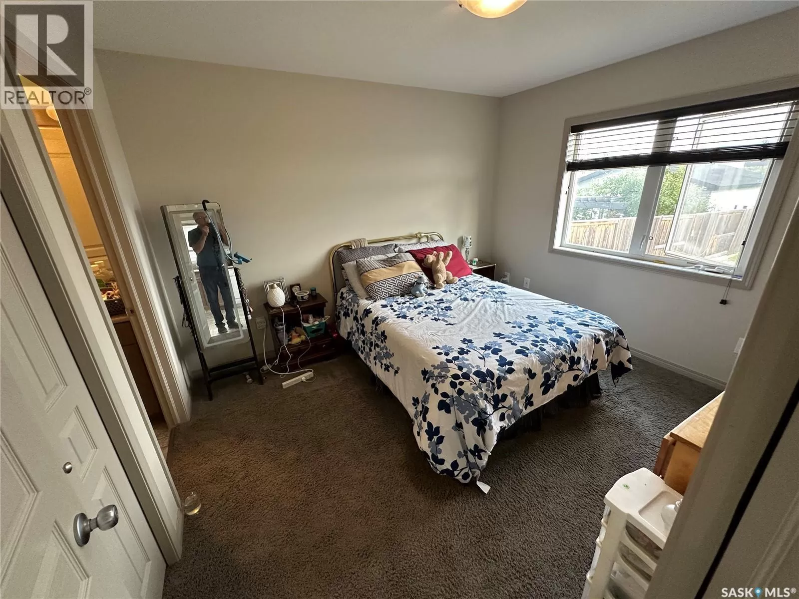 Affordable 2 bd 2 bath bungalow on the edge of Martensville. Close to the Offleash Dog Park and great walking trails. Only a few minutes to get into Saskatoon. Built by Northridge in 2010 with beautiful maple hardwood floors in the spacious living room and a tiled front entry. The master bedroom comes with an ensuite and overlooks the South facing back yard. The den by the living room could be a reading nook or office area. This home is on the edge of Martensville creating quick access out of town to commute to wherever you need to go. The unfinished basement contains the laundry area and windows are already in place for a basement development. The yard is fenced and the parking space in the back is 30x30 giving ample space for 2 vehicles and an option to build a garage. (id:27476)