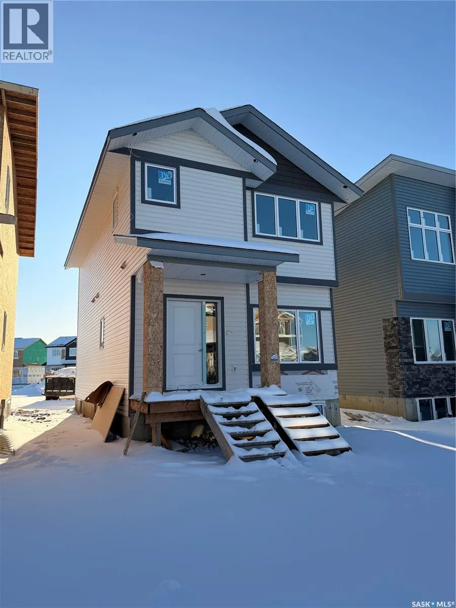 Brand New Two-Storey in Lake Vista, Martensville! Welcome to modern living in Lake Vista—Martensville’s newest and most sought-after community! This brand new 1,451 sq. ft. two-storey home blends fresh, airy design with smart functionality, all just steps from scenic ponds, parks, and schools. Enjoy peace of mind with a New Home Warranty and move-in readiness in just 8-9 weeks! Features You’ll Love: Bright, open-concept main floor with modern finishes Large kitchen with quartz countertops, tiled backsplash, stainless steel appliance package, oversized island & walk-in pantry 3 bedrooms upstairs, including a spacious primary suite with 3-piece ensuite and walk-in closet Convenient 2nd-floor laundry (washer & dryer included!) Stylish tile flooring in all bathrooms 3 bathrooms total throughout the home Exterior & Lot Perks: Striking curb appeal with upgraded siding, trim, and stonework Double concrete parking pad at the back with paved alley access Mudroom entry from the backyard, prepped for a future double detached garage Corner lot for extra space and light This home offers unmatched value in a prime location—perfect for families or first-time buyers looking for quality, convenience, and style. Don’t miss your chance to own in Lake Vista—contact your REALTOR® today to book a private tour! (id:27476)