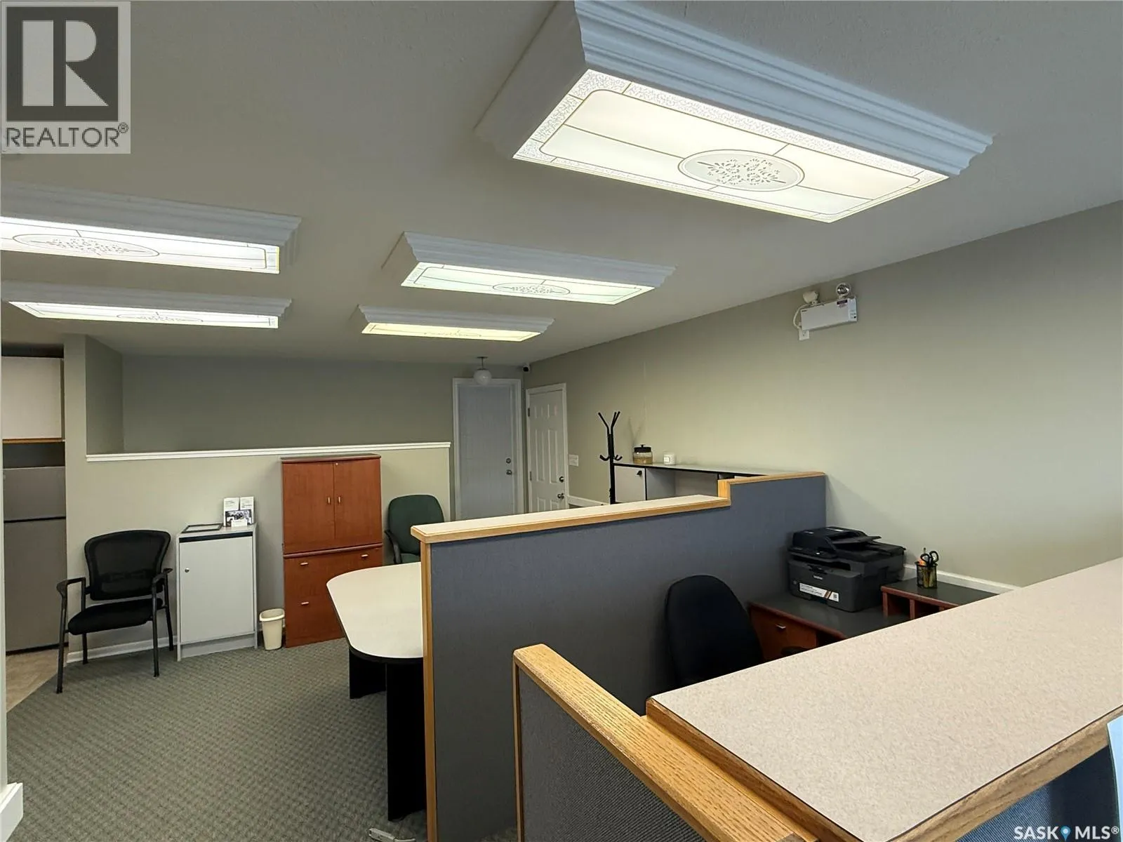 Available for immediate rent, this prime office space total 1358 sqft on 2 levels. Features 3 pvt offices spaces, 4 cubical office spaces, a reception area, kitchenette, 2 baths, comes with 7 parking stalls, and is suitable for a variety of office uses, making it a perfect opportunity for entry-level to mid-sized office complex. Previously operated as Accounting firm for many yrs. Exterior signage space on front pedestal available. Lease is gross lease inclusive of all operating costs and utilities includes snow removal + GST. Located in Martensville North commercial district. (id:27476)