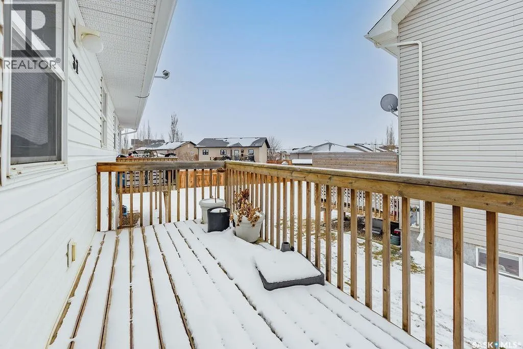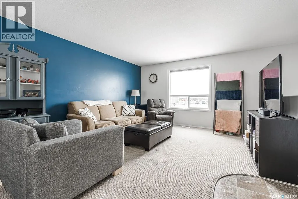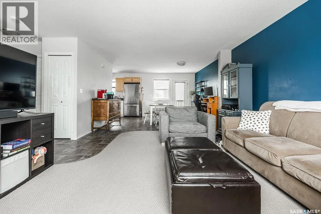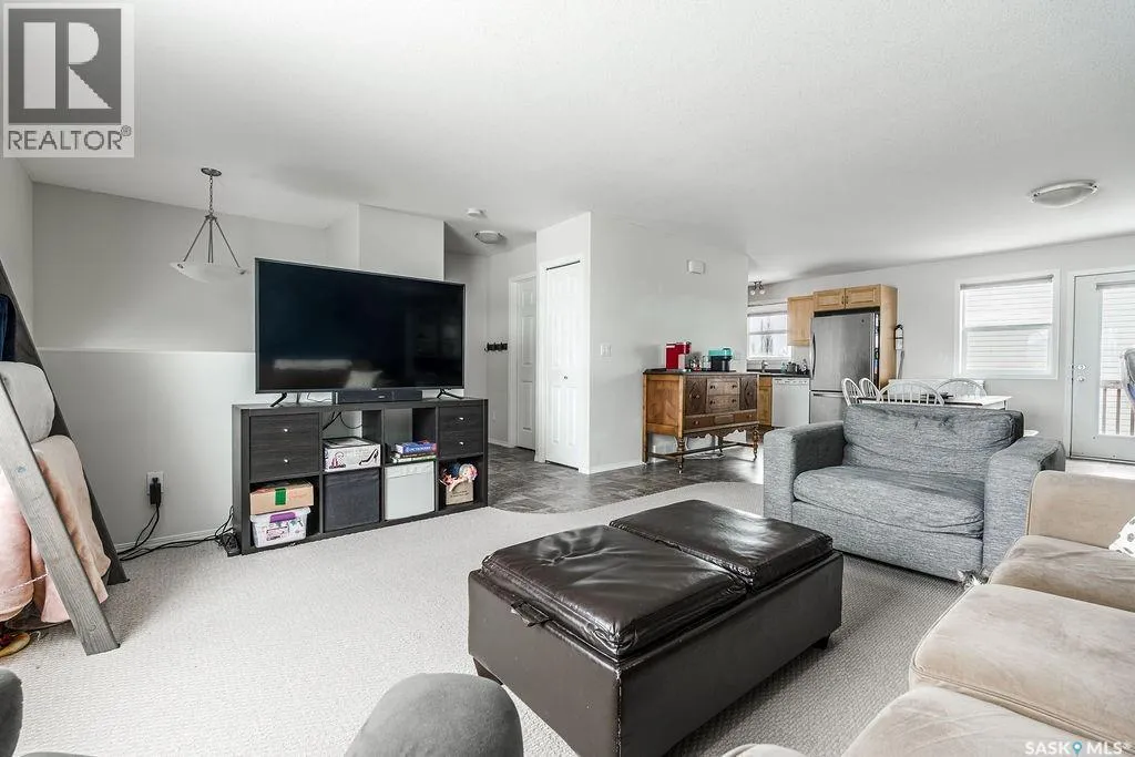 Welcome to this affordable bi-level townhome, located in the thriving community of Martensville. The upper level features a bright and inviting living room highlighted by a large window that fills the space with natural light. The dining area offers direct access to the deck, perfect for easy indoor-outdoor living, and flows into the kitchen complete with lots of cabinetry and modern appliances. A convenient 2-piece bathroom completes the main floor. Downstairs, youâll find three spacious bedrooms, and a full 4-piece bathroom. The laundry room is conveniently located in the mechanical room. Additional storage is tucked neatly under the stairs, maximizing functionality. Enjoy the convenience of 2 outdoor parking stalls located right out front of the unit, along with added privacy tucked away in the back corner of the development. This home is within the bus boundaries for Venture Heights elementary school, and Ecole Holy Mary elementary school. An excellent opportunity for first-time buyers, downsizers, or investors alike. (id:27476)