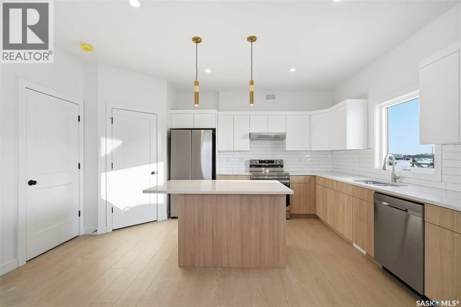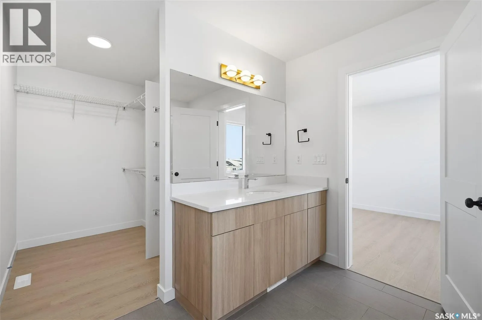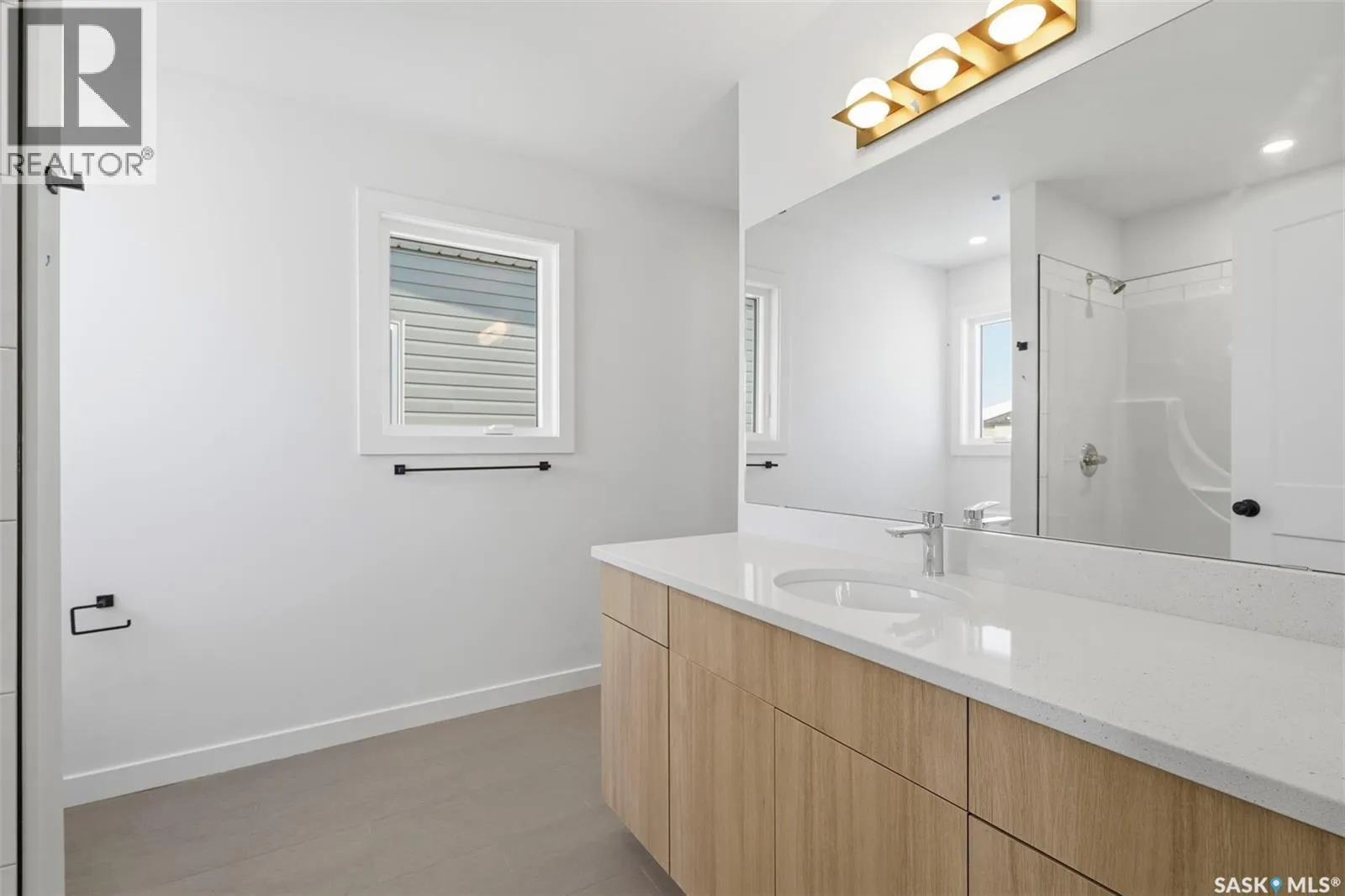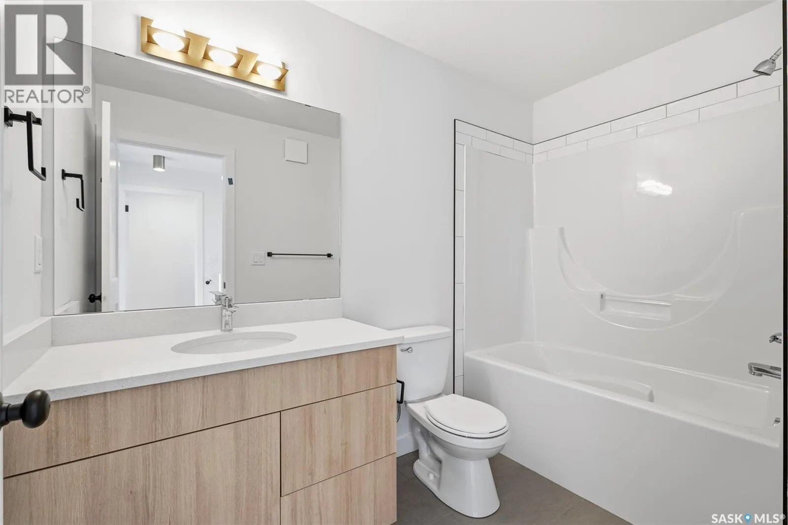 Brand New Two-Storey in Lake Vista, Martensville! Ready for possession in May. Welcome to modern living in Lake Vista—Martensville’s newest and most sought-after community! This brand new 1,451 sq. ft. two-storey home blends fresh, airy design with smart functionality, all just steps from scenic ponds, parks, and schools. Enjoy peace of mind with a New Home Warranty and move-in readiness in just 7-8 weeks! Features You’ll Love: Bright, open-concept main floor with modern finishes Large kitchen with quartz countertops, tiled backsplash, stainless steel appliance package, oversized island & walk-in pantry 3 bedrooms upstairs, including a spacious primary suite with 3-piece ensuite and walk-in closet Convenient 2nd-floor laundry (washer & dryer included!) Stylish tile flooring in all bathrooms 3 bathrooms total throughout the home Exterior & Lot Perks: Striking curb appeal with upgraded siding, trim, and stonework Double concrete parking pad at the back with paved alley access Mudroom entry from the backyard, prepped for a future double detached garage Corner lot for extra space and light This home offers unmatched value in a prime location—perfect for families or first-time buyers looking for quality, convenience, and style. Don’t miss your chance to own in Lake Vista—contact your REALTOR® today to book a private tour! (id:27476)