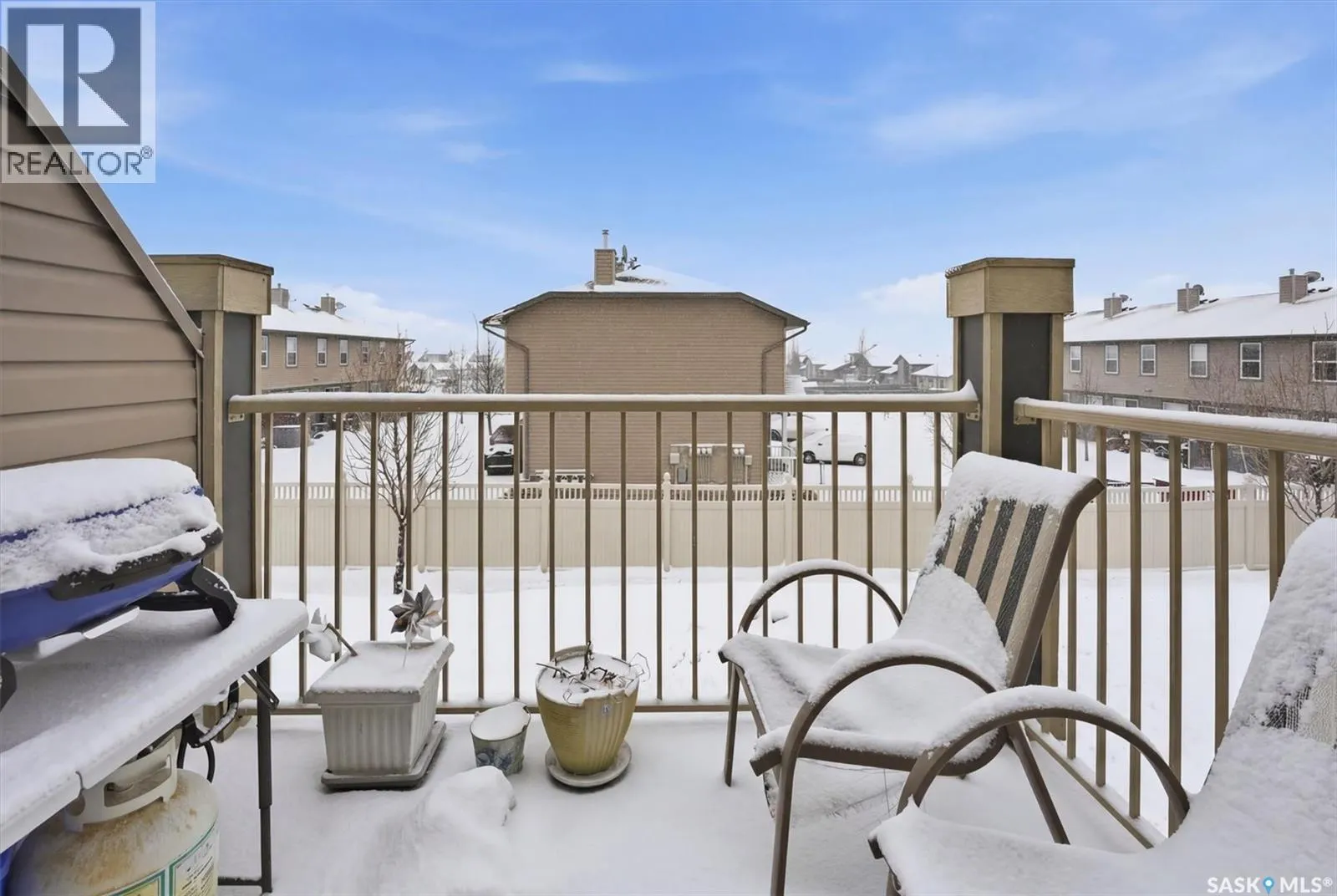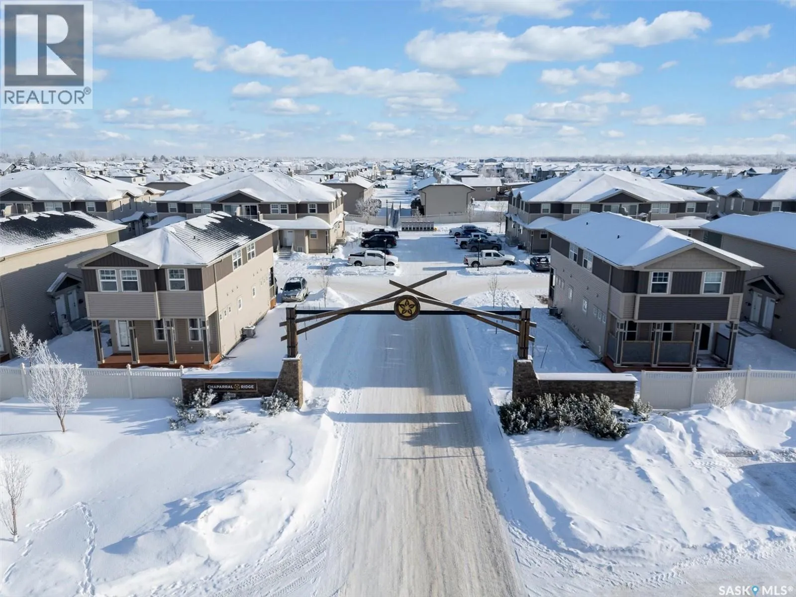 Welcome to Chaparral Ridge! This 2-bedroom, 1-bathroom townhouse is located in Chaparral Ridge on the Southern edge of Martensville. This home offers a perfect blend of style and comfort. The spacious kitchen is a chef's dream, featuring a corner pantry, ample cupboards, and sleek stainless steel appliances. Start your day with a coffee and sunrise on your East-facing balcony. Inside, you'll find two generously sized bedrooms and a modern bathroom. Convenience is key with two electrified parking stalls, central air, additional storage space, and low condo fees. Don't miss this opportunity to make this your new home! (id:27476)