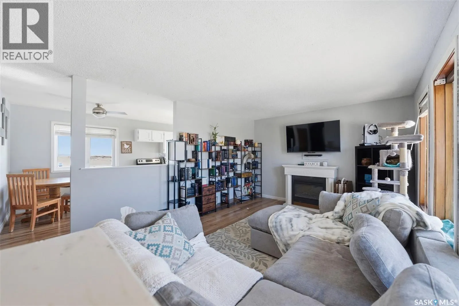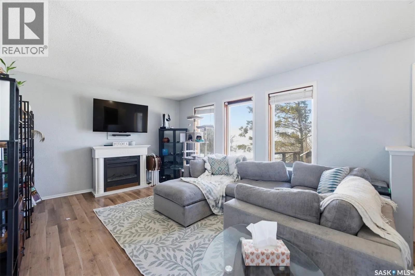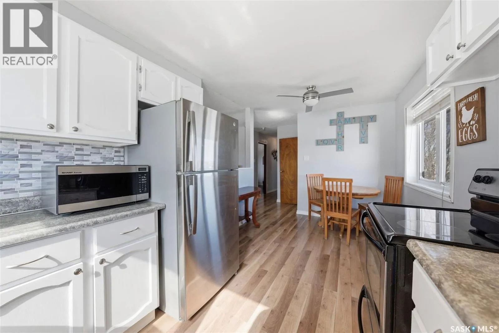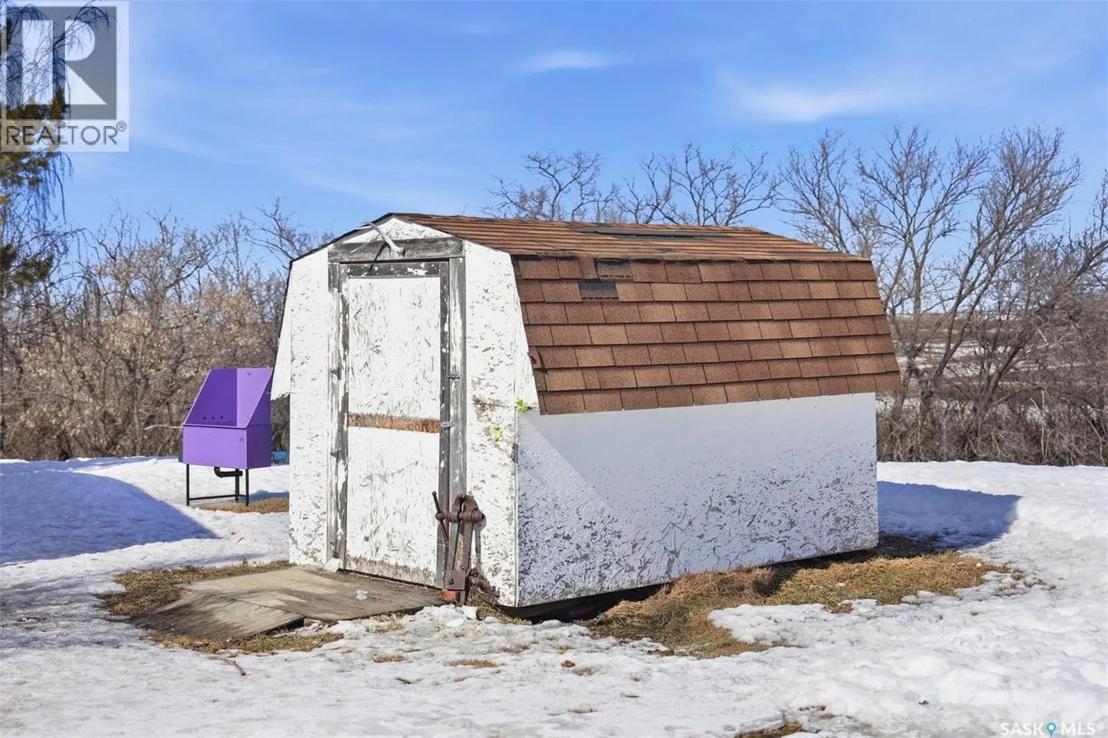 Dreaming of country life? This nearly 20 acre parcel is located on Hwy 15 with pavement right to your driveway! The curved drive leads up to the "main" yard. As you step in the back door of the home, you can access either main floor or basement. Kitchen/dining area is bright, functional and open to living room. Tons of natural light make this space warm and inviting. Primary bedroom has walk in closet/dressing area. Second bedroom is currently main floor laundry, which could be moved downstairs. Full bath completes the main floor. Basement is finished with a huge family room, another bedroom, storage and utility. West facing deck overlooks the Arm River. Water for the cistern is sourced from the community well. the 31x26 pole shed is uninsulated with gravel floor, offering storage for equipment, toys or vehicles. The chicken coop and shed near the house are included. Call your agent today to arrange your private viewing. (id:27476)