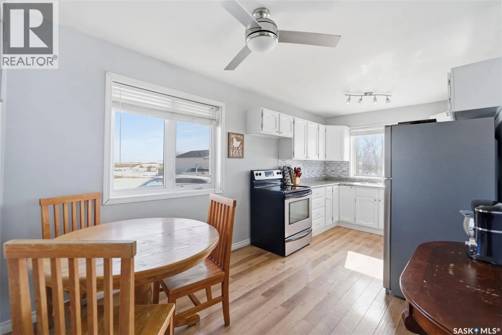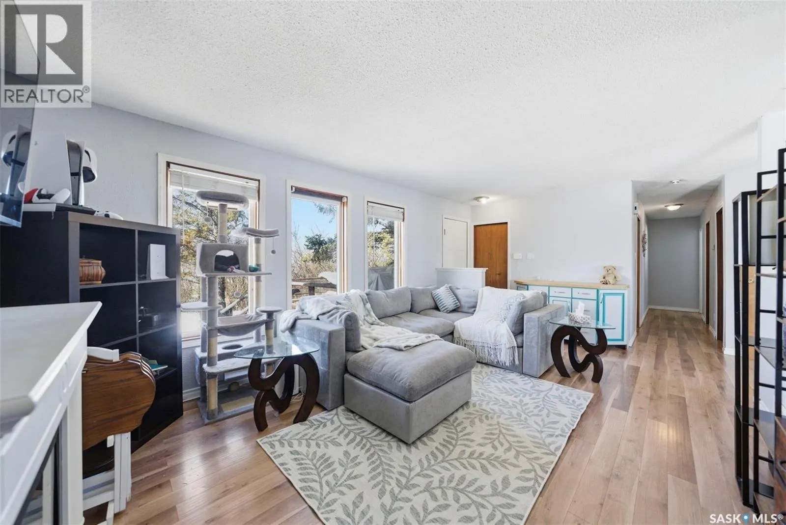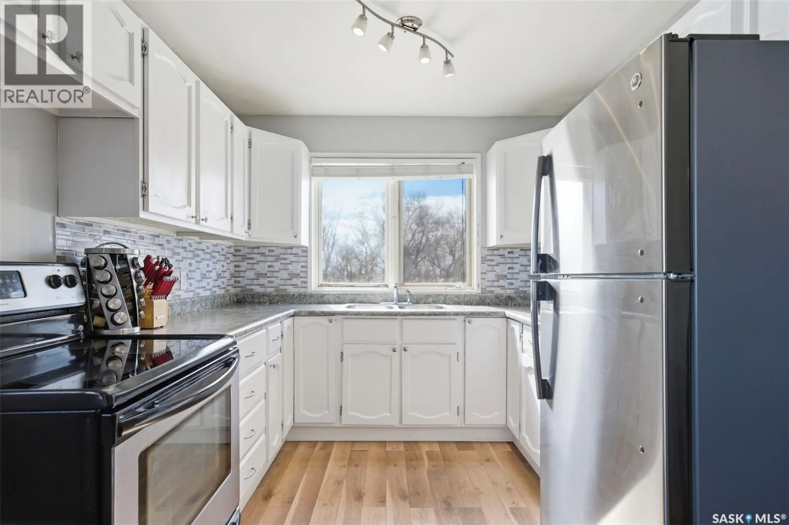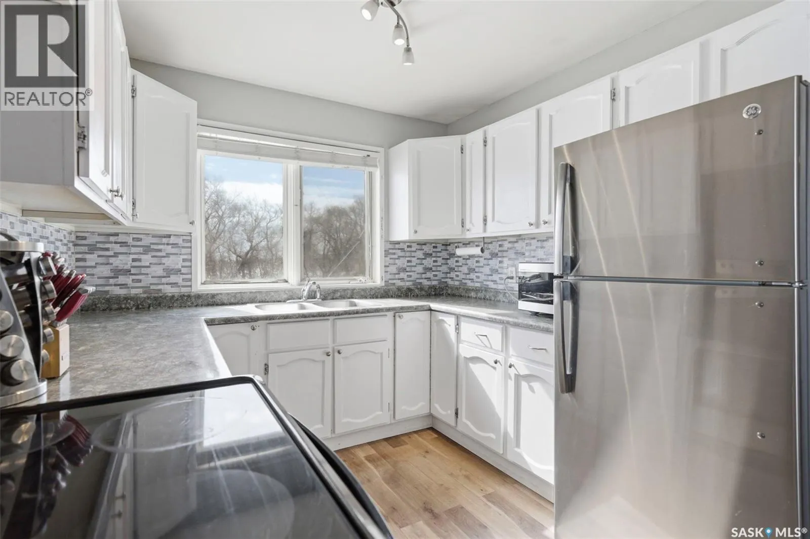 Dreaming of country life? This nearly 20 acre parcel is located on Hwy 15 with pavement right to your driveway! The curved drive leads up to the "main" yard. As you step in the back door of the home, you can access either main floor or basement. Kitchen/dining area is bright, functional and open to living room. Tons of natural light make this space warm and inviting. Primary bedroom has walk in closet/dressing area. Second bedroom is currently main floor laundry, which could be moved downstairs. Full bath completes the main floor. Basement is finished with a huge family room, another bedroom, storage and utility. West facing deck overlooks the Arm River. Water for the cistern is sourced from the community well. the 31x26 pole shed is uninsulated with gravel floor, offering storage for equipment, toys or vehicles. The chicken coop and shed near the house are included. Call your agent today to arrange your private viewing. (id:27476)