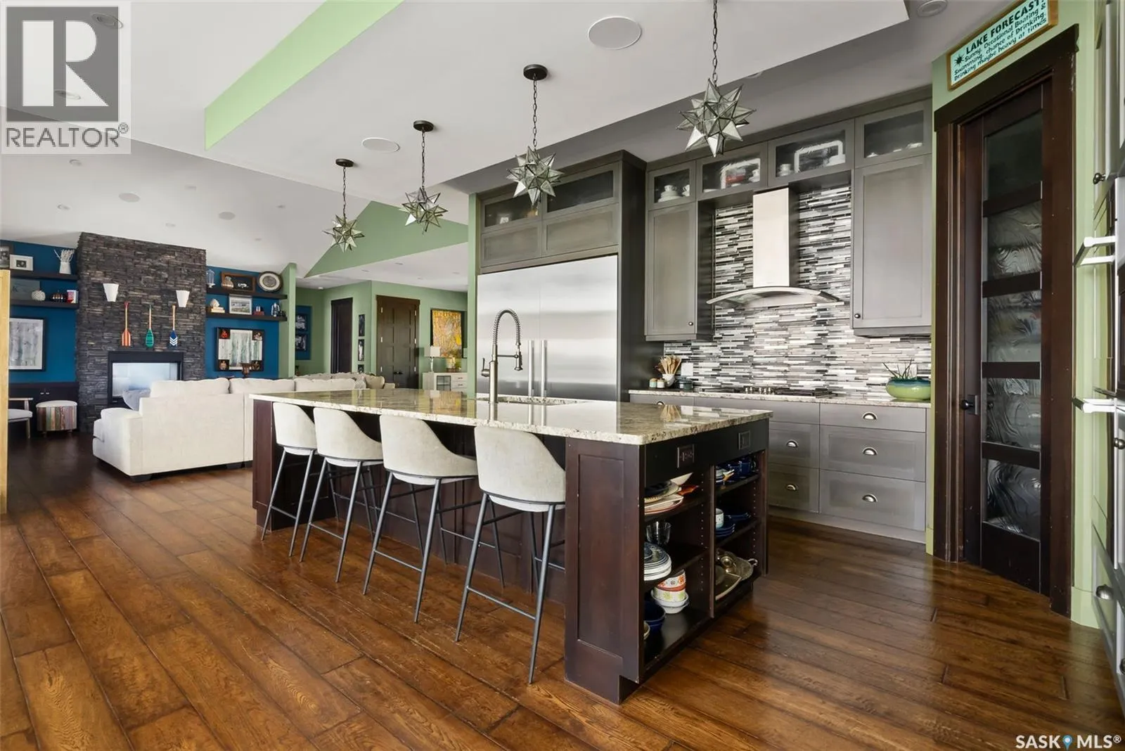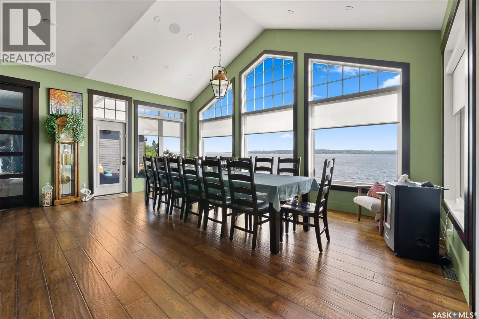 From Craven, North on Hwy 20,Left at Hwy 22 thru Silton, Left at Sundale turnoff, Left towards lake SPRAWLING AND SPECTACULAR LAKESIDE OASIS AT SUNDALE! Nothing is overlooked on the construction & appointments on this fine property. Custom solid cherry millwork by Shaverâs Sash and Door including stairs, spiral staircase, doors, trims & cabinetry. Engineered hand-scraped hardwood and ceramic tile throughout most of the main & walkout levels. 10â coffered ceilings on the main floor & 9â ceilings below. LUTRON motorized blinds and full smart home integration: control temperature, lighting, blinds, music, and TVs from your smartphone. All TVs included, powered by a built-in Dolby Atmos sound system. The 4-car garage features heated floors & spray foam insulation. The gourmet kitchen boasts top-tier MIELE appliances including gas cooktop, built-in fridge, oven & dishwasher. Expansive granite island & counters & premium BLUM soft-close drawer system. Primary ensuite features a California walk-in closet, a spa-like steam shower a standalone tub and an advanced heated toilet. All bathrooms include deluxe tiled showers (except powder room). Upstairs, two childrenâs rooms with walk-in closets & a Jack-and-Jill bath. Walkout lower level includes huge rec room, mudroom, 2 additional bedrooms and 2 more bathrooms. Home theatre screen room with HD projector, screen & dual-row seating. Three screened-in porches, outdoor deck, outdoor shower & foot wash station. Structural slab foundation with 170 x 25-foot piles extending beneath the paving stones for unmatched stability. ICF walls, & open web joist (OWJ) flooring system. Full spray foam insulation envelope for exceptional energy efficiency. Exterior finished with Hardie board siding & 50-year shingles. Negotiable docks & lifts offer flexible lakefront enjoyment. Utilities: Reverse osmosis water system serviced by an on-site plant at the resort ($450/month). Reliable E1 sewer system. (id:27476)