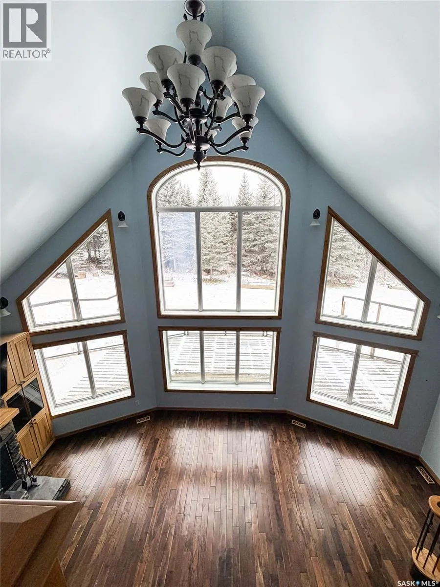 Parcel D, Plan 101894553, Ext 0 House is custom storey and a half walkout home is situated on 5.07 acres just minutes south of Meadow Lake. Built in 2008 with efficiency in mind, this home is well insulated with extra thick walls, and provides the reliability of geothermal energy to heat and cool to your comfort level. Rich hardwood floors throughout much of the home, hickory cabinetry and granite in the massive kitchen. The living room with a cozy fireplace is the main focal point with a massive wall of windows with views of forest and sky. Open concept main level provides the space to entertain family and friends on all occasions. The main level primary bedroom is spacious with a walk in closet and 5 pc ensuite as well as patio doors leading to the wraparound deck. There is a designated main floor office space, laundry room as well as access to the attached garage as well. The 2nd level offers two large bedrooms, a custom 3 pc bathroom and a nook area overlooking the living room. Lower level provides an additional 2 bedrooms, a 4 pc bathroom with great storage, family room, gym area, utility room and great storage rooms. The yard site is surrounded with mature trees and the Provincial forest right in your backyard! For more information donât hesitate to call. (id:27476)