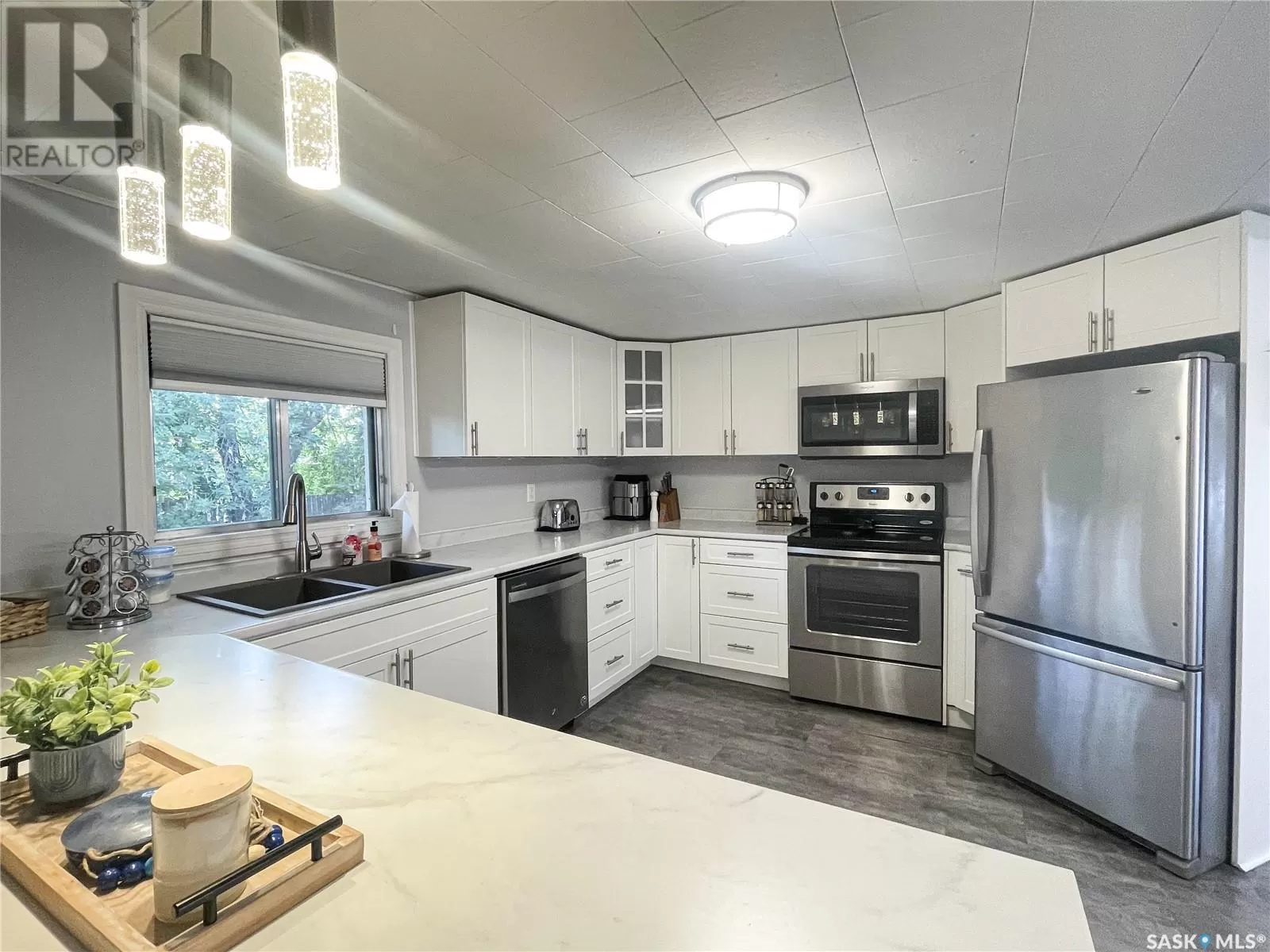 Welcome to 405 1st Street East! Situated on a large lot measuring 100âx120â this older bungalow has undergone a beautiful kitchen renovation among many other updates over the years. 3+1 bed and 2 bathrooms offering 1232 sq ft of open concept living. Lower level provides plenty of storage, great family room, 4th bedroom, 2pc bathroom and laundry/utility room. The yard is fully fenced, deck with hot tub and mature trees for privacy. The outdoor fire pit area is covered and made for family fun! The garage (24x26) with workshop aka âThe Man Caveâ offers amazing parking out of the elements and terrific storage of toys! For more information on the affordable move in property donât hesitate to call. (id:27476)