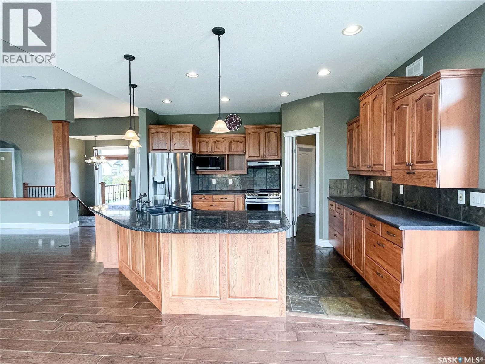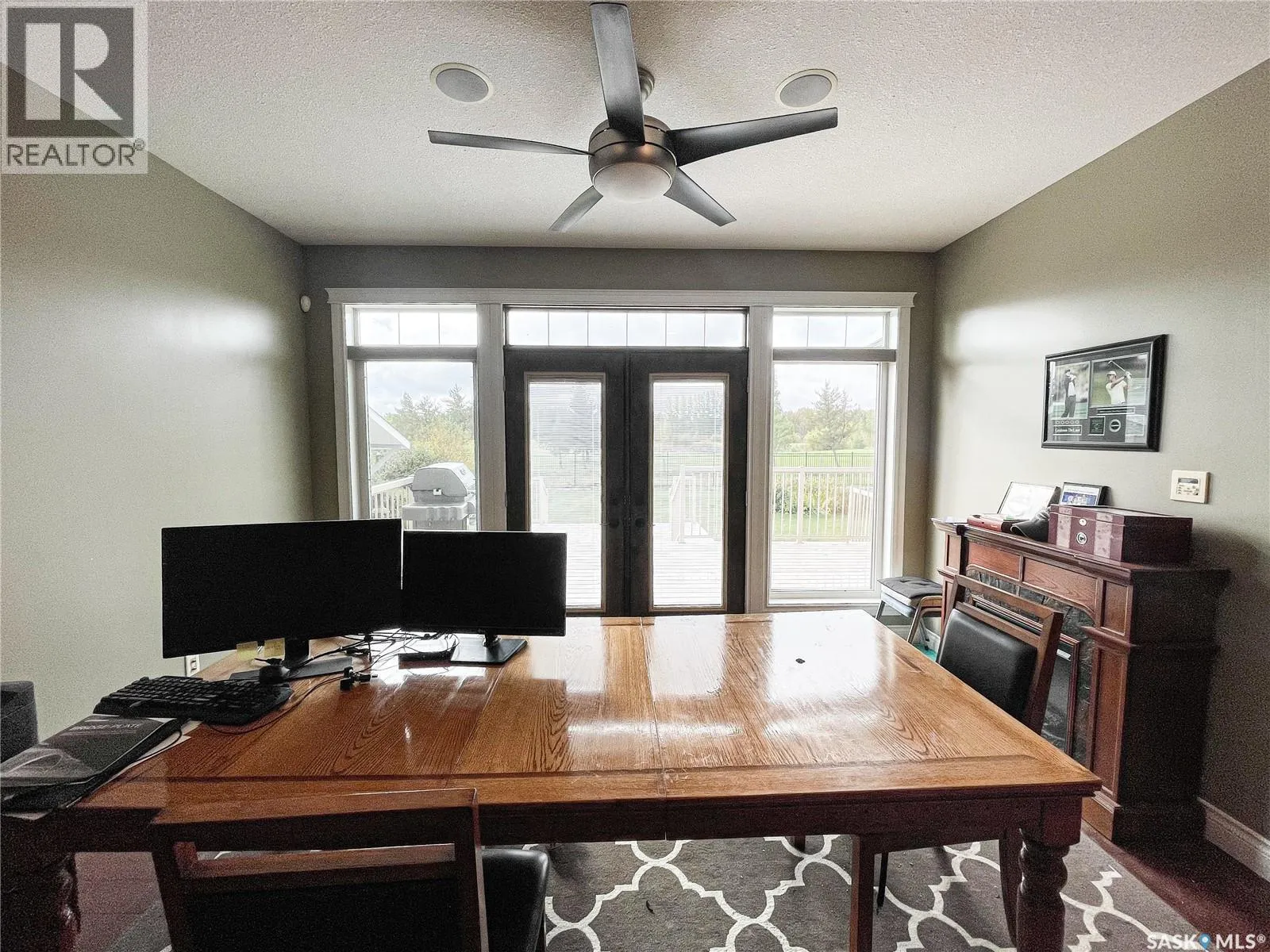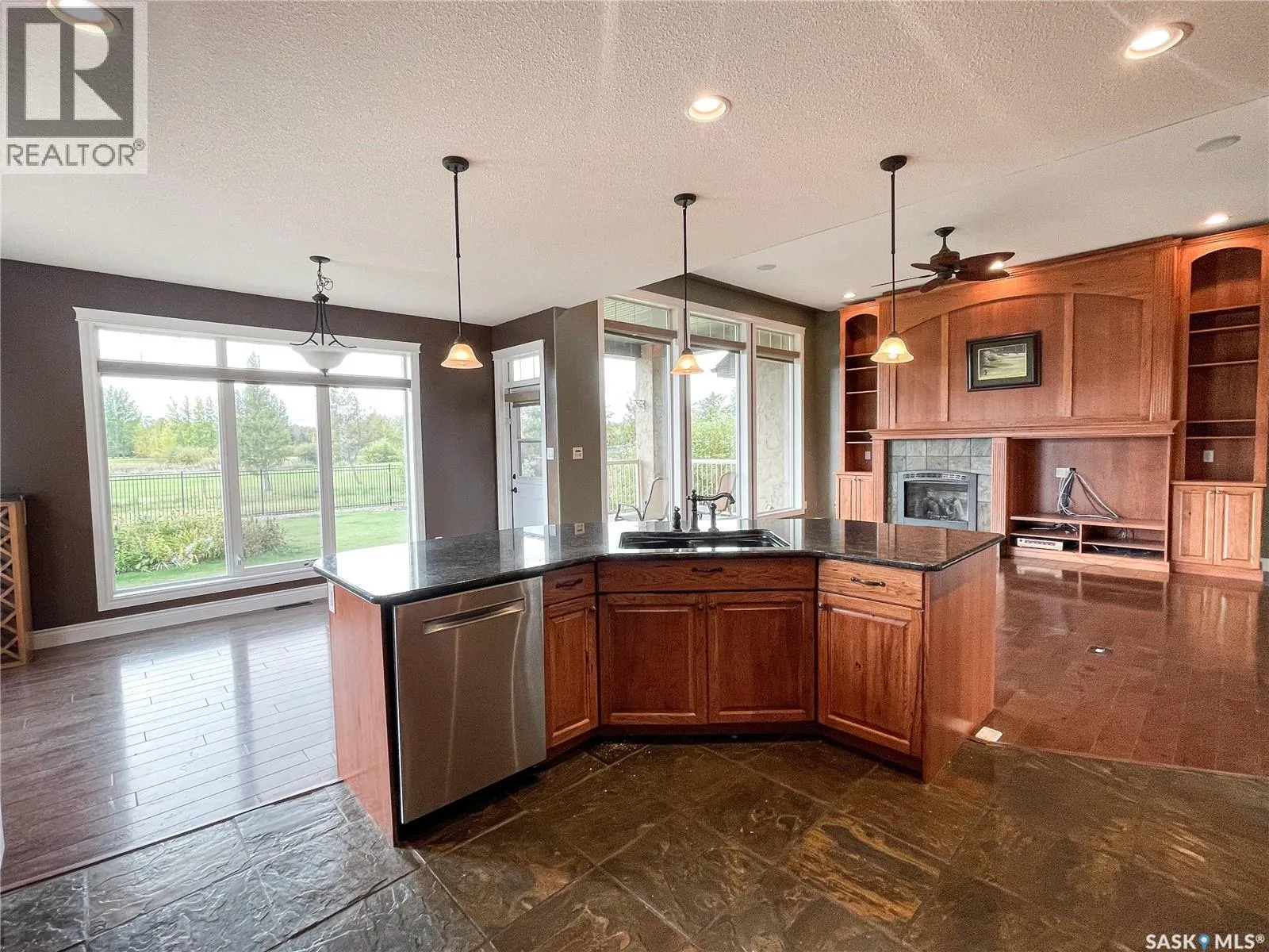 Welcome to 24 Bridger Drive! This home is sure to impress with its amazing golf course view. Open concept design with hickory hardwood and slate flooring throughout. Large primary bedroom with 3 pc ensuite and walk-in closet. There is a large room currently being used as a home office that has access to south deck and backyard. Walk-in pantry, main floor laundry and another bedroom complete the main floor. Lower level is spacious offering a large family room and games area-perfect for the kids. Wet bar is perfect for the adults! 2 large bedrooms a full bathroom, utility room and great storage room. Flooring and fresh paint in 2022. Basement, ensuite , and garage have in-floor heating and will keep you and your family toasty during the winter months. Additional features include central air conditioning, central vacuum, surround sound, underground sprinklers and natural gas BBQ hookup. Triple car garage measures 36âx26â with overhead access to the backyard for boat/rv storage. If you are looking for an executive style home in a great area please donât hesitate on this one! (id:27476)