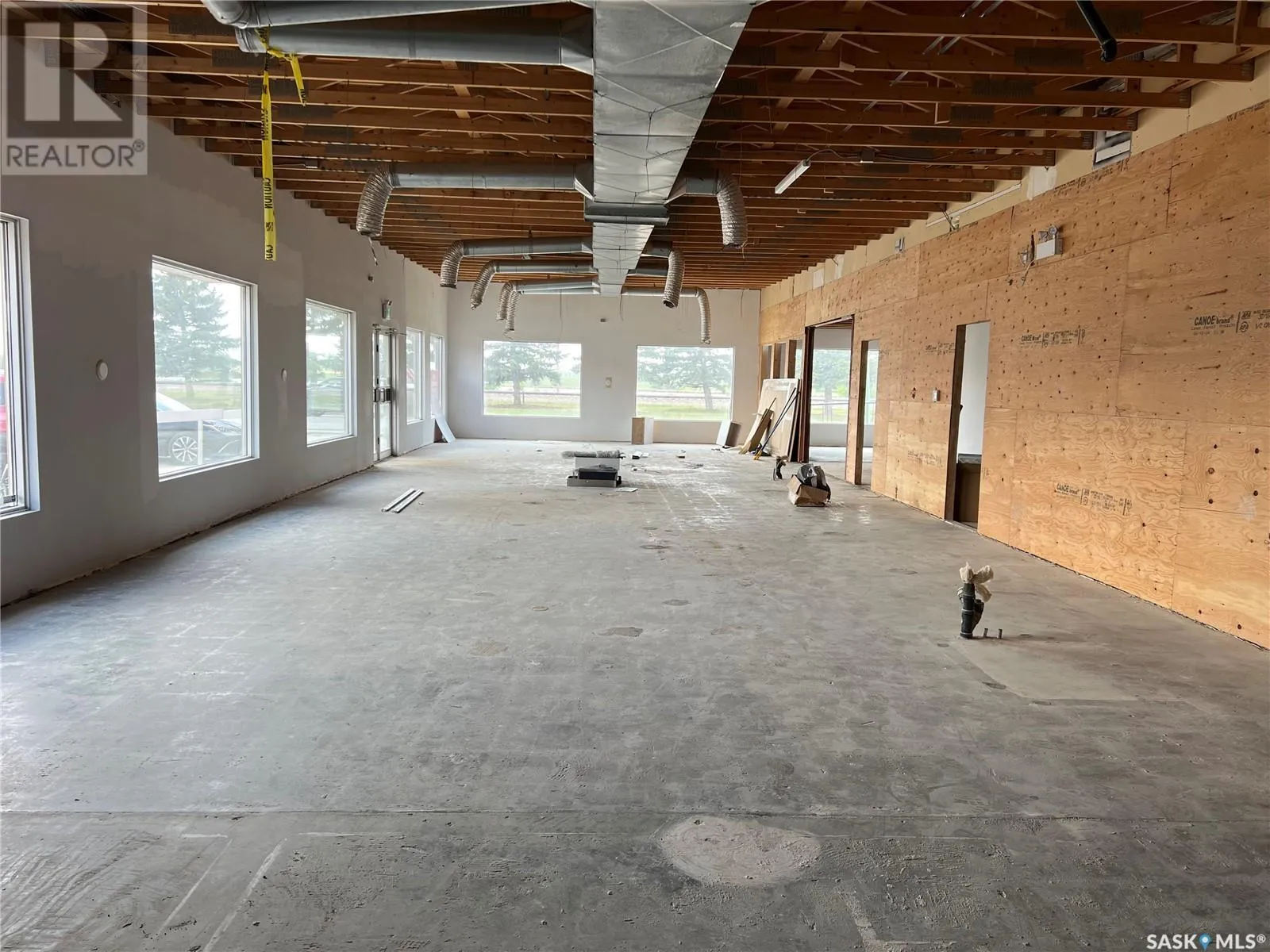 Highly visible business loop frontage. Parking lot shared use with KFC. Lease for East portion of building. Available for LEASE, this is one of the most visible locations for starting your business or moving it with the advantage of the frontage of the Saskatchewan Drive business loop through Melfort. Approximately 2831 sq ft of the building for lease, plus use of the shared parking lot adjacent. The building has excellent window glass for display and effective lighting in the building, wheelchair accessibility. The space is currently unspoiled and ready for development. The landlord will assist with a long term tenancy agreement in place (to be negotiated). Rate is $15/sq ft of building plus occupancy costs of $4.29/sq ft. The occupancy cost is forecast and reconciled early in the following year for adjustment if required. Tenant pays insurance and utilities. Ask for a viewing of the building and see if this is the best fit for you! (id:27476)