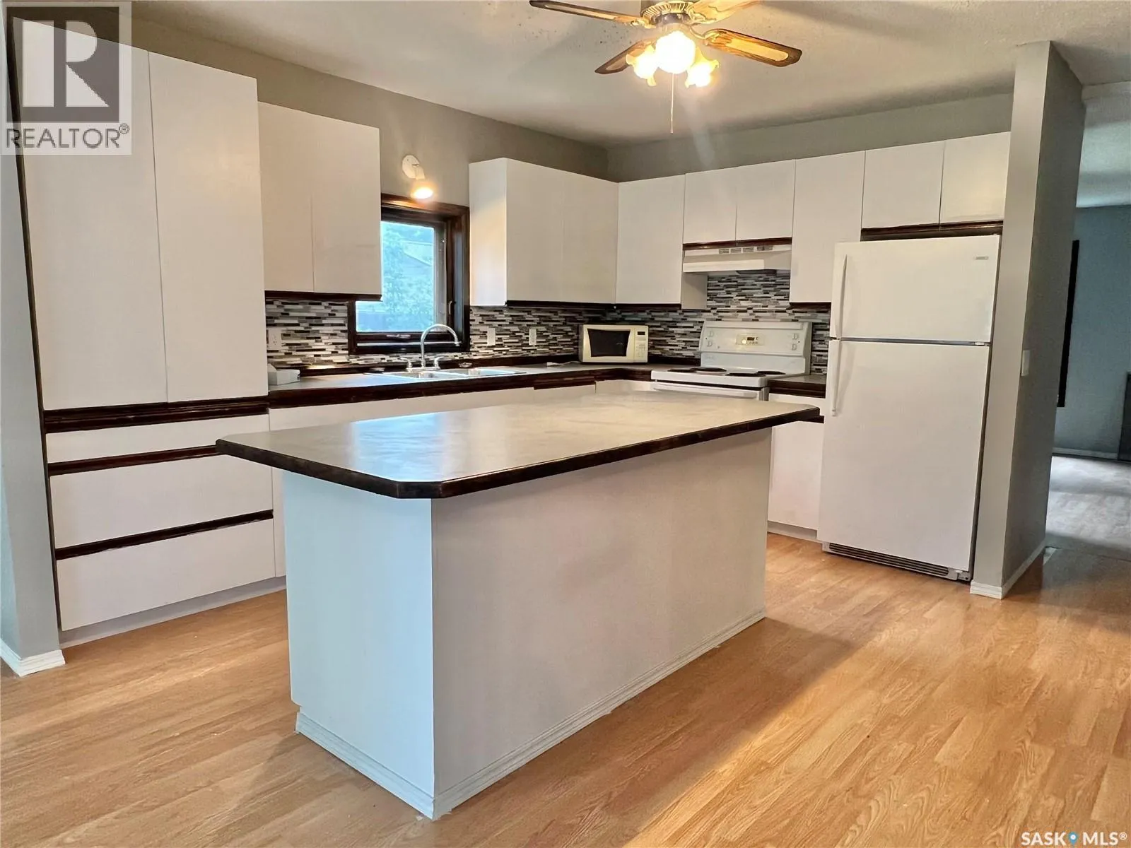 Welcome to this family size home that offers an open concept design that provides a large kitchen that features an island! The living room has a back door accessing the patio to enjoy. There is one bedroom on the main floor and three bedrooms on the second level. Three piece bathroom with laundry on main floor and a full bath on the second level. The basement is finished to utilize as a family room or storage. The home has attractive street appeal with charm that has front parking and walking distance to the Maude Burke Elementary School. (id:27476)