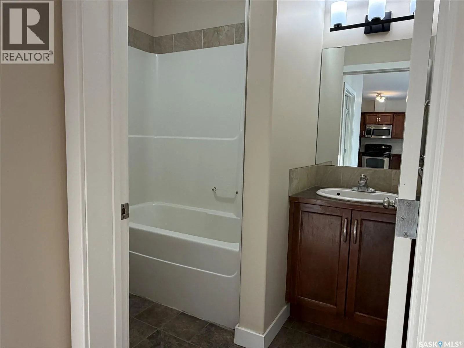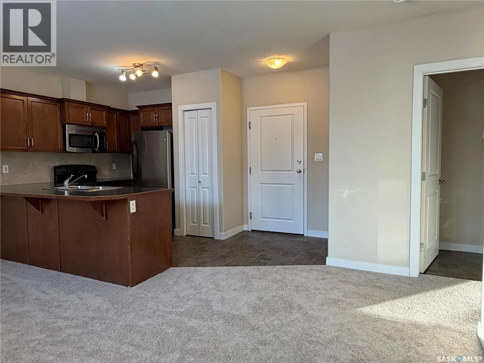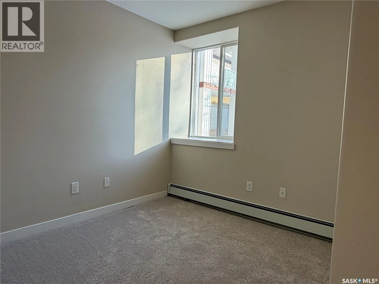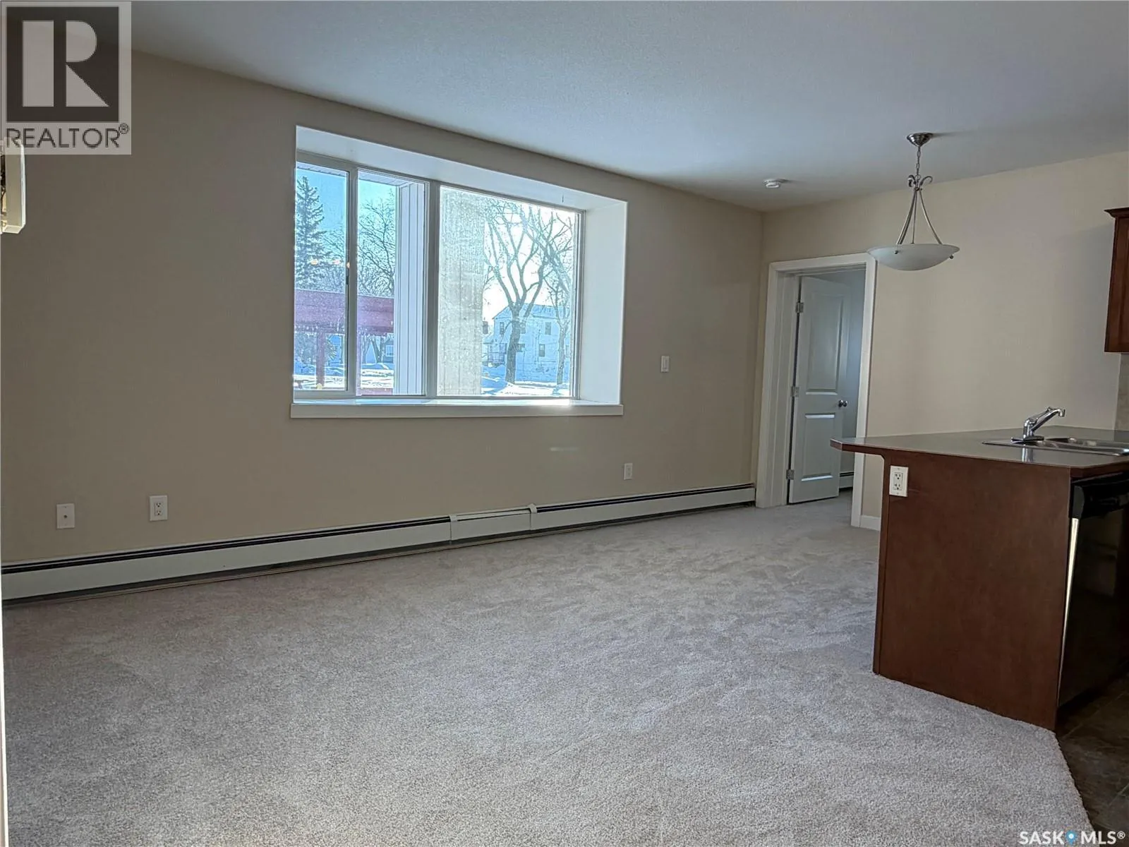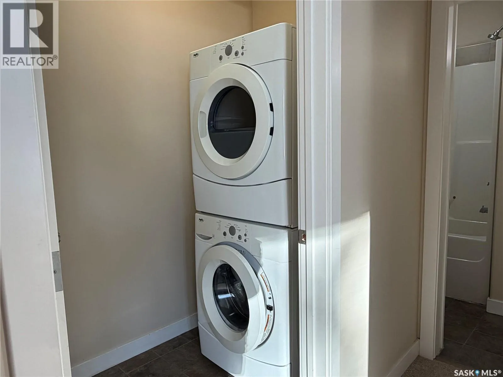 Two bedroom condo unit located in Bemister Place Condos on the East side of Melfort, located close to schools, parks & Parkland Place! This unit faces East, viewing the greenspace that has a covered patio with benches and tables for socials. Shaker style, maple, cabinets provides an abundance of counter space with overhang for stools, if desired. Includes fridge, stove, dishwasher & microwave. Laundry room includes washer & dryer. Main bedroom of the two, offers double closets. Full bath. This unit is located closest to the South West exterior access. The condo building is two levels, with an elevator. Parking stall #101. (id:27476)