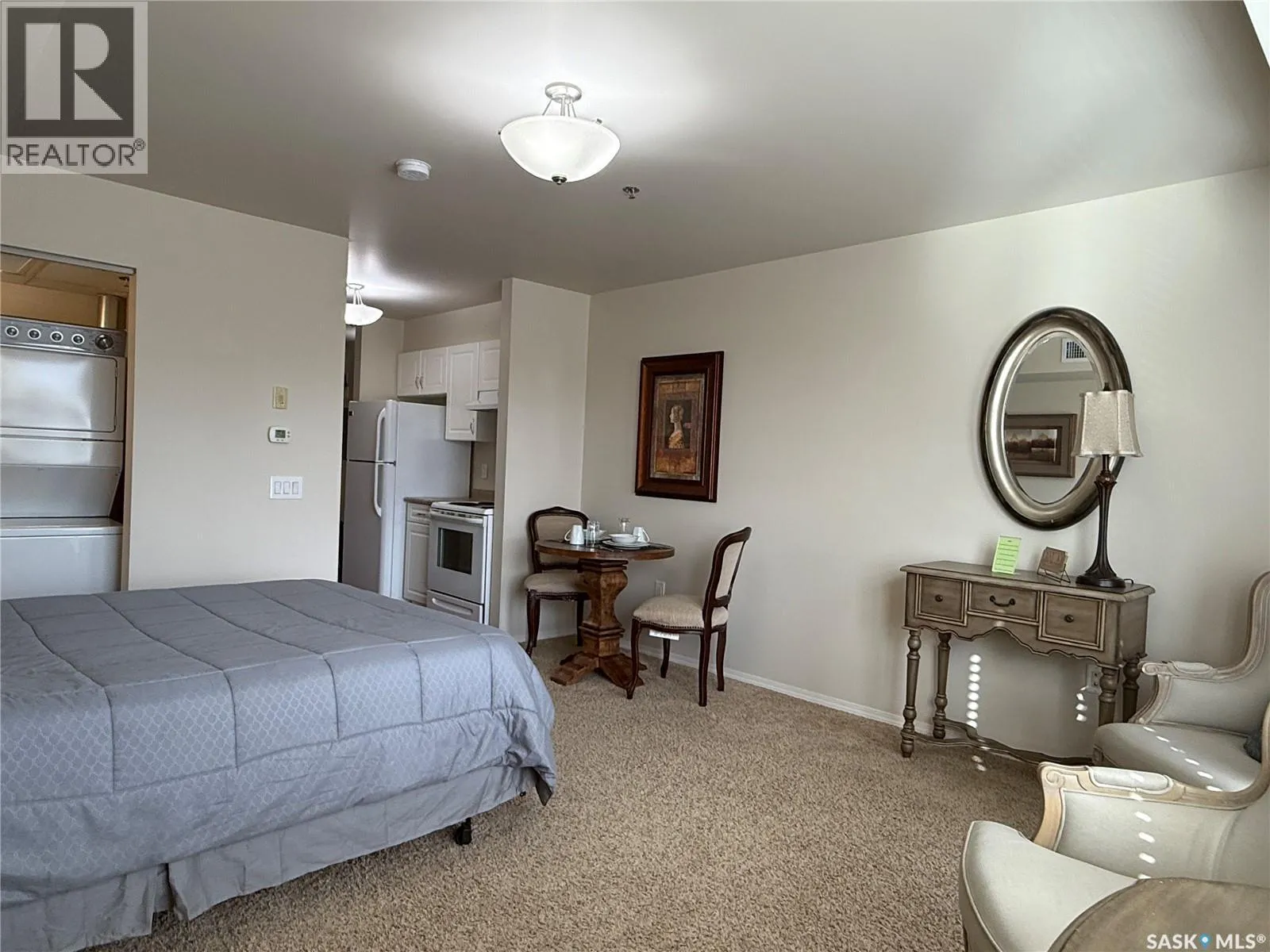 Welcome to Suite 307 â 680 7th Ave E in Cumberland Villas, a bright and inviting studio suite offering 392 sq ft of comfortable, low-maintenance living. Located on the third floor, this east-facing unit lets you enjoy your morning coffee on an overhead sheltered balcony, offering a nice touch of protection from the elements. Inside, youâll find everything you need for easy livingâa combined bedroom and living area, a functional kitchen, a full 4-piece bathroom, and convenient in-suite stackable laundry. Cumberland Villas is designed with comfort and community in mind, providing residents with welcoming spaces and a wide range of optional lifestyle services. Enjoy the benefits of friendly staff, cozy common areas, and a vibrant atmosphere that encourages connection. Relax in the library by the fireplace, challenge a friend to a game of billiards, or join in a dance or social event. Enjoy organized activities and a 24 bistro âall for a monthly fee of $90. On-site mail delivery to your personal mailbox adds another layer of everyday convenience, while optional services such as Red Seal Chef menu & prepared meals, ensuring delicious, home-style dining options, housekeeping, laundry, or transportation are also available to make daily living even simpler. Thereâs even an on-site hair salon, workshop, and crafting room to help you stay active and engaged. Whether youâre downsizing, seeking a comfortable place to call home, or ready to simplify your lifestyle, Suite 307 offers the perfect mix of independence, convenience, and community spiritâall in one well-cared-for location. For a closer look, be sure to explore the virtual tour of Cumberland Villasâa great way to experience the community and amenities from the comfort of home. (id:27476)