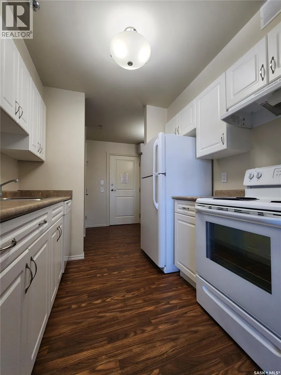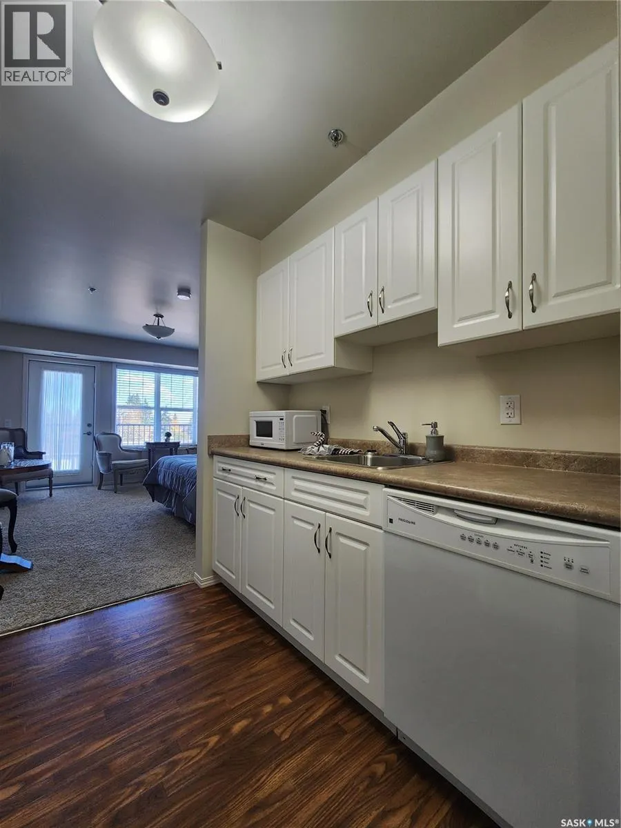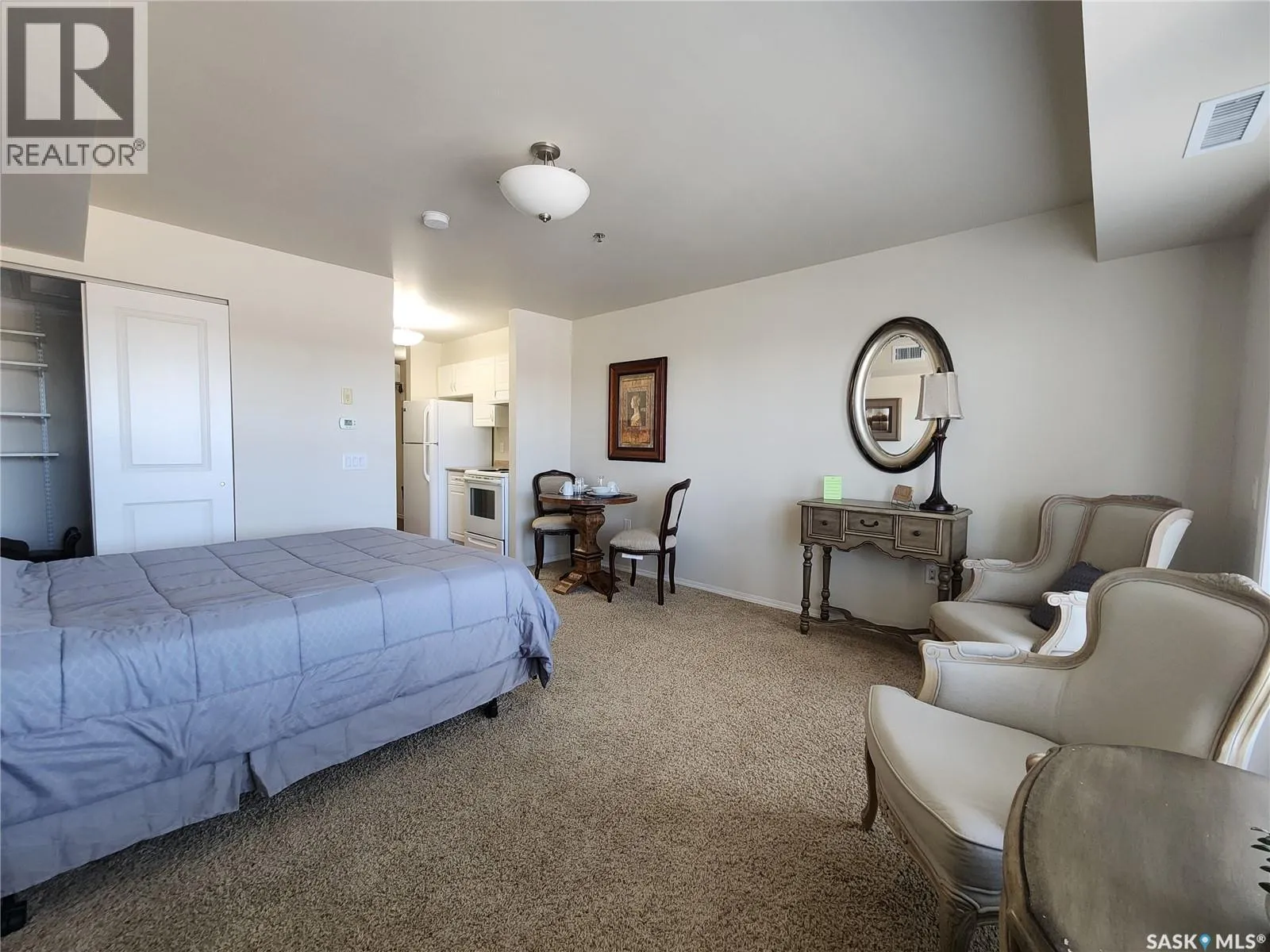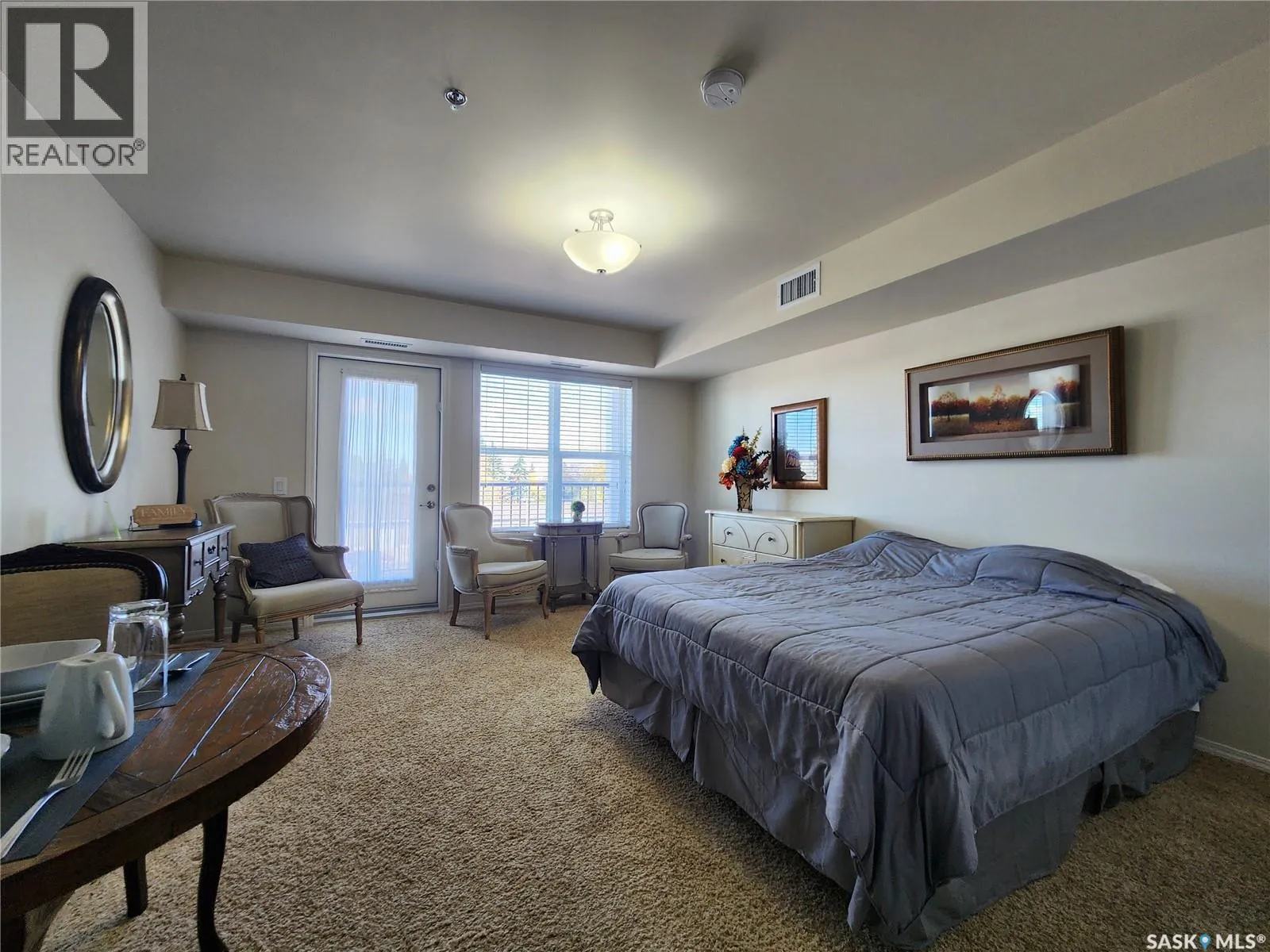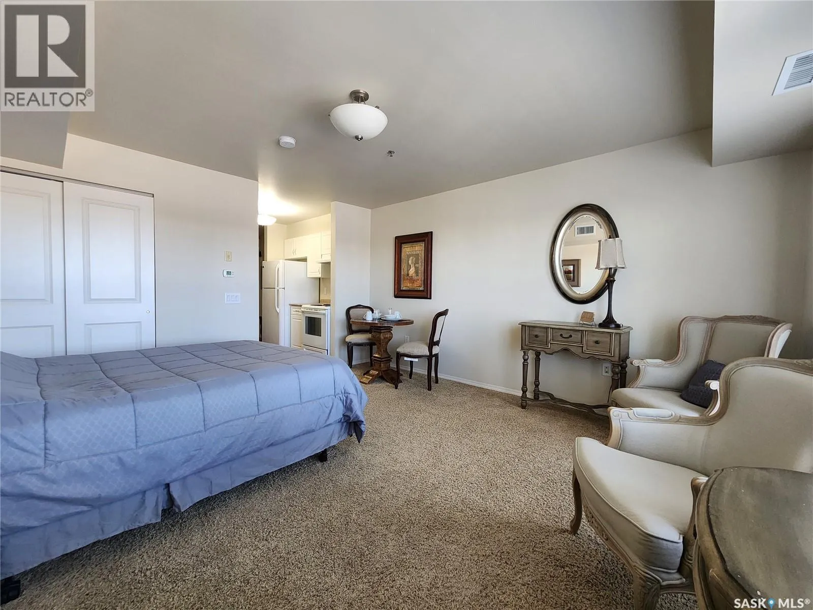 Welcome to easy and carefree living at the lovely Cumberland Villas in Melville. This inviting studio suite on the 3rd floor offers comfort, convenience, and smart design â all at an affordable price. Step into a spacious foyer with ample storage, leading to a well-appointed galley kitchen that opens into a bright and versatile living area â your cozy space for both relaxing and sleeping. The suite includes 4 appliances, generous counter and cabinet space, a large 4-piece bathroom, and in-suite laundry neatly tucked away in the bedroom closet. Step out onto your private west-facing balcony, perfect for relaxing or enjoying the fresh air, and take in the beautifully maintained courtyard. This suite includes a dedicated parking stall and access to a wide range of amenities, such as a dining and bistro area, workshop, library, elevator, lounge, and recreation center â all designed to enhance your lifestyle. At Cumberland Villas, youâll discover a welcoming community and the perfect place to call home. (The staged pictures are not the actual suite) (id:27476)