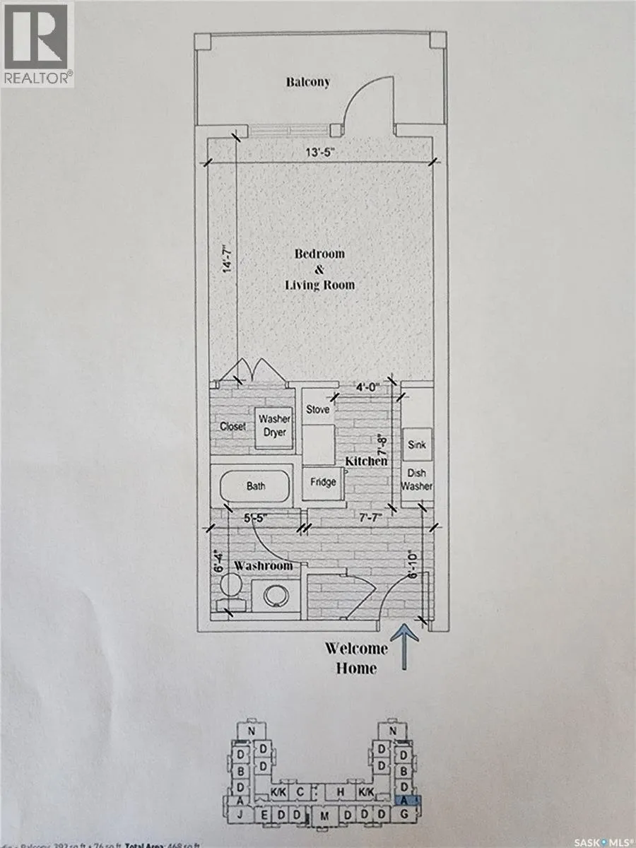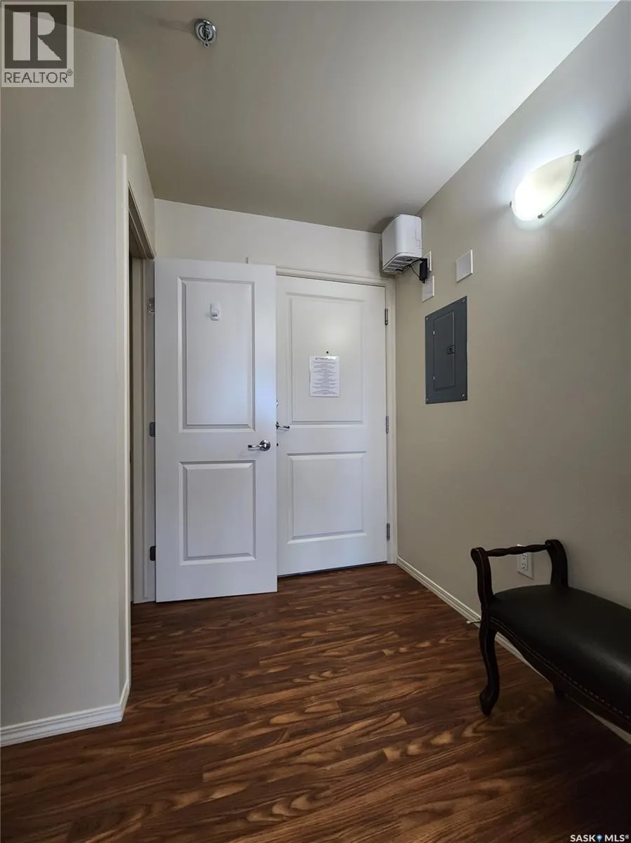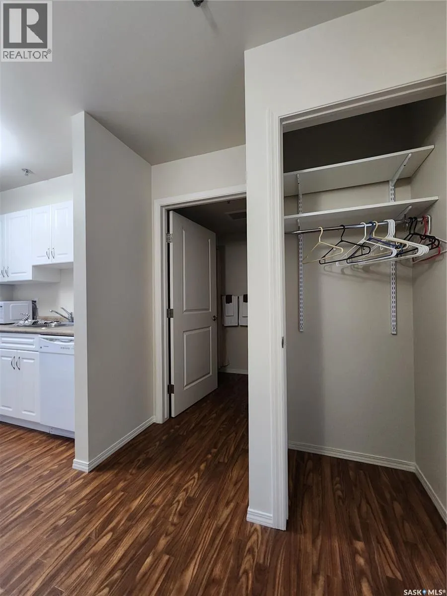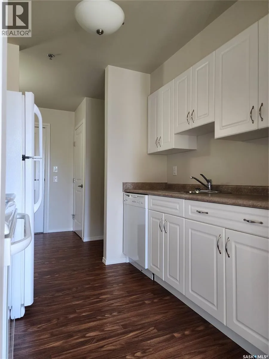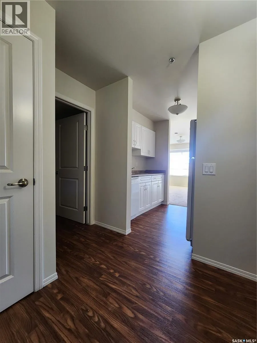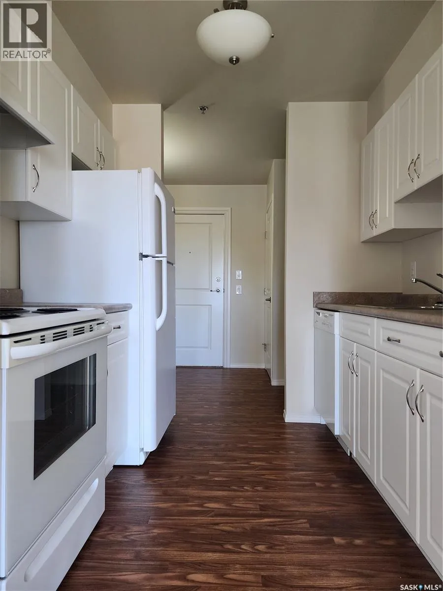 Welcome to easy and carefree living at the lovely Cumberland Villas in Melville. This inviting studio suite on the 3rd floor offers comfort, convenience, and smart design â all at an affordable price. Step into a spacious foyer with ample storage, leading to a well-appointed galley kitchen that opens into a bright and versatile living area â your cozy space for both relaxing and sleeping. The suite includes 4 appliances, generous counter and cabinet space, a large 4-piece bathroom, and in-suite laundry neatly tucked away in the bedroom closet. Step out onto your private west-facing balcony, perfect for relaxing or enjoying the fresh air, and take in the beautifully maintained courtyard. This suite includes a dedicated parking stall and access to a wide range of amenities, such as a dining and bistro area, workshop, library, elevator, lounge, and recreation center â all designed to enhance your lifestyle. At Cumberland Villas, youâll discover a welcoming community and the perfect place to call home. (The staged pictures are not the actual suite) (id:27476)
