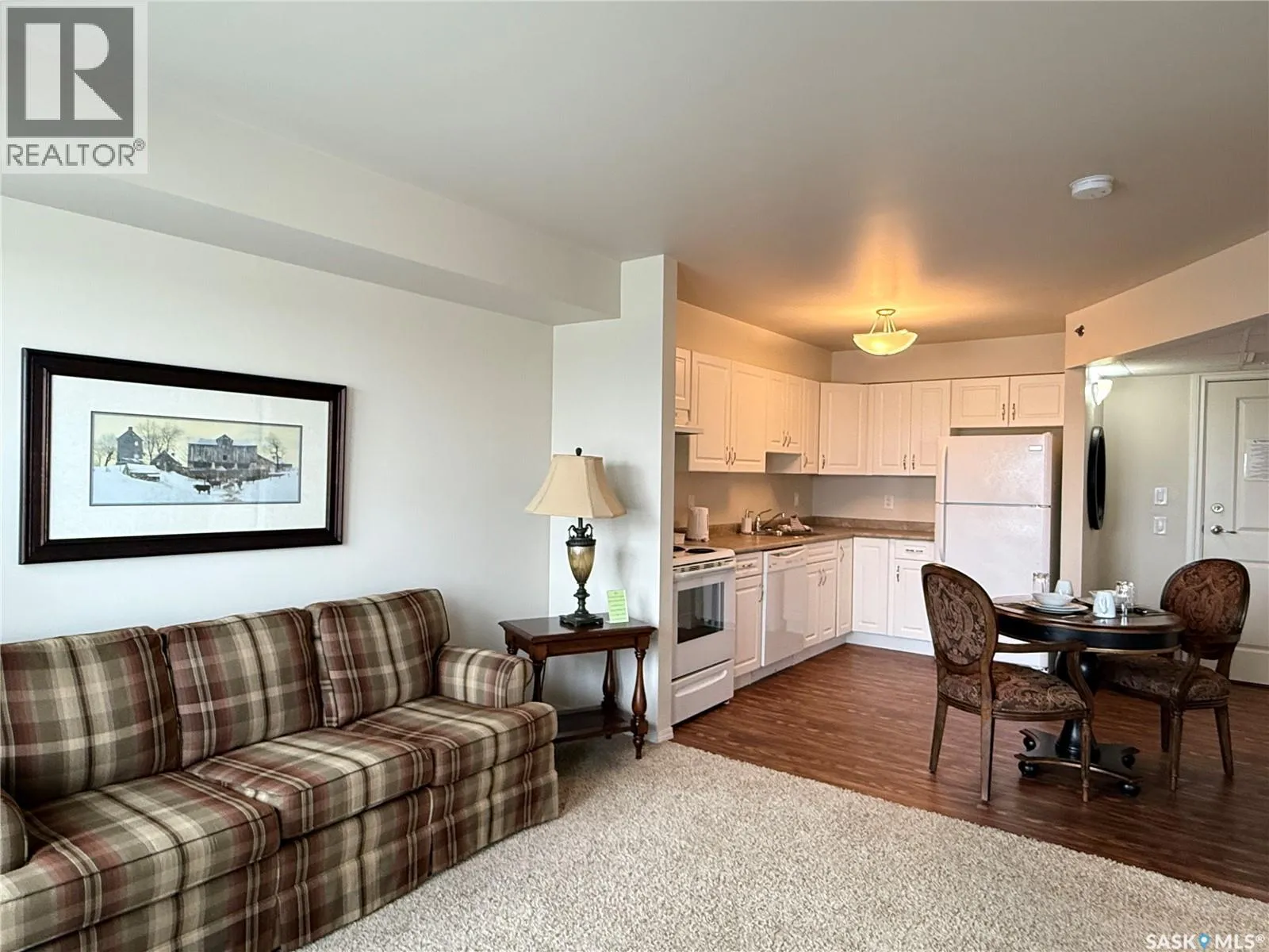 Welcome to 222 680 7th Avenue East in Melville, SK! Discover a relaxed & carefree lifestyle in this vibrant community designed for comfort, convenience, & connection. Cumberland Villas offers everything you need to enjoy your day-to-day life, from welcoming common areas to a variety of amenities tailored to enhance your experience. Step inside & be greeted by friendly staff & inviting spaces, including a cozy library with a fireplace, a billiards table, a dance floor, & a 24-hour Bistroâall available for a small monthly fee ($90). Pamper yourself with on-site hairstyling services, or simply enjoy the peace of mind that comes with a thoughtfully designed living environment. Located on the 2nd floor, Suite 222 is a spacious one-bedroom suite, perfect for those seeking both independence & ease of living. The open-concept design makes the most of every square foot, featuring a well-appointed eat-in kitchen with ample cupboard & counter space, along with a fridge, stove, & built-in dishwasher. The bright & airy living room leads to a west-facing balcony, creating the ideal spot to enjoy your morning coffee or unwind in the fresh air. The bedroom gives direct access to a four-piece bathroom & in-suite laundry, ensuring everyday convenience. Cumberland Villas provides a variety of lifestyle services to simplify daily tasks & enhance your quality of life. Optional meal plans, transportation, & housekeeping or laundry services allow you to customize your experience to fit your needs. Love staying busy? Take advantage of the on-site workshop for hands-on projects or explore your creative side in the crafting space. Whether you're looking for a social, engaging environment or a peaceful retreat, Cumberland Villas offers the perfect balance of community & independence. Here, every detail is designed with your comfort & happiness in mind. Note: Photos are of a furnished guest suite of the same layout and not suite 222. For a tour of Cumberland Villas check out the virtual tour! (id:27476)