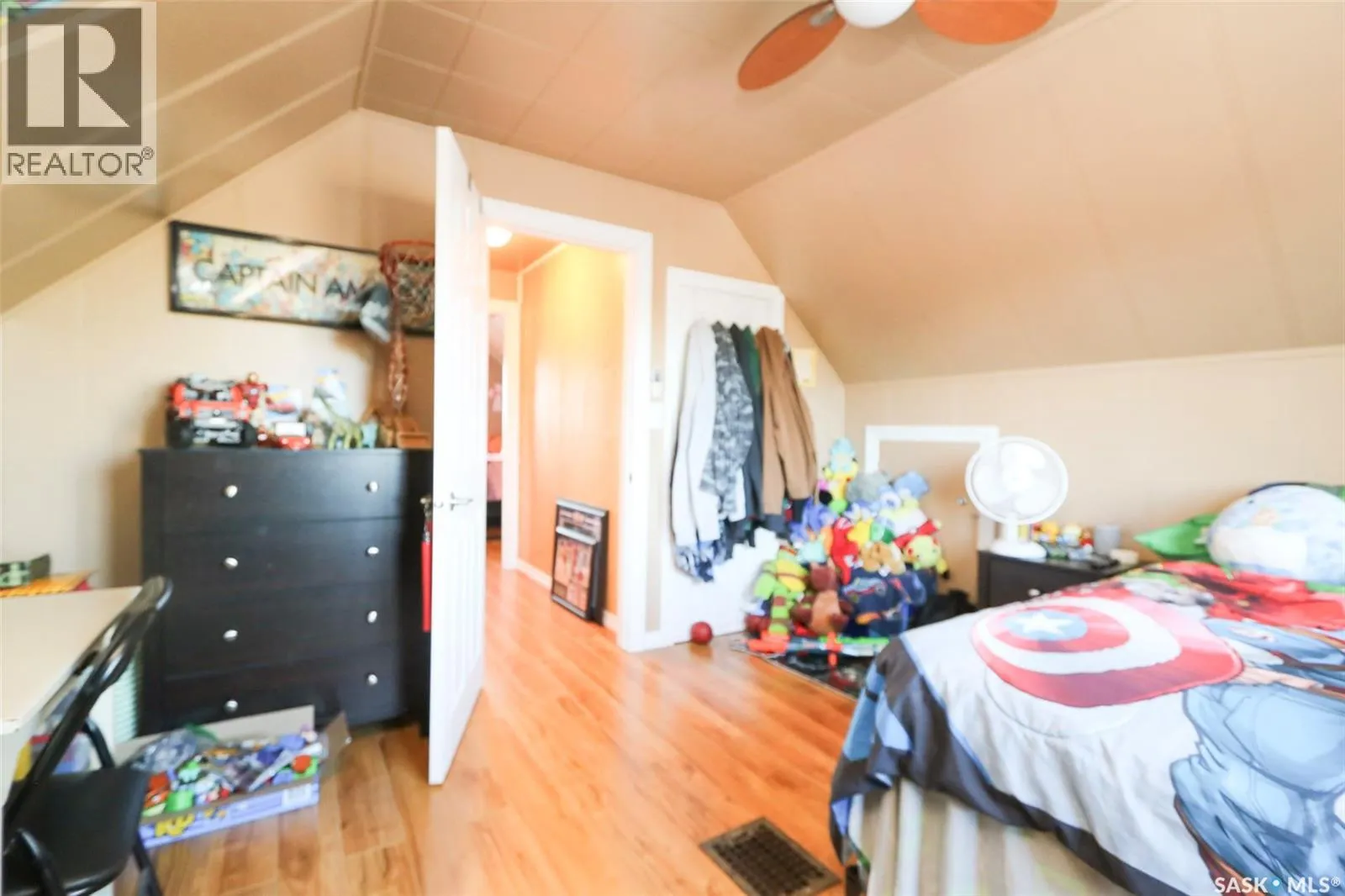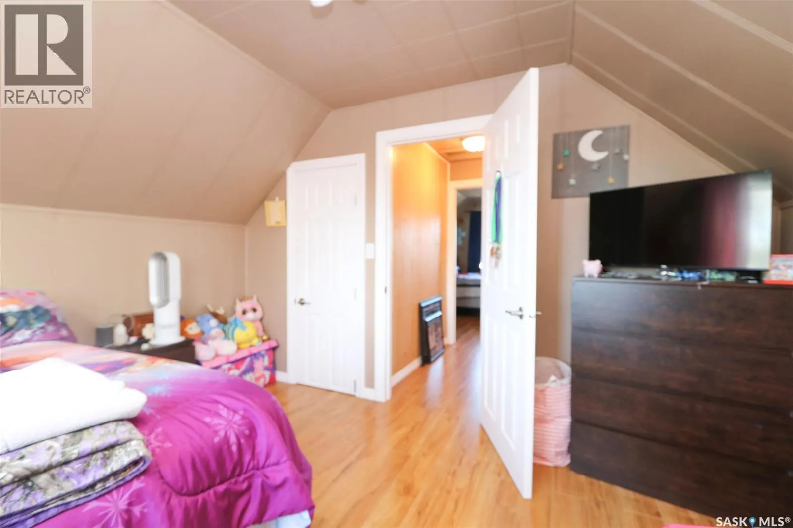 This charming and affordable family home is perfectly located within walking distance to elementary schools, parks, and everyday conveniences. Enjoy the spacious, fully fenced yard with a gravel parking padâideal for extra vehicles, a boat, or camperâplus a 14x24 detached garage that includes a handy workshop area. Step inside and feel right at home in this warm, sun-filled space. Off the backyard, youâll find a large sunroom that doubles as a bright mudroom or bonus sitting area. The galley-style kitchen offers ample cupboard and counter space, a window overlooking the yard, and room for a cozy breakfast table. A hallway pantry adds even more storage. Around the corner, the open-concept living and dining room provides the perfect layout for entertainingâwhether itâs hosting family dinners, movie nights, or team celebrations. The main floor features a comfortable primary bedroom conveniently located at the base of the stairs, keeping you within earshot of the kids on the second level. A beautifully updated 4-piece bath with tiled tub surround completes the main floor. Upstairs, youâll find two generous bedrooms with plenty of built-in storageâgreat for teens seeking their own space or little ones with lots of toys. The lower level offers a solid, dry foundation with a partially developed areaâideal for a play zone, home gym, or guest roomâplus a large laundry and storage area. Recent updates include windows, shingles, furnace, water heater, and electrical panel. Come see why this move-in-ready home is a fantastic opportunity for first-time buyers or growing families alike. As per the Sellerâs direction, all offers will be presented on 11/07/2025 5:00PM. (id:27476)
