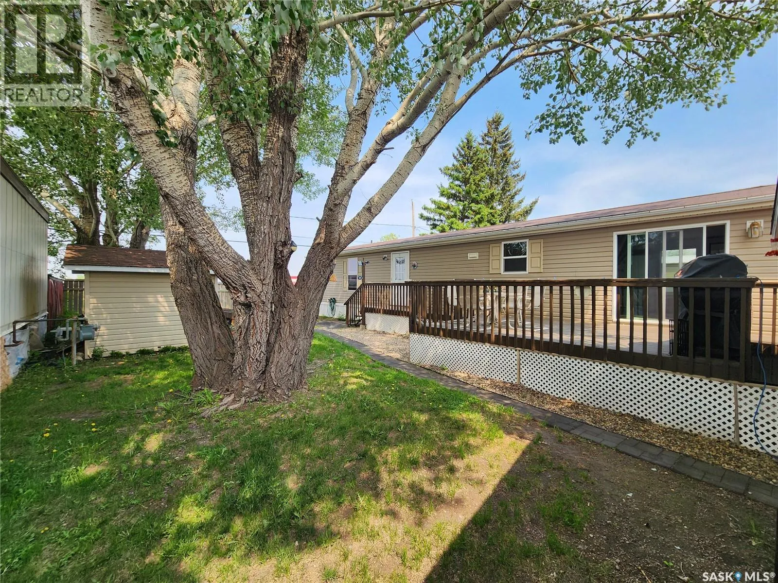This well-kept 1,216 sq ft modular home was built in 2008. With 3 bedrooms and 2 full bathrooms, the home offers a spacious, open-concept layout that seamlessly connects the kitchen, dining, and living areasâperfect for both daily living and entertaining. The kitchen features plenty of cabinetry, island, 4 appliances and a pantry for additional storage. On one side of the home you'll find a convenient laundry area with additional storage space and a spacious primary bedroom that features a walk-in closet and 3-piece ensuite. On the opposite side, two more bedrooms and a second 4-piece bathroom provide flexibility for family or guests. Outside, enjoy a private, fenced yard with a deck, garden shed, and raised garden boxesâideal for outdoor living. A double detached garage offers ample storage, while the triple driveway ensures plenty of parking space. Lot rent is $475/month and includes water, sewer, and garbage pickup. Conveniently located near St. Peterâs Hospital, the CN Community Center, and Miller Elementary School. (id:27476)