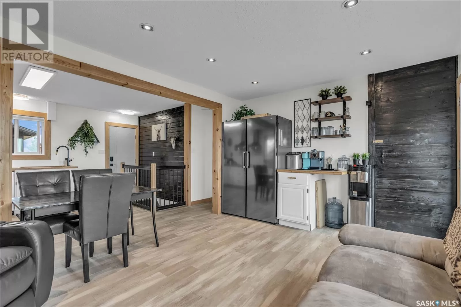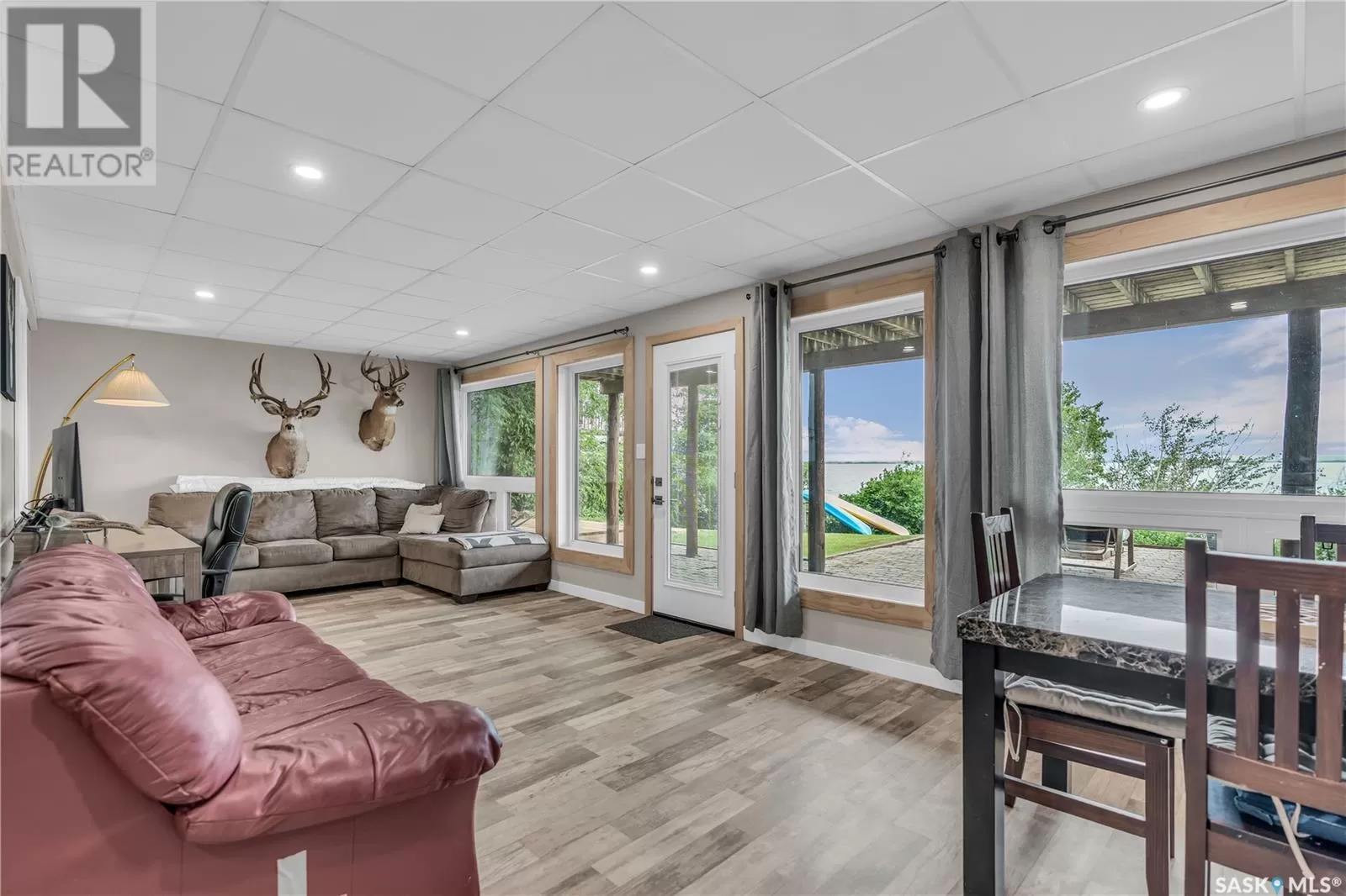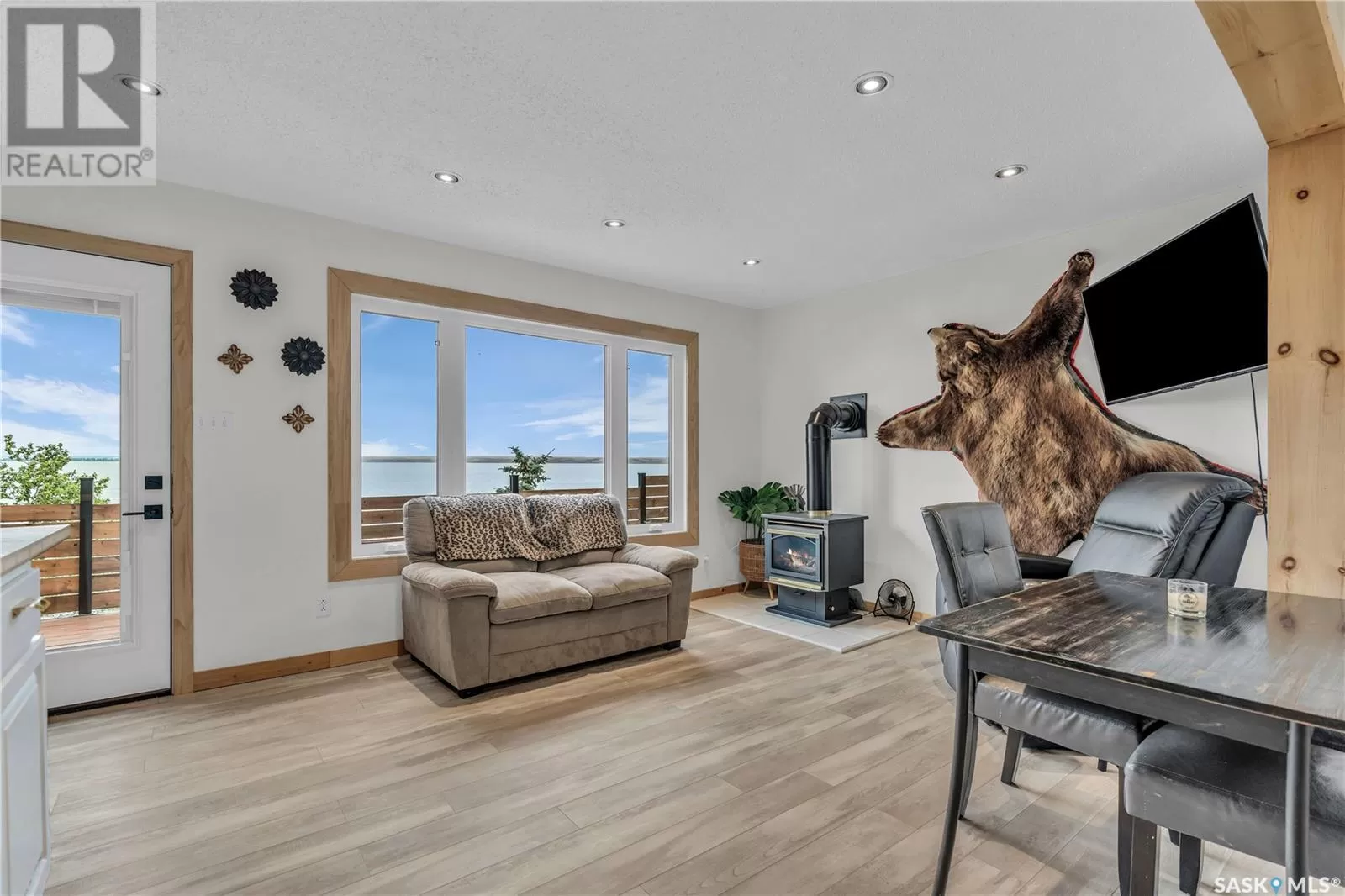 Welcome to your dream getaway on Tobey Crescent, offering one of the most spectacular full panoramic views of Jackfish Lake! This beautifully updated property is move-in ready and perfect for year-round enjoyment. From the moment you arrive, you'll notice the brand-new siding and roof on both the house and garage, setting the tone for the extensive updates throughout. A wrap-around deck invites you to relax in multiple outdoor spaces, including a private sitting area at the back and a large deck overlooking the lake, perfect for morning coffee or sunset gatherings. The walk-out basement leads to a cozy fire-pit and patio area, and there's a second fire-pit on the roadside of the property, ideal for shifting winds. Stairs take you down to the lakefront, where you'll find excellent water depth for your boat and a spot for a boat lift. This location on the lake is known for great fishing! Cast a line off the end of the dock and you can bring up supper for a fresh fish fry! Inside, the home has been completely renovated. The main floor features an open-concept kitchen and living room with large updated windows that frame stunning lake views. A gas fireplace adds warmth and charm for cooler days. There are two bedrooms and a full bath on the main floor. Downstairs, enjoy a spacious rec room, second living area, and a combined laundry/bathroom with walk-in shower. Located close to Meota's golf course, public beach, restaurant, and more, this home offers the perfect balance of serenity and convenience. Donât miss your chance to own a piece of lakefront paradise! (id:27476)