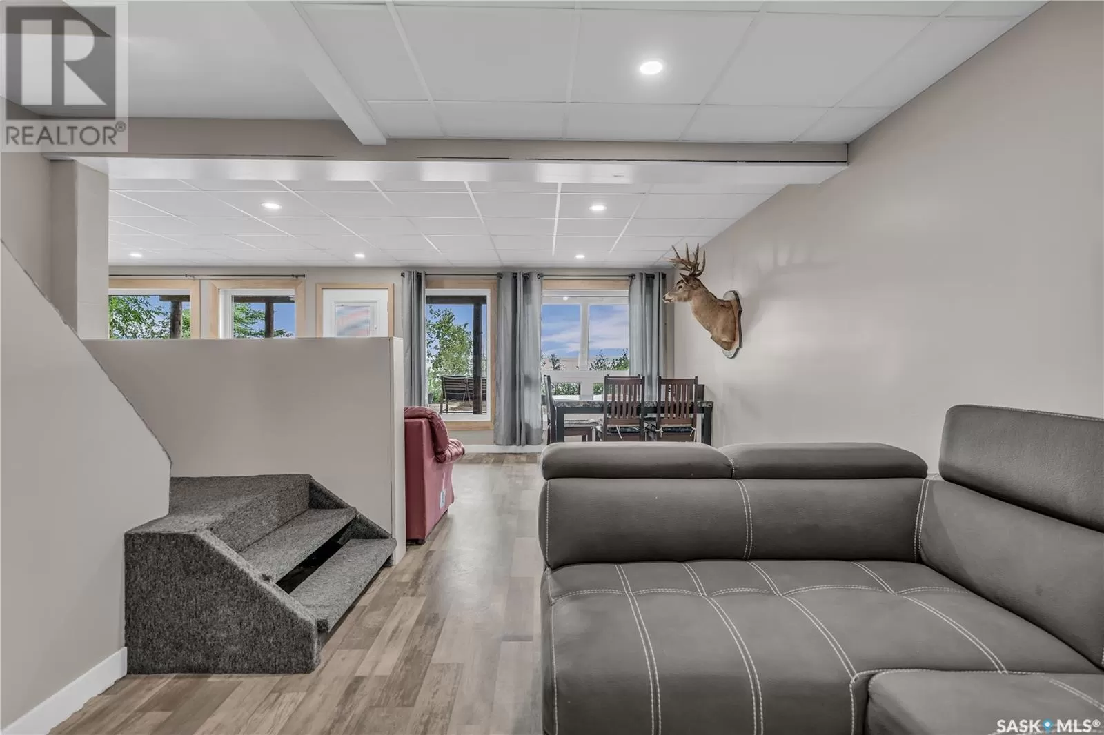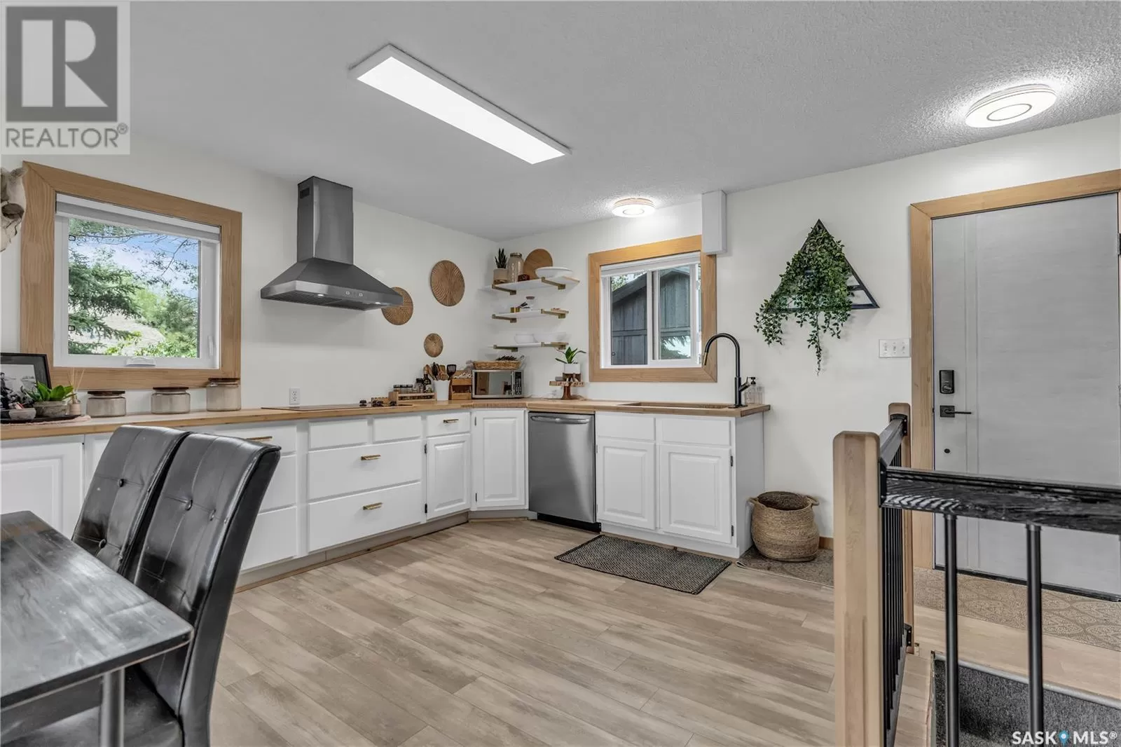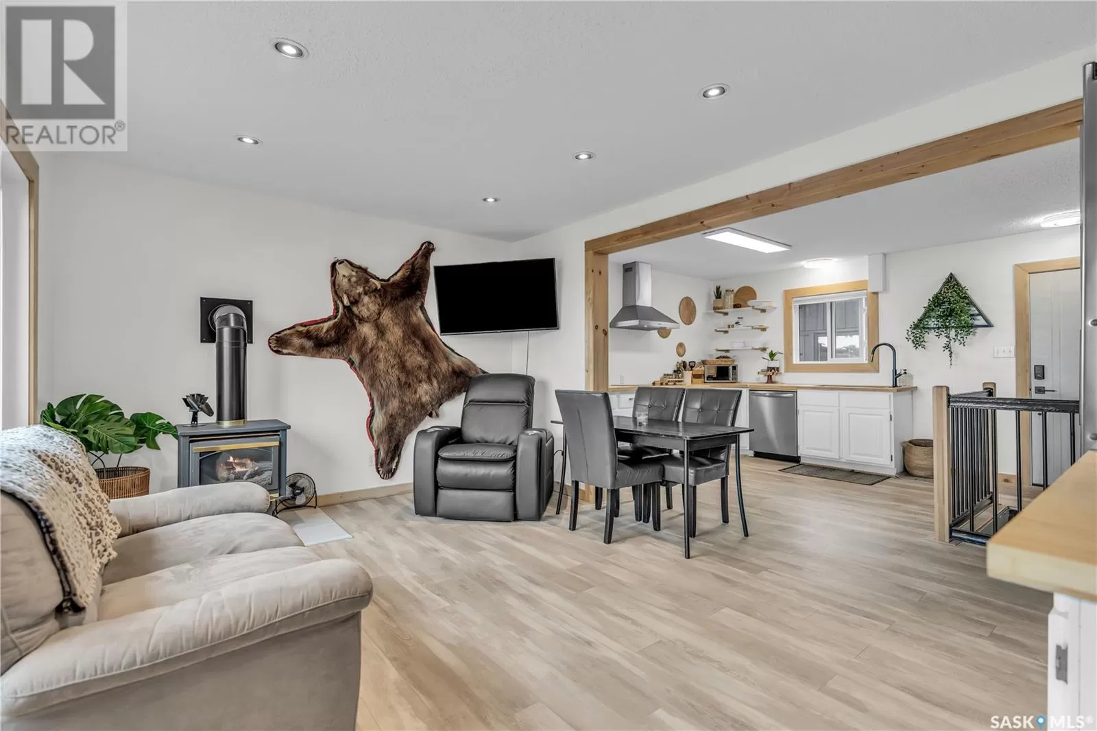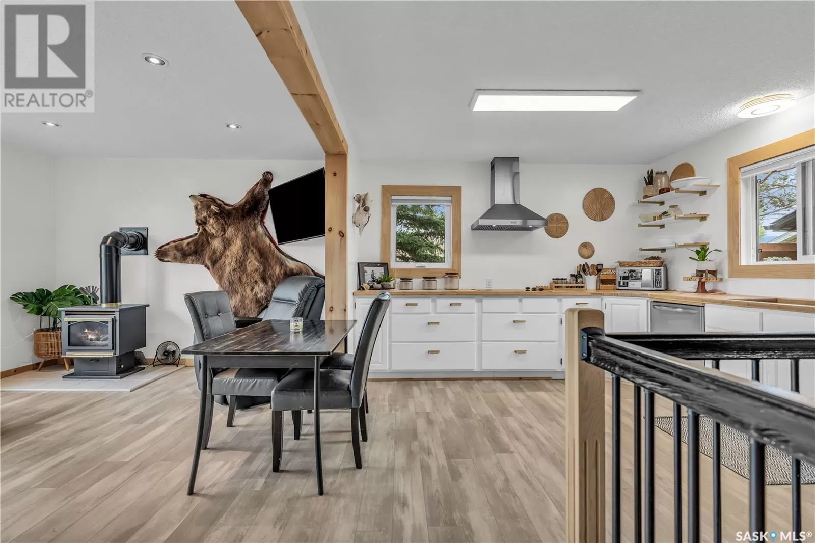 Welcome to your dream getaway on Tobey Crescent, offering one of the most spectacular full panoramic views of Jackfish Lake! This beautifully updated property is move-in ready and perfect for year-round enjoyment. From the moment you arrive, you'll notice the brand-new siding and roof on both the house and garage, setting the tone for the extensive updates throughout. A wrap-around deck invites you to relax in multiple outdoor spaces, including a private sitting area at the back and a large deck overlooking the lake, perfect for morning coffee or sunset gatherings. The walk-out basement leads to a cozy fire-pit and patio area, and there's a second fire-pit on the roadside of the property, ideal for shifting winds. Stairs take you down to the lakefront, where you'll find excellent water depth for your boat and a spot for a boat lift. This location on the lake is known for great fishing! Cast a line off the end of the dock and you can bring up supper for a fresh fish fry! Inside, the home has been completely renovated. The main floor features an open-concept kitchen and living room with large updated windows that frame stunning lake views. A gas fireplace adds warmth and charm for cooler days. There are two bedrooms and a full bath on the main floor. Downstairs, enjoy a spacious rec room, second living area, and a combined laundry/bathroom with walk-in shower. Located close to Meota's golf course, public beach, restaurant, and more, this home offers the perfect balance of serenity and convenience. Donât miss your chance to own a piece of lakefront paradise! (id:27476)