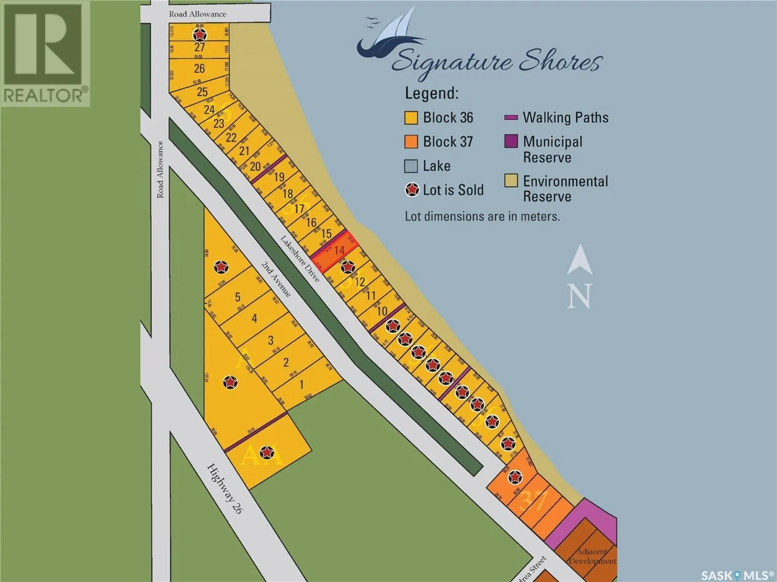 LAKEFRONT LOT on the tranquil shores of Jackfish Lake in the subdivision of Signature Shores. This exceptional lakefront lot offers the perfect canvas for your vision, whether it's a sprawling family estate or a cozy cottage retreat. The developers took great pride and detail in making sure this lot was ready for you to build on, offering endless possibilities for design and landscaping. Enjoy unparalleled access to excellent fishing or boating adventures right from your doorstep. The lot's eastern exposure makes sure you always wake up to a beautiful sunrise over the lake, further enhancing its appeal. Nestled in a peaceful setting yet conveniently located in the village of Meota, this is more than just land – it's an invitation to a lifestyle. By purchasing this lot, you also have an opportunity to purchase a boat slip at the inland marina next door (yes! an inland marina!). The path leading to the marina is golf cart friendly, making it so simple to access your boat to head out onto the lake (or you can put in a dock and boat slip in front of your lot if you choose to go that route.) Also being built by the inland marina is a convenience store, playground, pickleball court, and splash park! Fun for everyone. Don’t let the depth of this lake fool you - there is plenty of fish here! Northern pike, walleye, perch, and whitefish are all species you will find at the end of your hook. The village of Meota has a restaurant, bank, liquor store, and a challenging 9-hole golf course. Located 20 minutes north of North Battleford, 1 hour 45 minutes northwest of Saskatoon, or 1 hour 30 minutes east of Lloydminster. Come relax at the lake! GST is applicable. (id:27476)